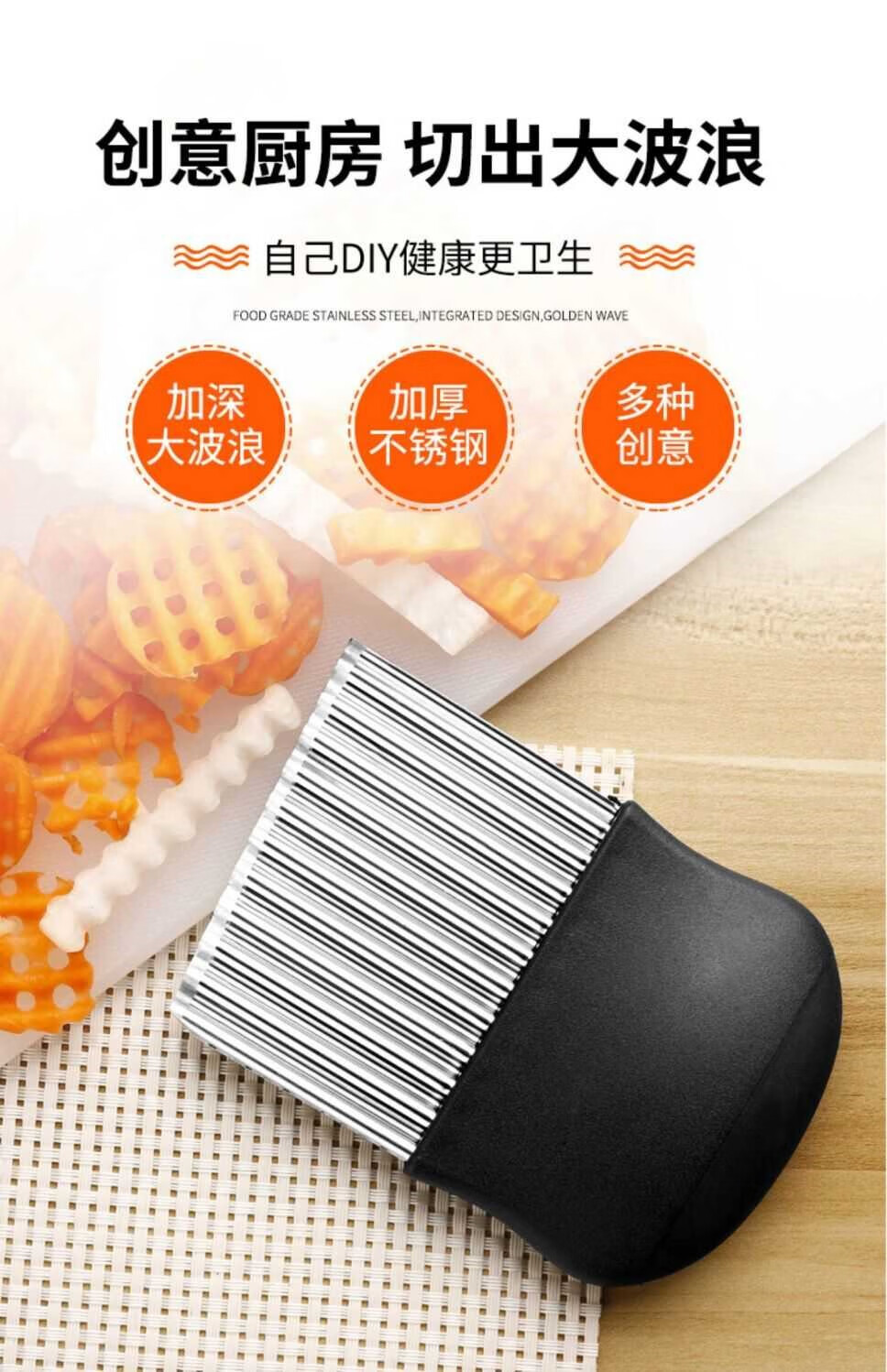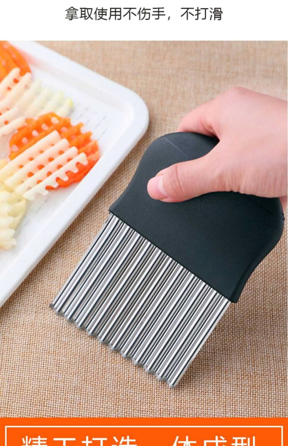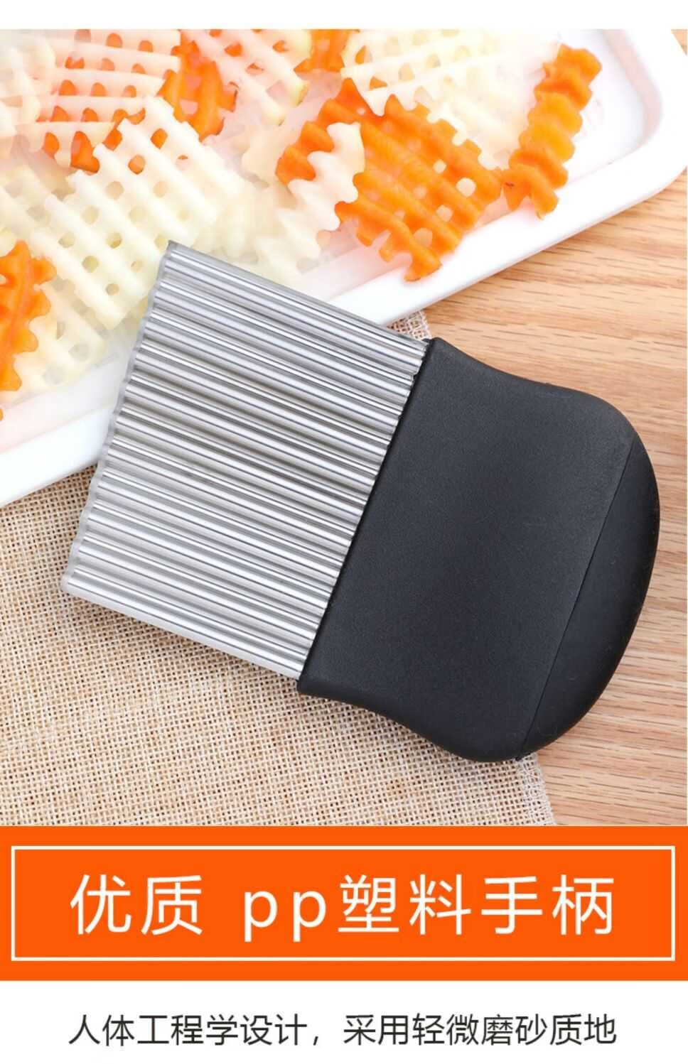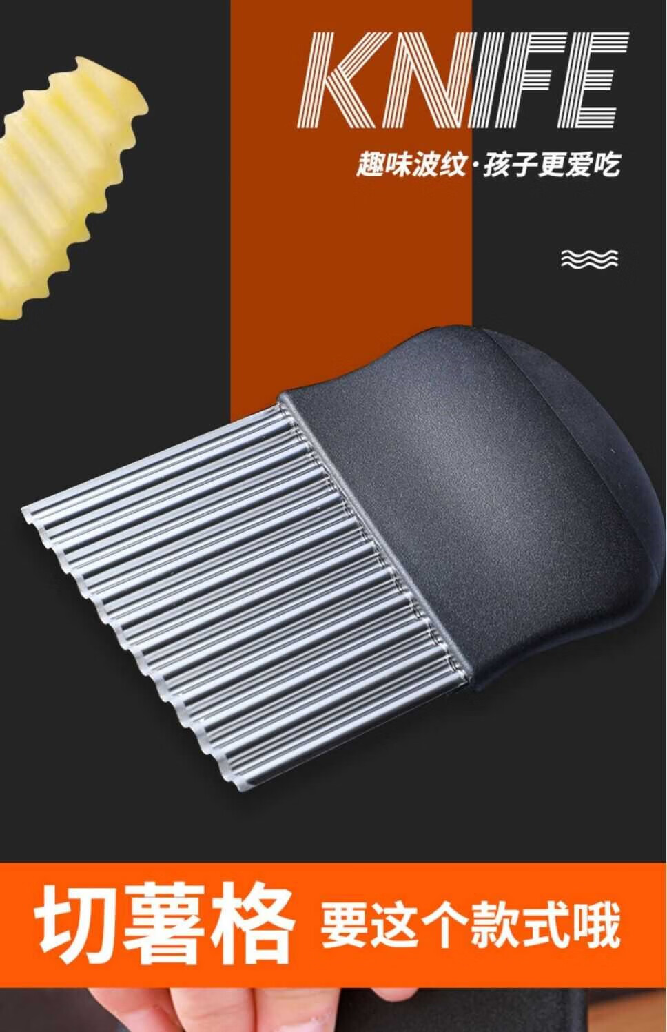 Le Yingfan corrugated knife cutting artifact wolf tooth potato knife wavy knife stainless steel slicing potato flower knife multifunctional kitchen upgraded multifunctional wolf tooth potato cutter 3 large