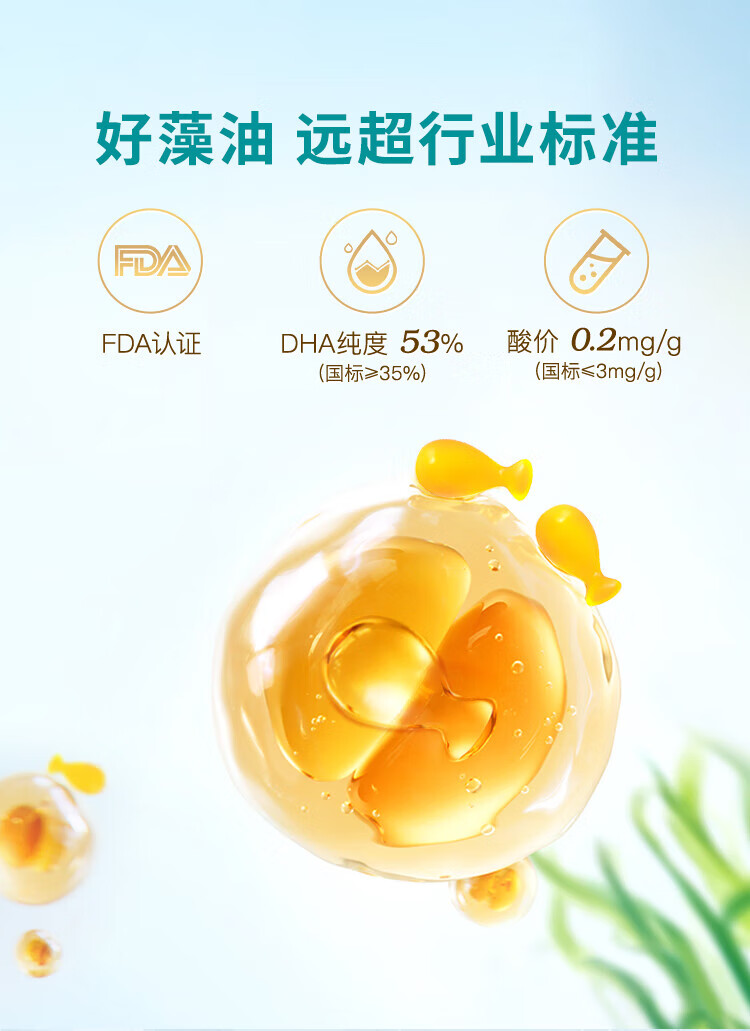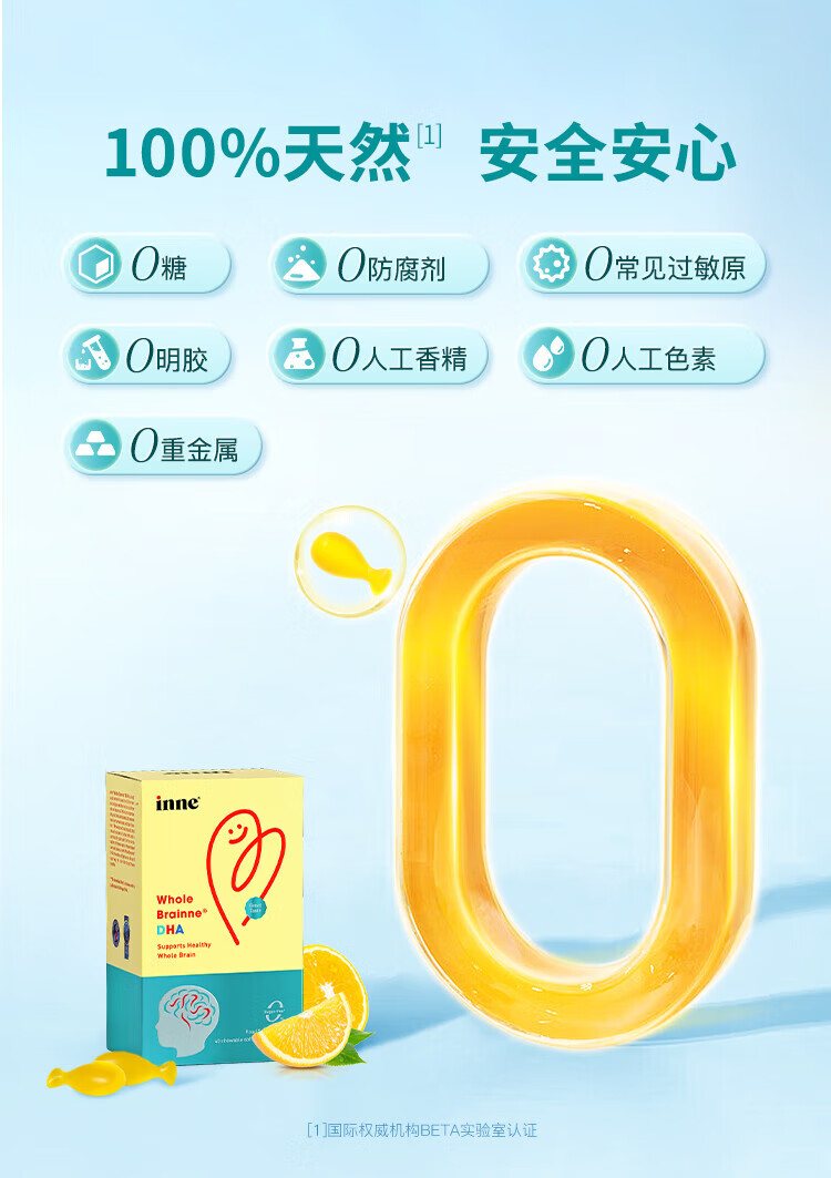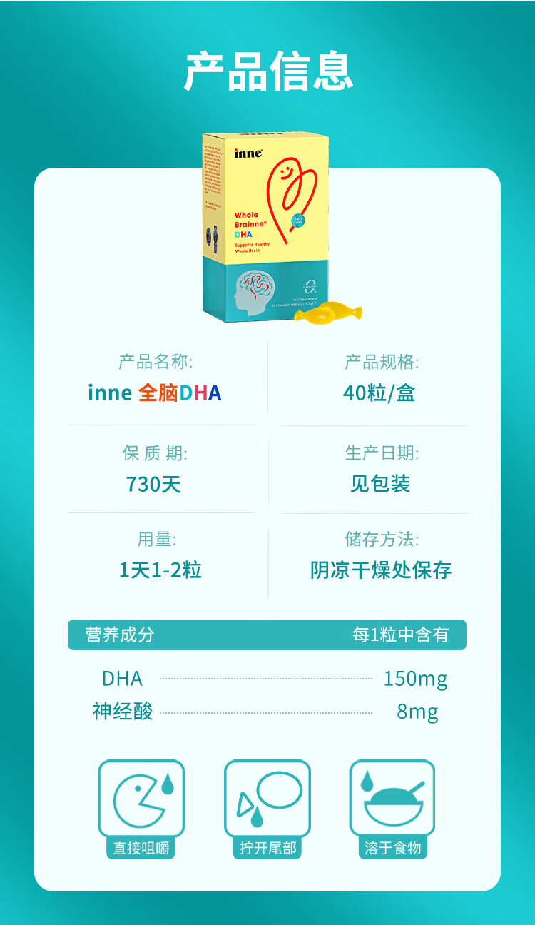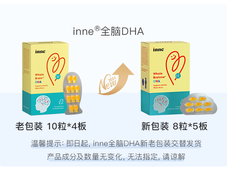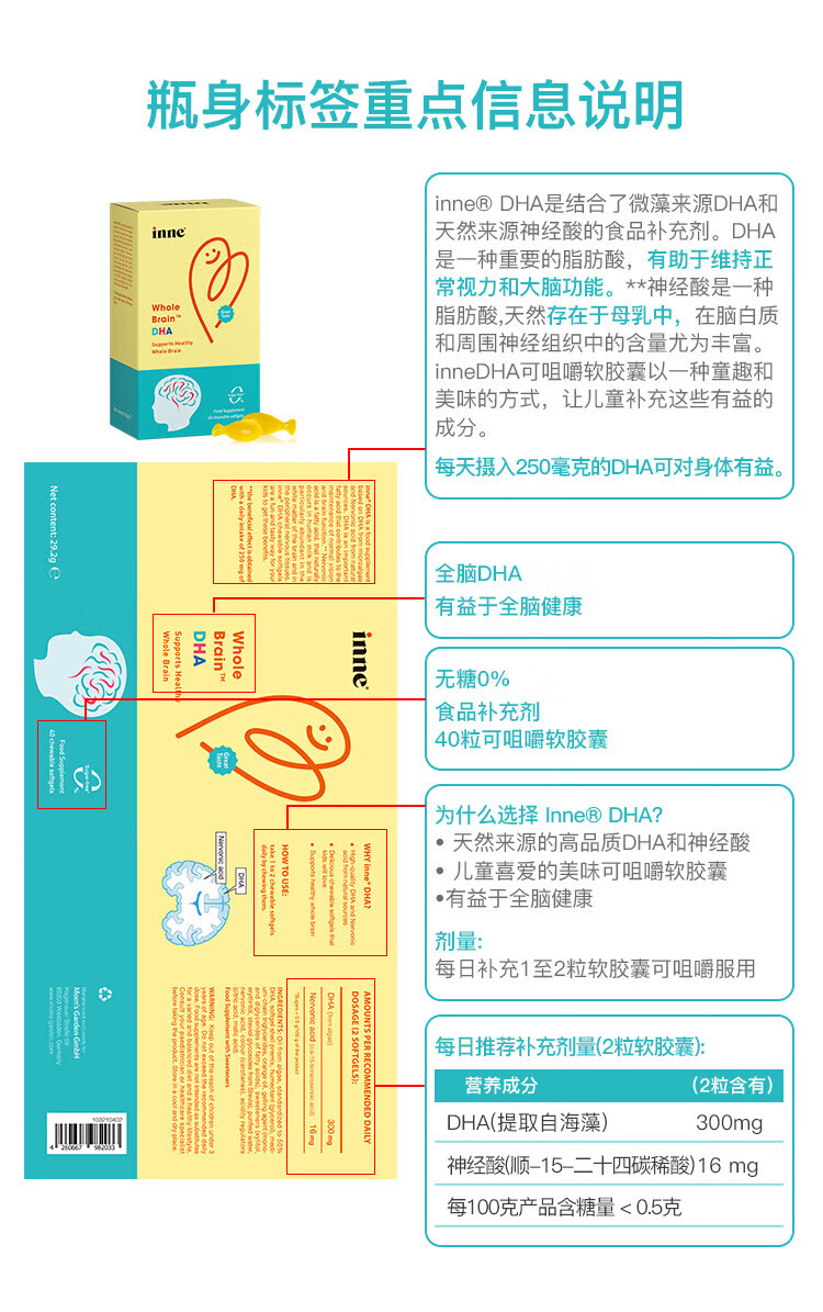 Inneinne childhood whole brain DHA for infants and toddlers, children's time little golden bean DHA, baby seaweed oil DHA for babies, whole brain DHA 40 capsules/box