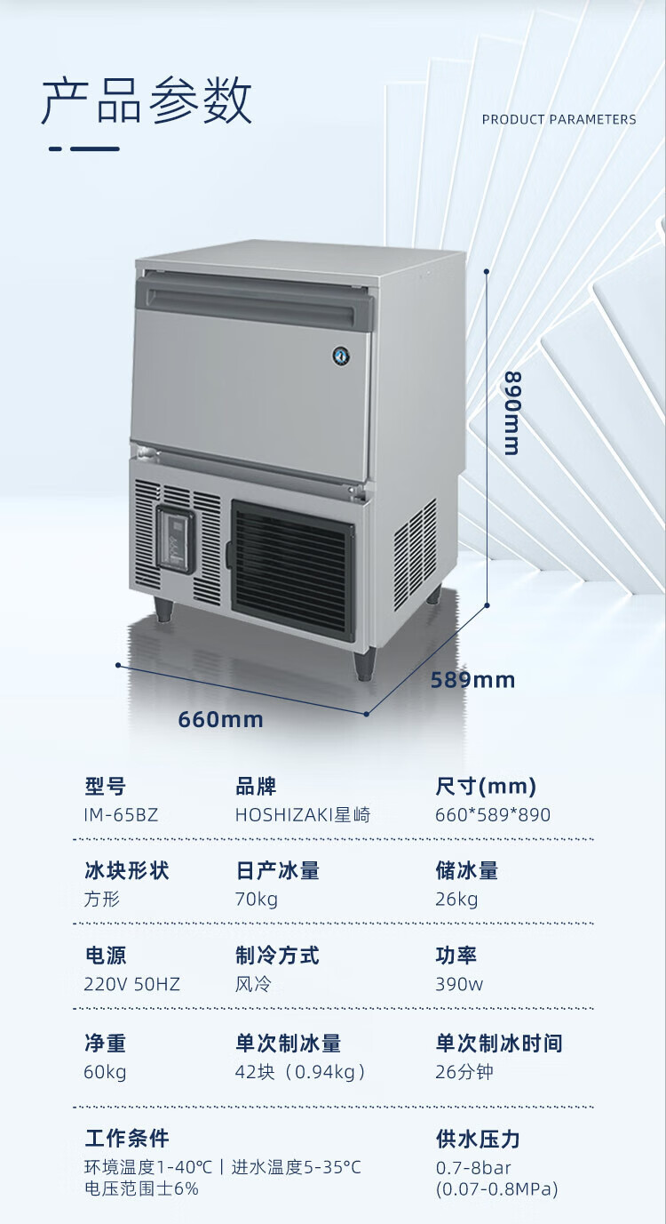 HOSHIZAKI ice machine IM/65/100BZ imported commercial ice machine commercial large square ice machine milk tea coffee shop KTV bar whiskey fully automatic all-in-one square ice ice machine IM-100BZ-23 (Nissan ice 88KG brand new and authentic)
