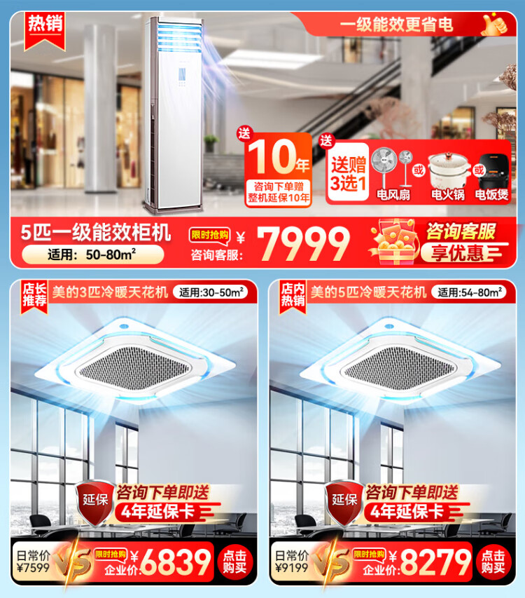 Midea central air conditioner one-to-one ceiling air conditioner 5 hp air conditioner variable frequency heating and cooling new level one energy efficiency 380V RFD-120QW/BSDN8Y-D(B1)A Jingdong Logistics 5 hp first level energy efficiency national subsidy