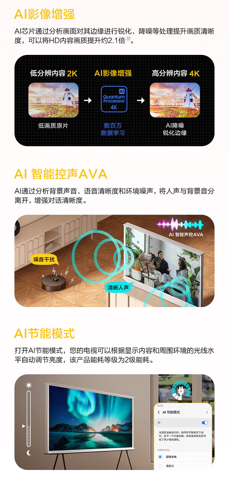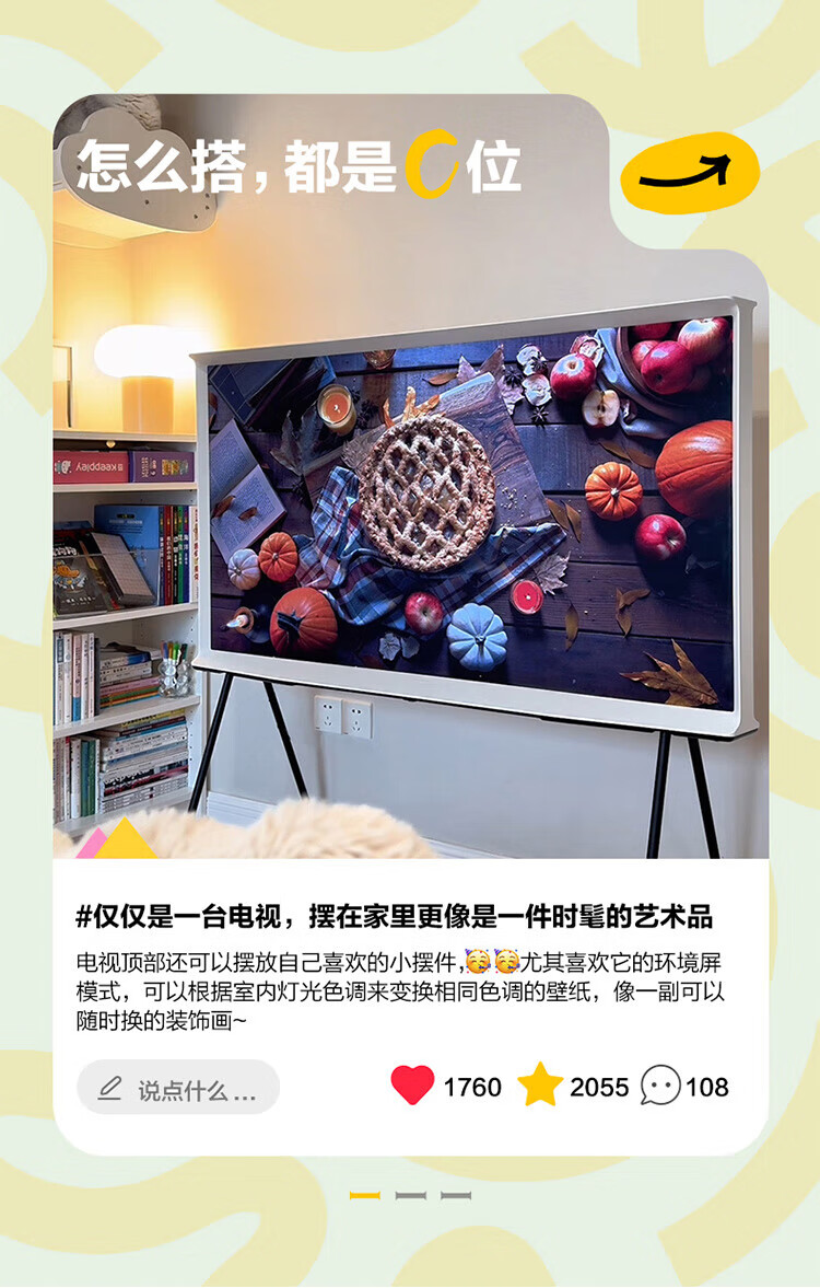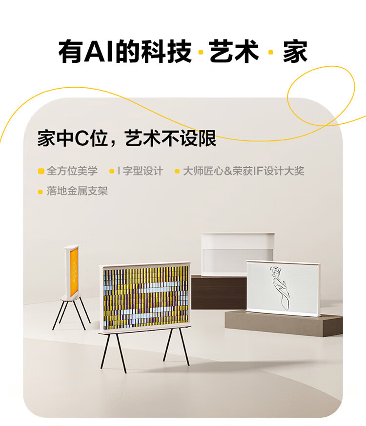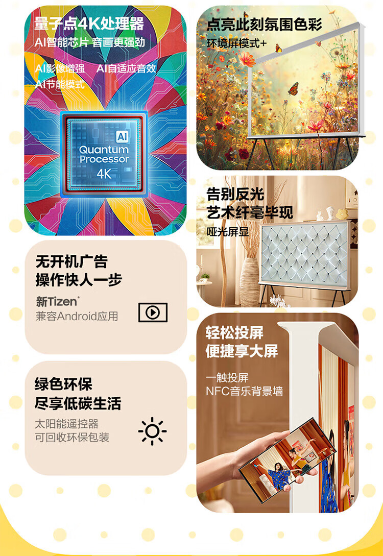 Samsung (SAMSUNG) 65-inch Serif Art TV, matte screen, no boot ads, QLED quantum dots, AI smart voice 4K ultra-high definition living room TV, LS01D 65-inch QA65LS01DAJXXZ, brand new machine, comes with floor stand