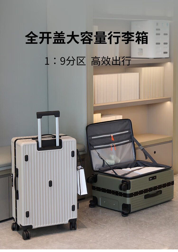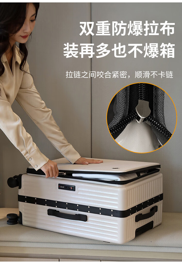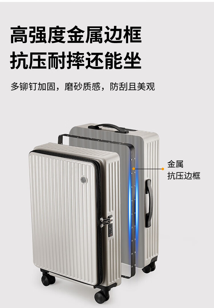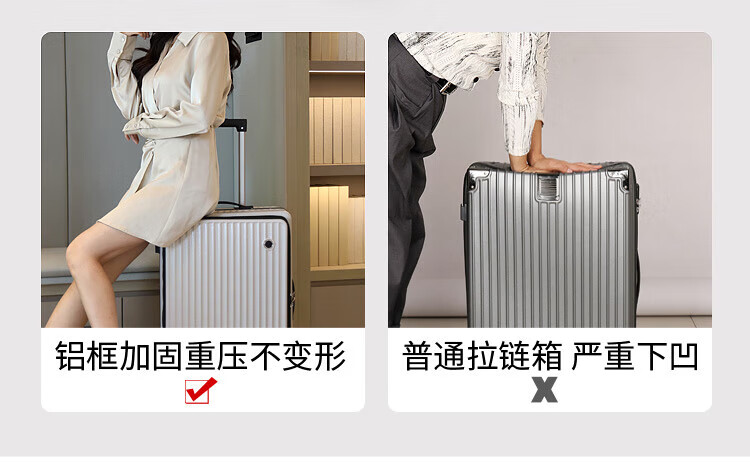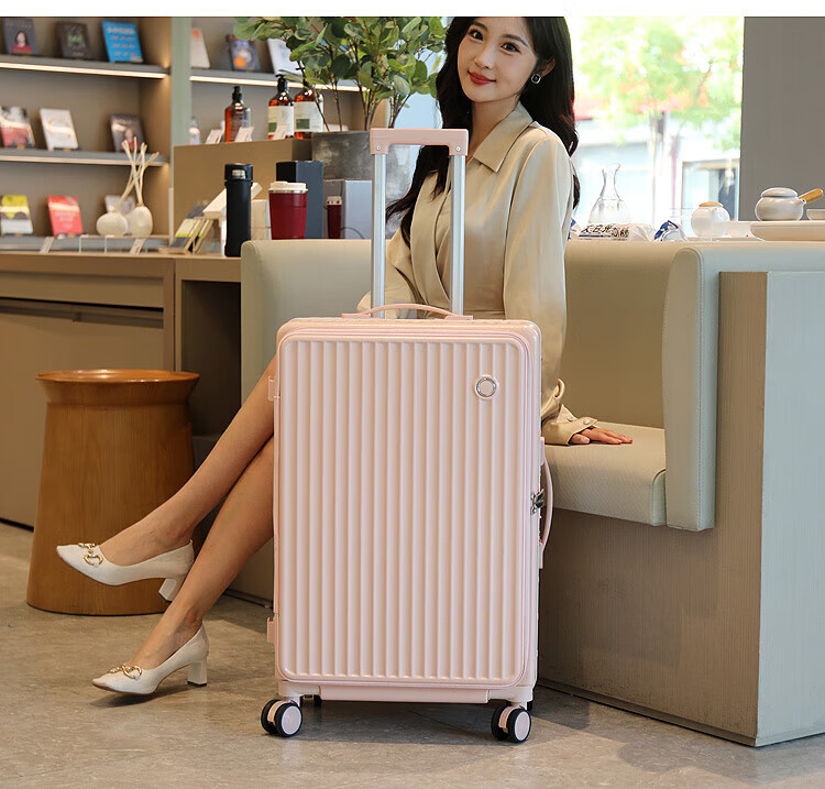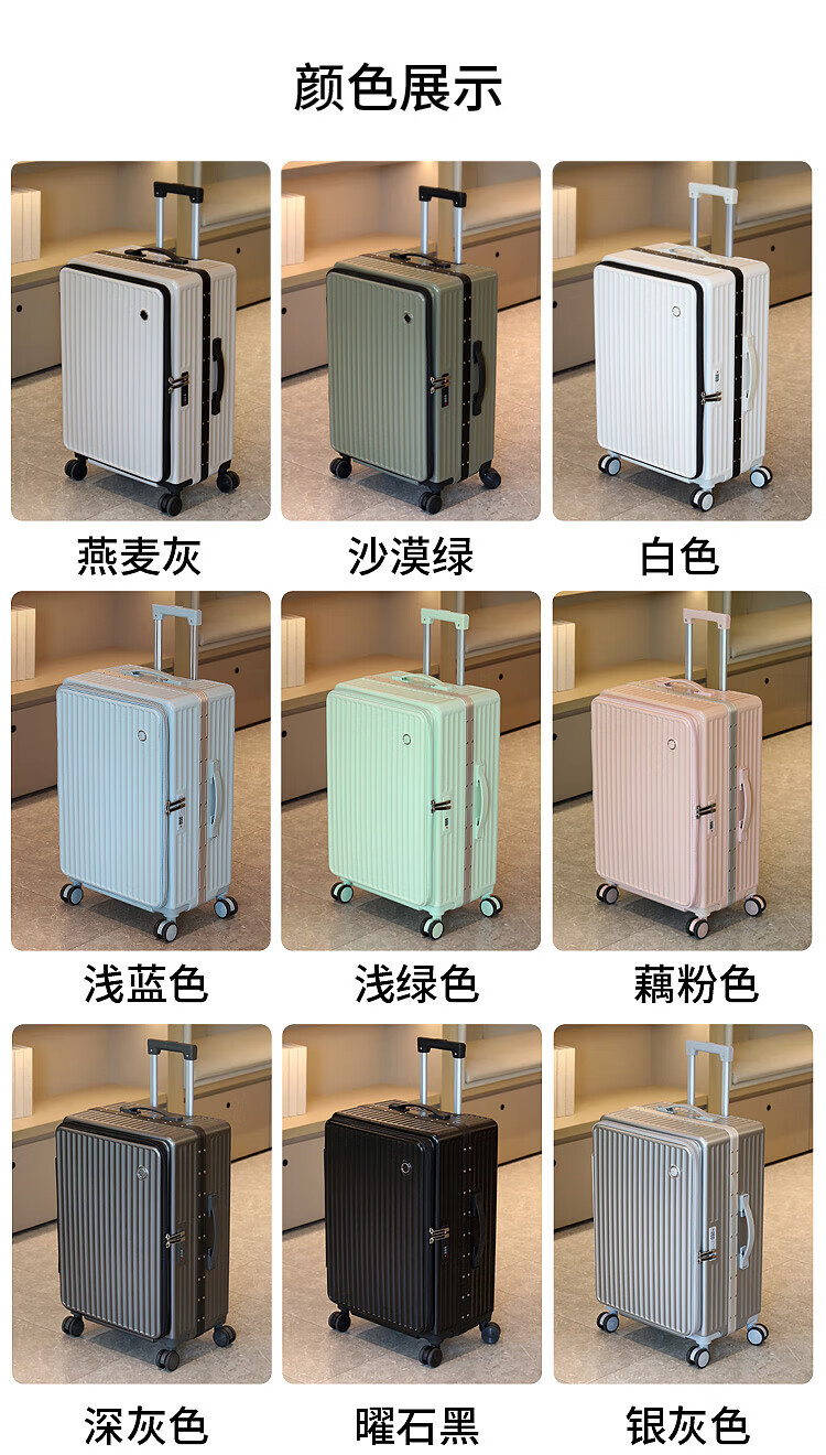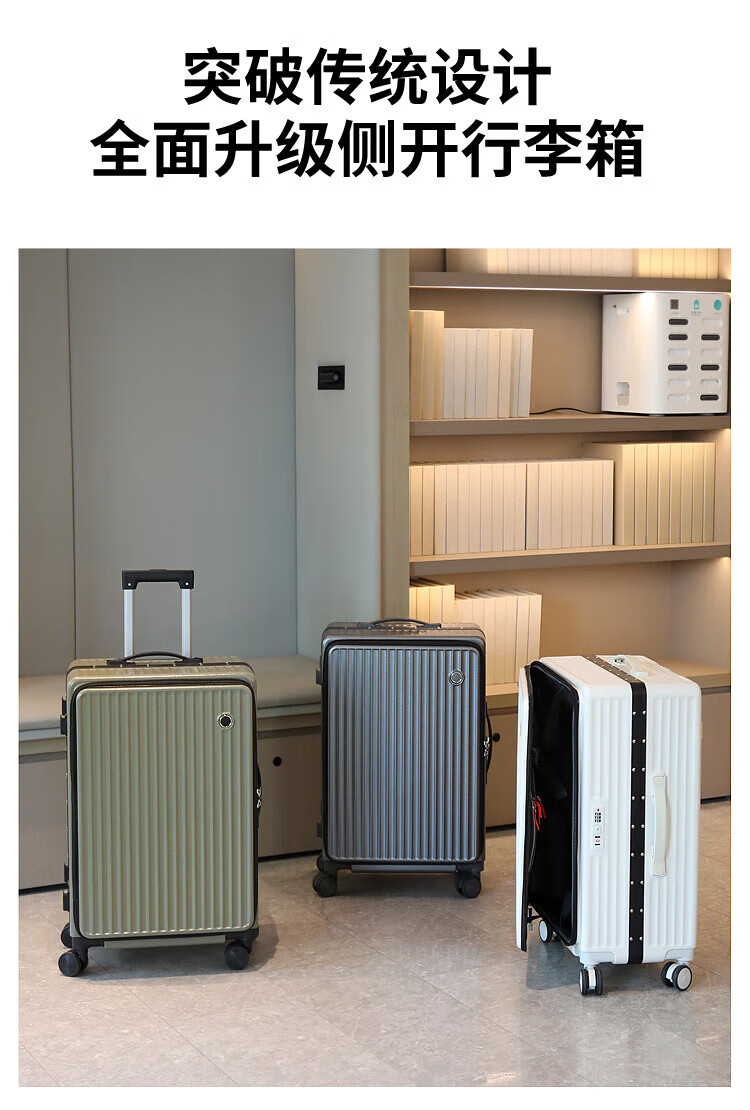 Luqi side-opening suitcase, boarding suitcase, suitable for boarding aircraft, thickened, high-looking women's trolley suitcase, password leather suitcase, titanium gray, integrated aluminum frame - can seat 20 inches, airline carry-on suitcase, free of check-in