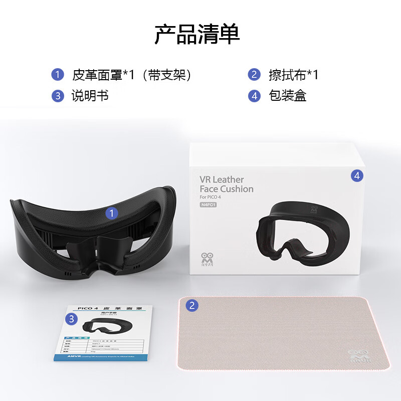 AMVR PICO4 Ultra headset is made of comfortable leather that does not press on the face, is not split in the middle, and does not shake. The VR accessories are balanced and can be turned upwards. PICO 4 Ultra leather headset + mask + ice silk