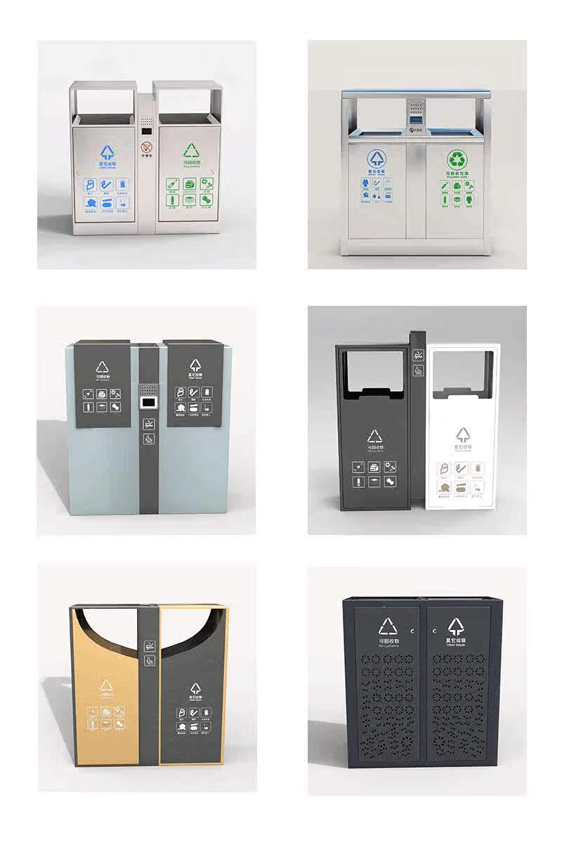 Commercial stainless steel trash cans, community parks, scenic spots, roads, outdoor classification, stainless steel peel bins, double barrels, customized style 1