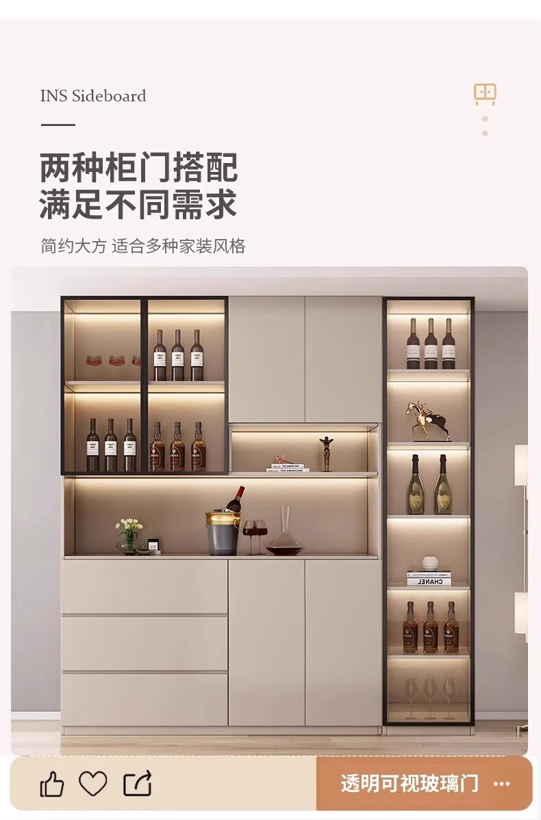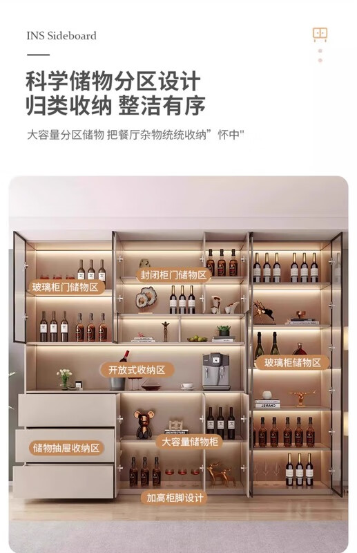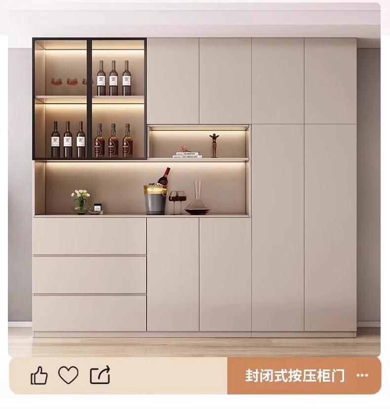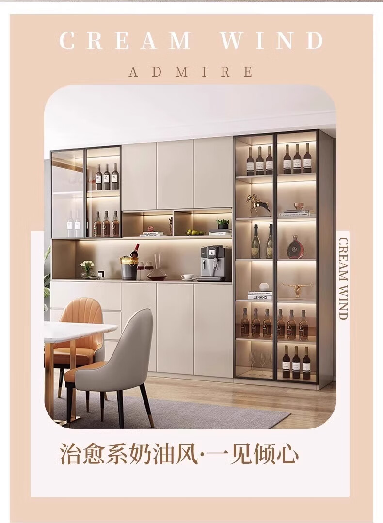 Renjuyi customized sideboard against the wall integrated storage cabinet living room high cabinet light luxury tea cabinet wine cabinet custom kitchen cabinet style 4 milk coffee color 120*40*220 (installation included)