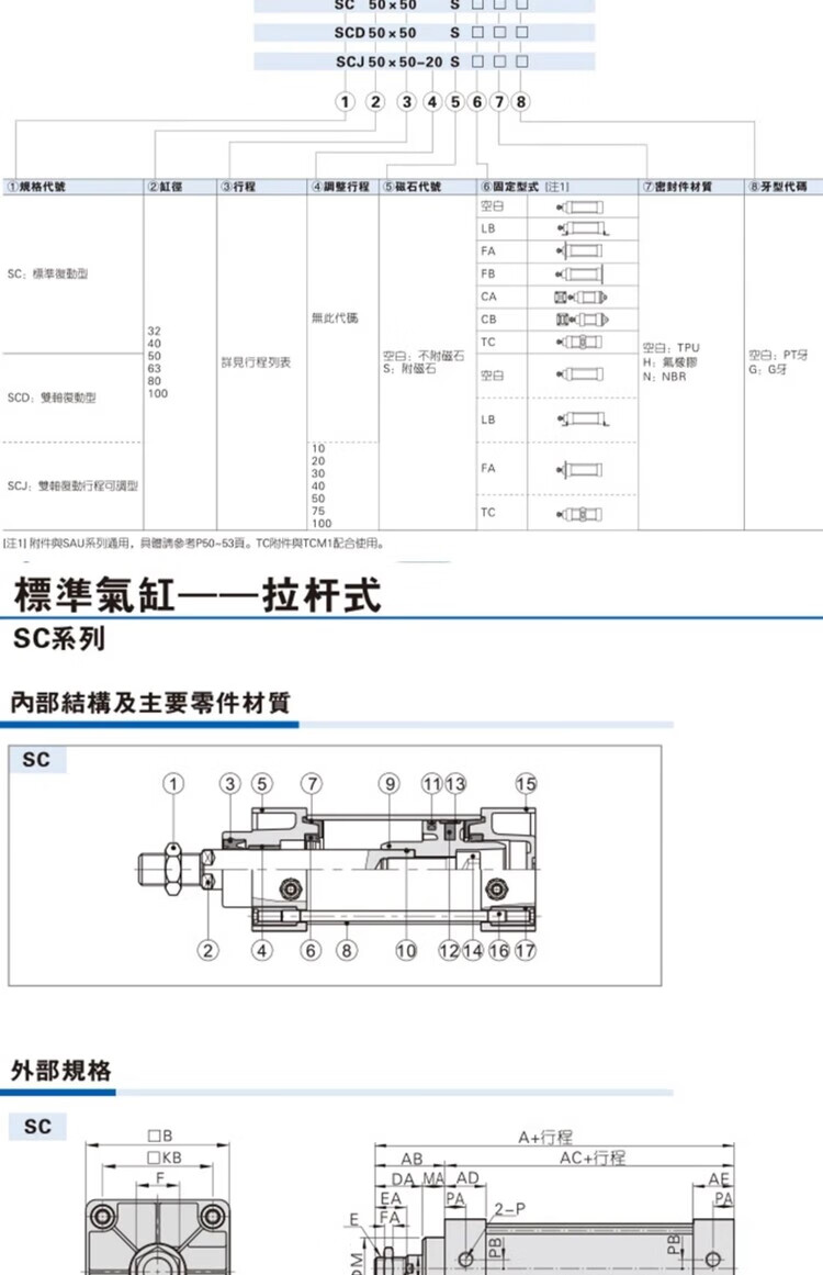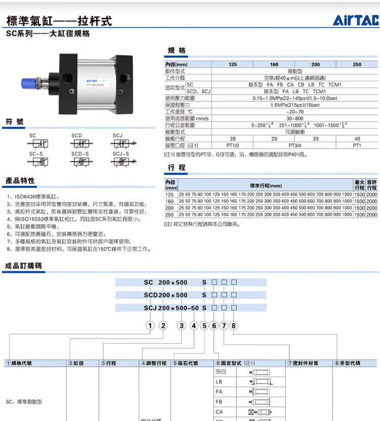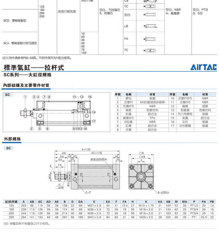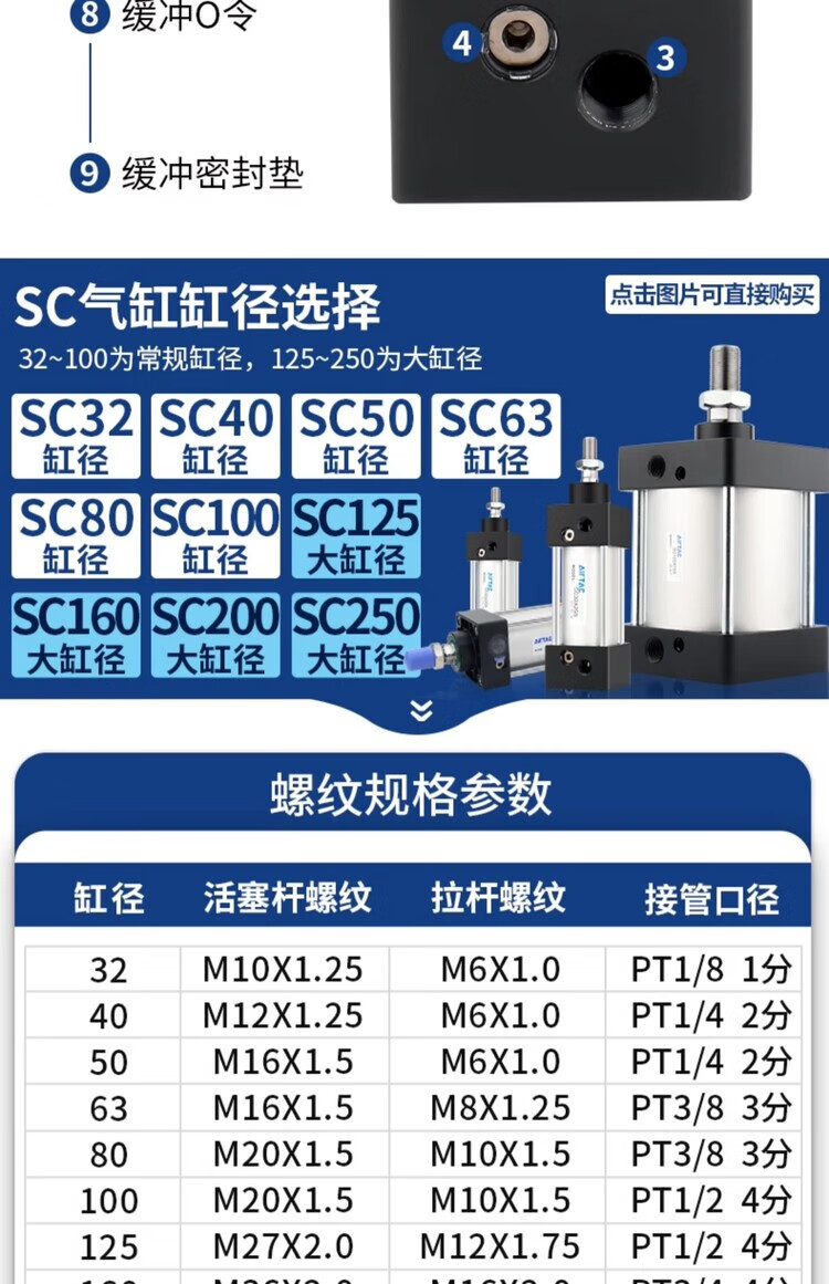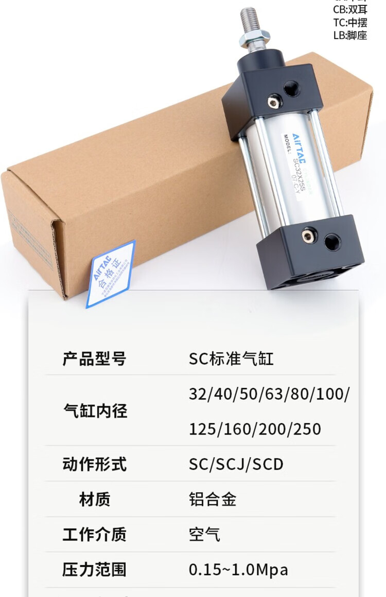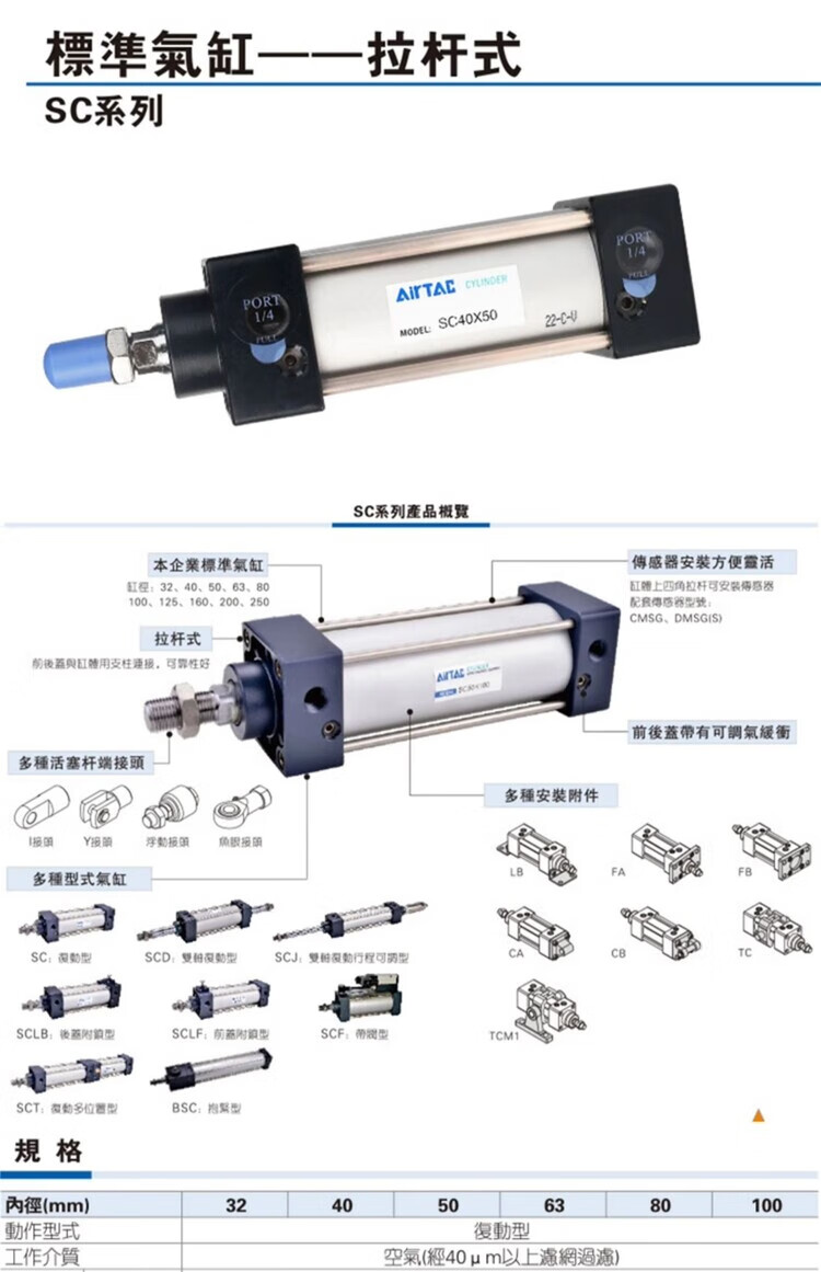 Airtac original SC standard cylinder small large thrust SC32/40/50/63/80/100X75X125X200X300 SC50X75