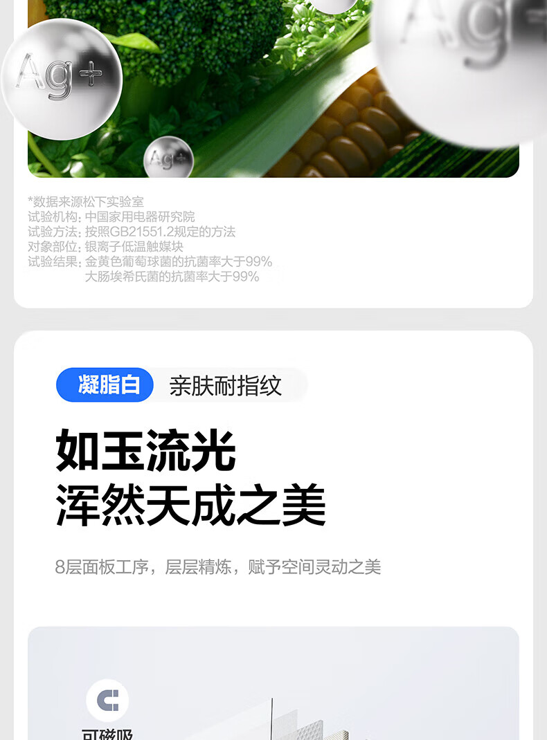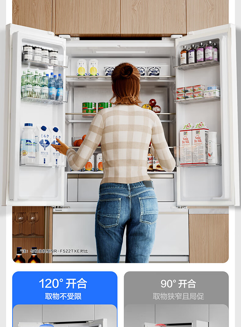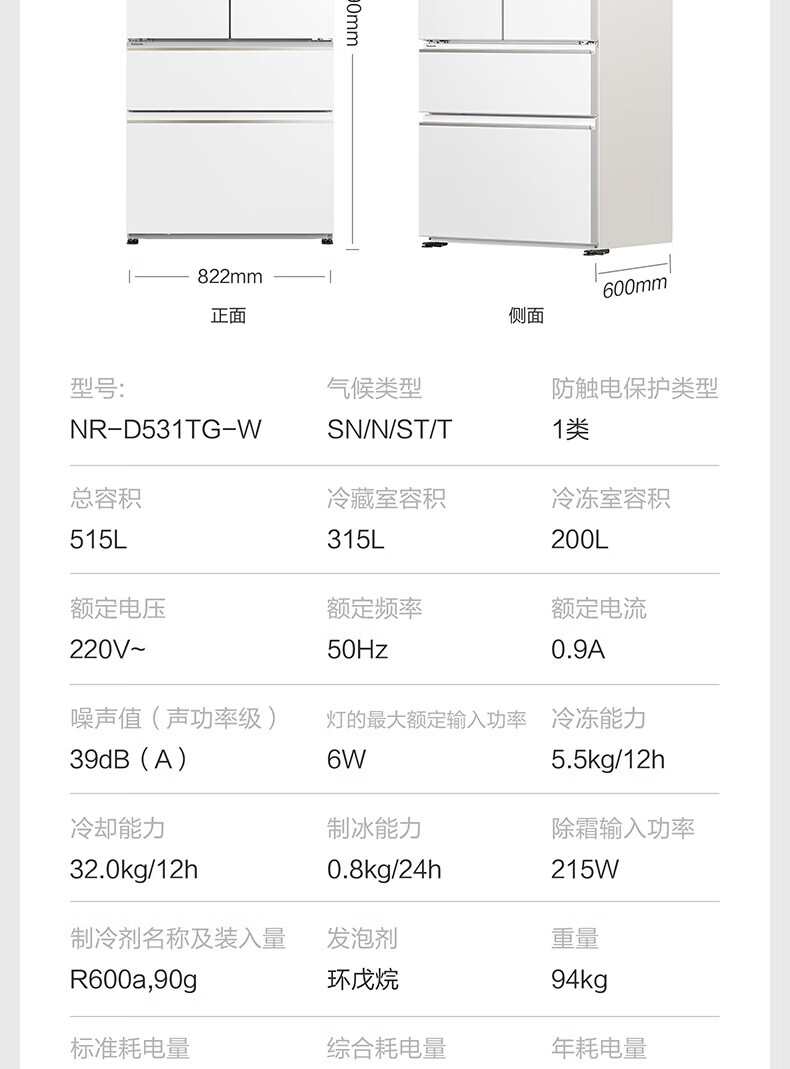 Panasonic Big Seal 515L French-style multi-door refrigerator NR-D531TG-W Silver ion sterilization -3 Micro-freeze preservation Automatic ice making D531TG 515L Gel white metal panel