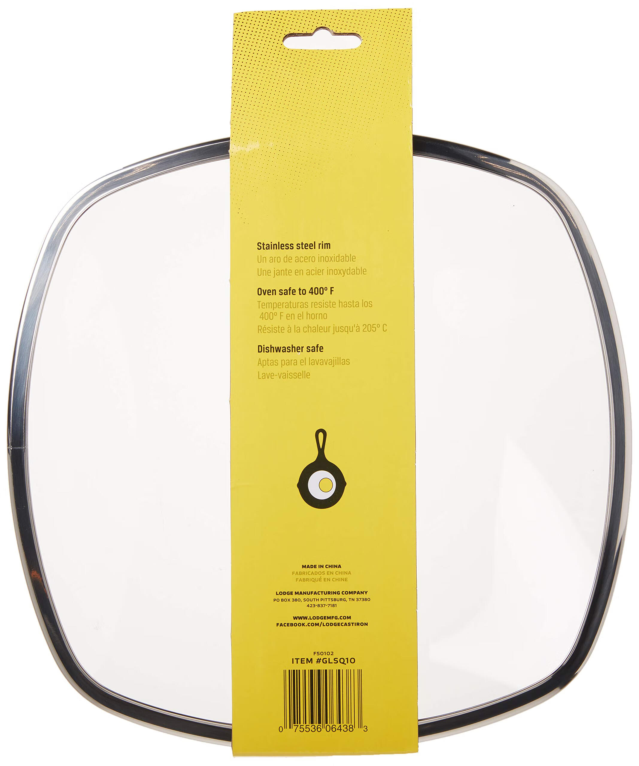 LODGE 26cm square tempered glass pot lid, special for kitchen cooking, heat-resistant and explosion-proof