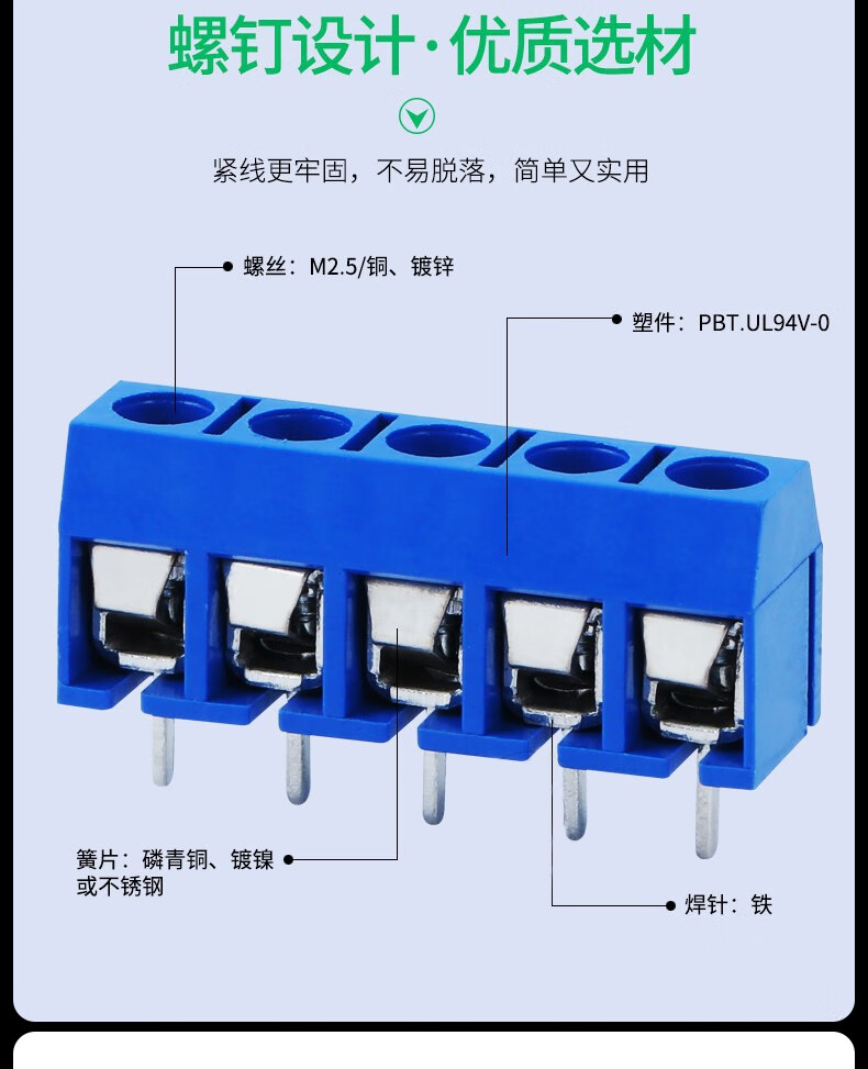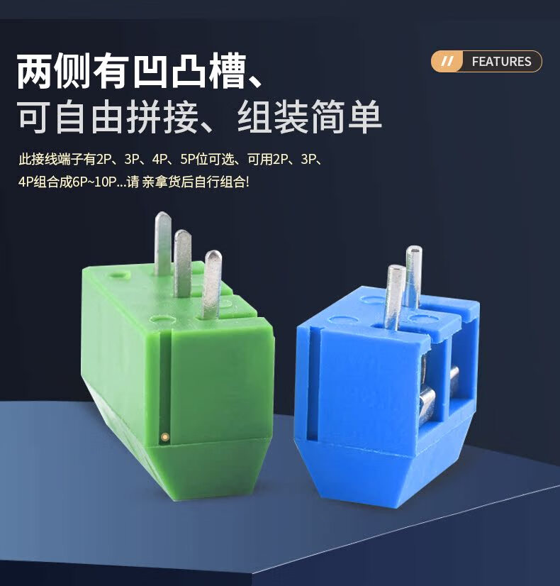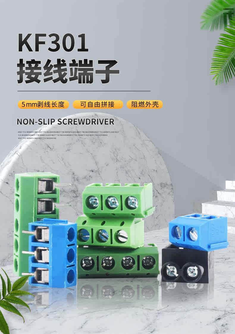 KF301-2P/3P terminal block can be spliced with one word/cross iron/copper pin environmentally friendly 5.08 terminal 5.0mm 3P one word green copper can be spliced (10 pieces)