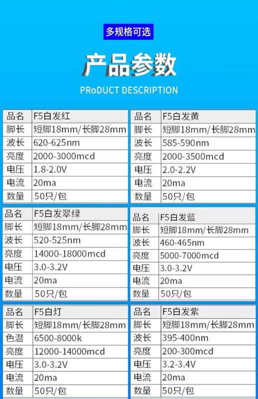 3mm 5mm light emitting diode F3F5 LED lamp beads white hair/red green blue yellow purple pink/color (50 pieces) 3mm green hair emerald green long legs (50 pieces)