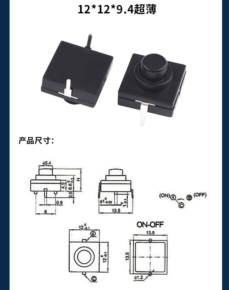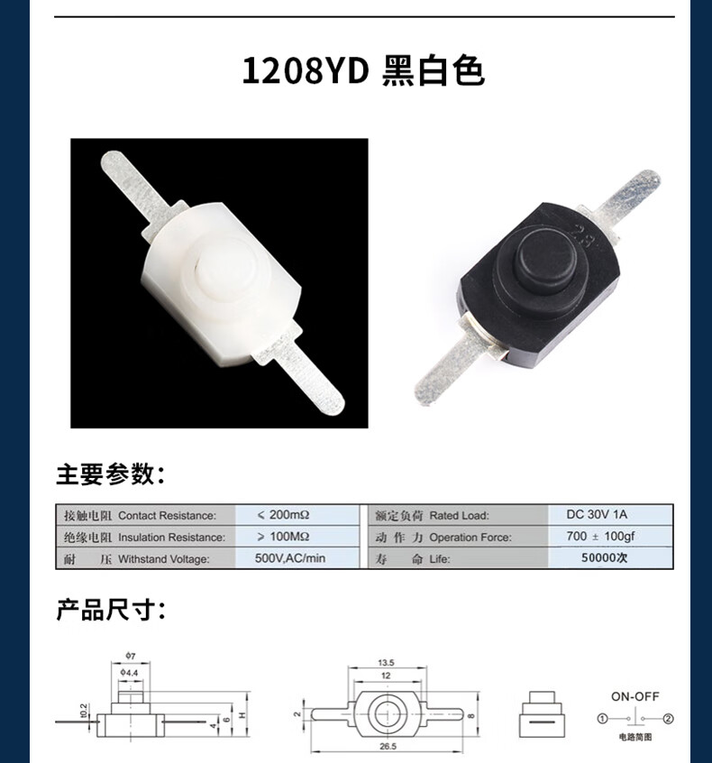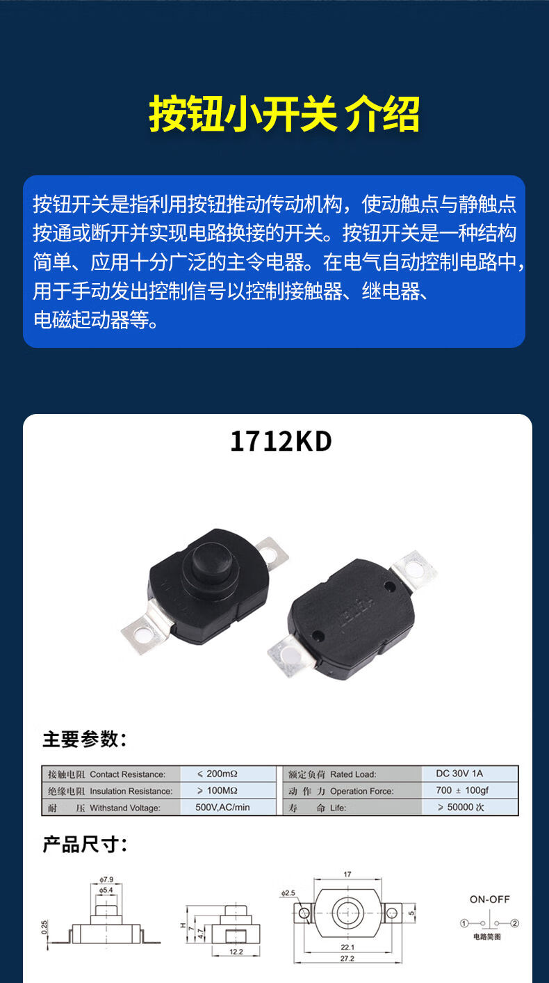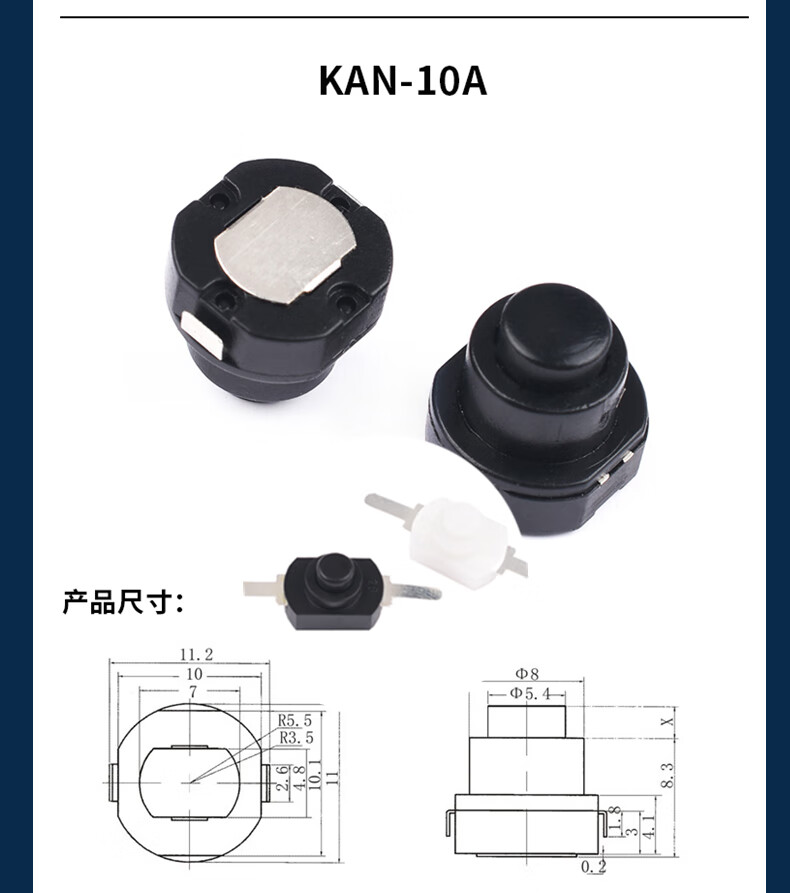 KAN-28 light flashlight switch self-locking patch/plug-in switch accessories button power switch KAN-28 button switch (5 pieces)