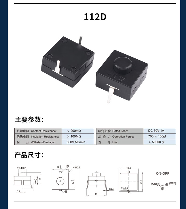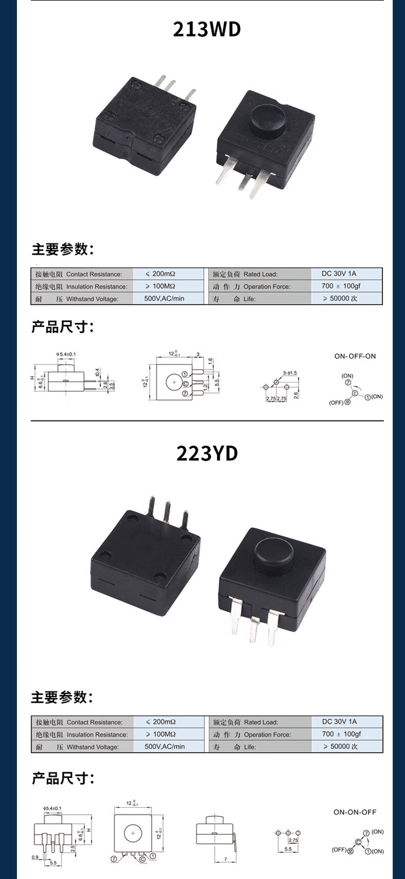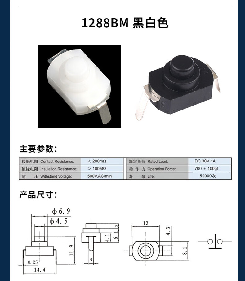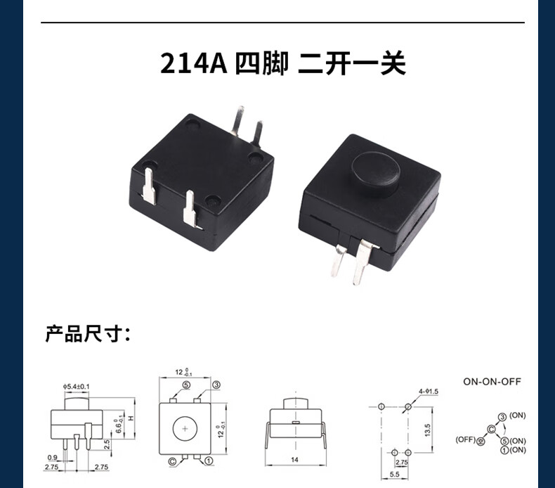 KAN-28 light flashlight switch self-locking patch/plug-in switch accessories button power switch KAN-28 button switch (5 pieces)