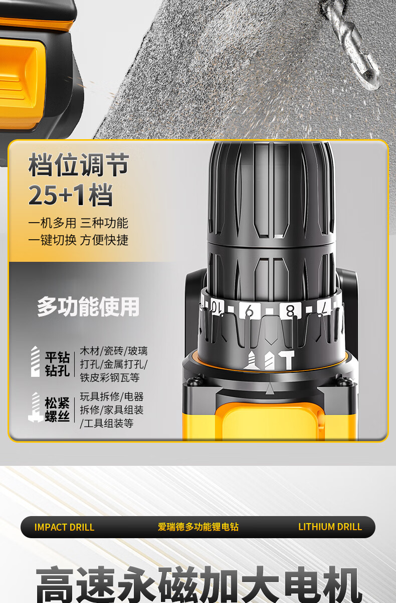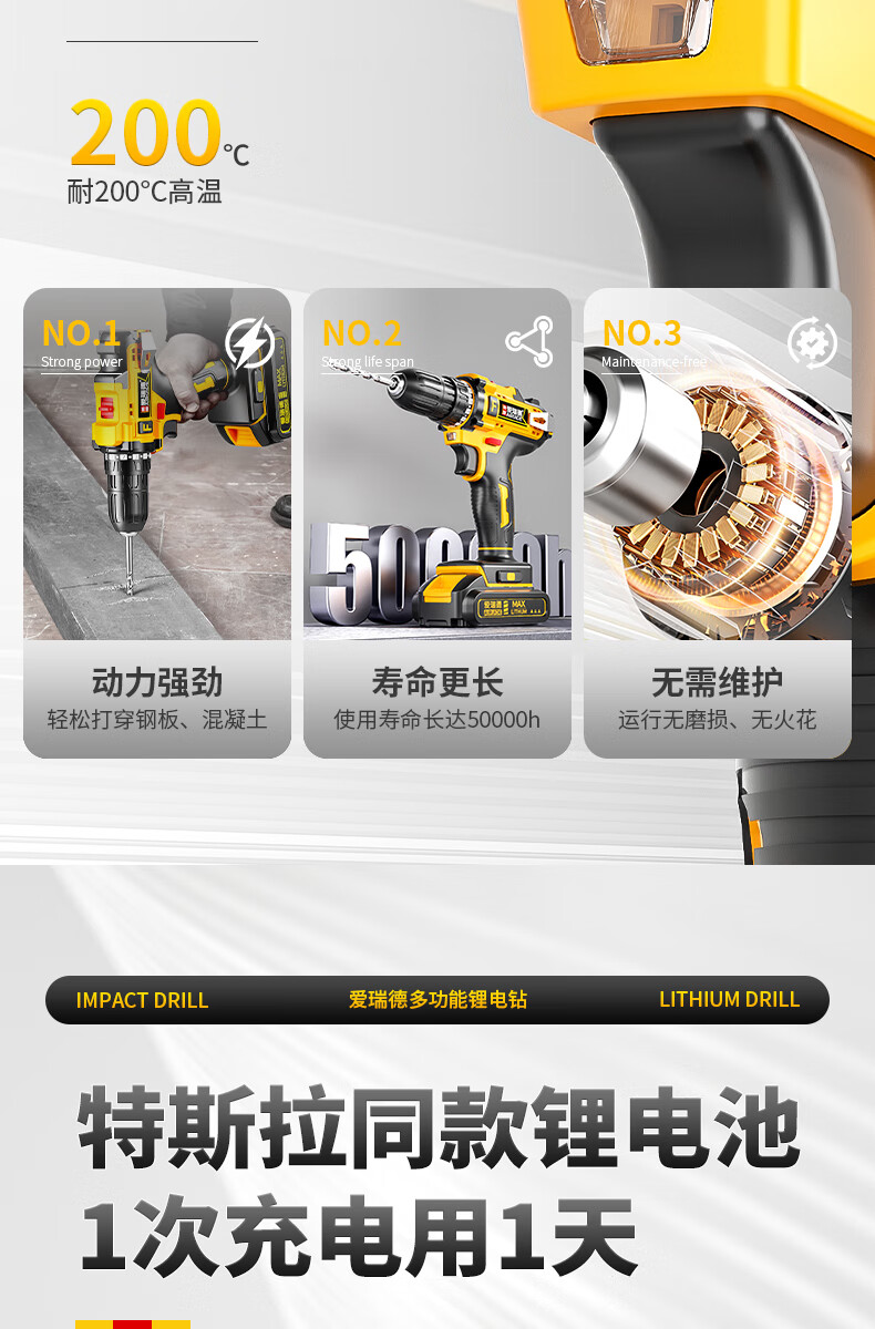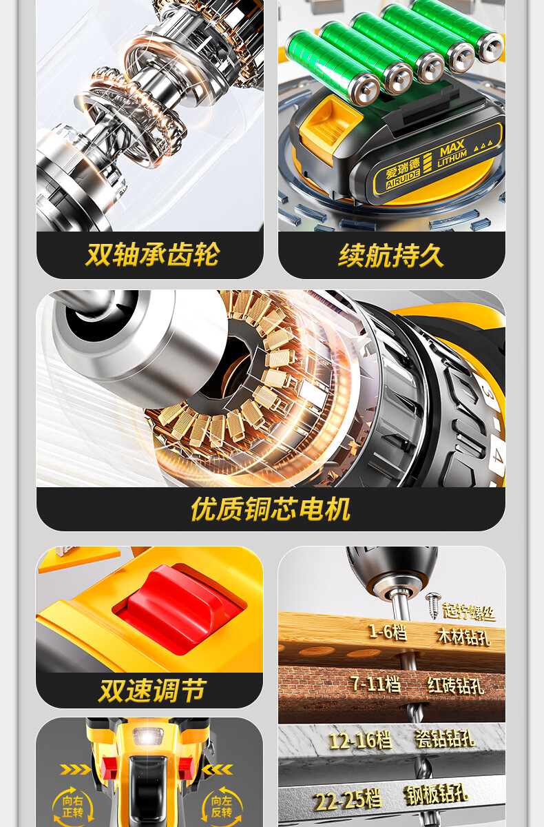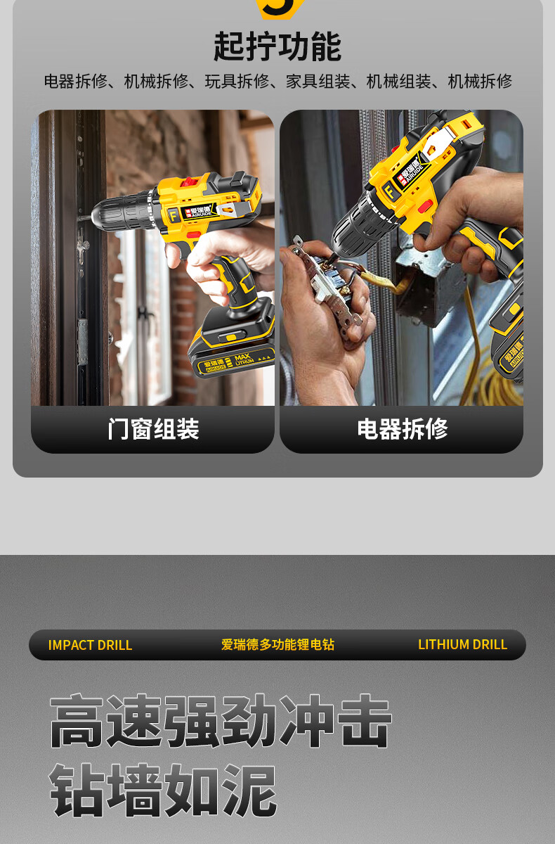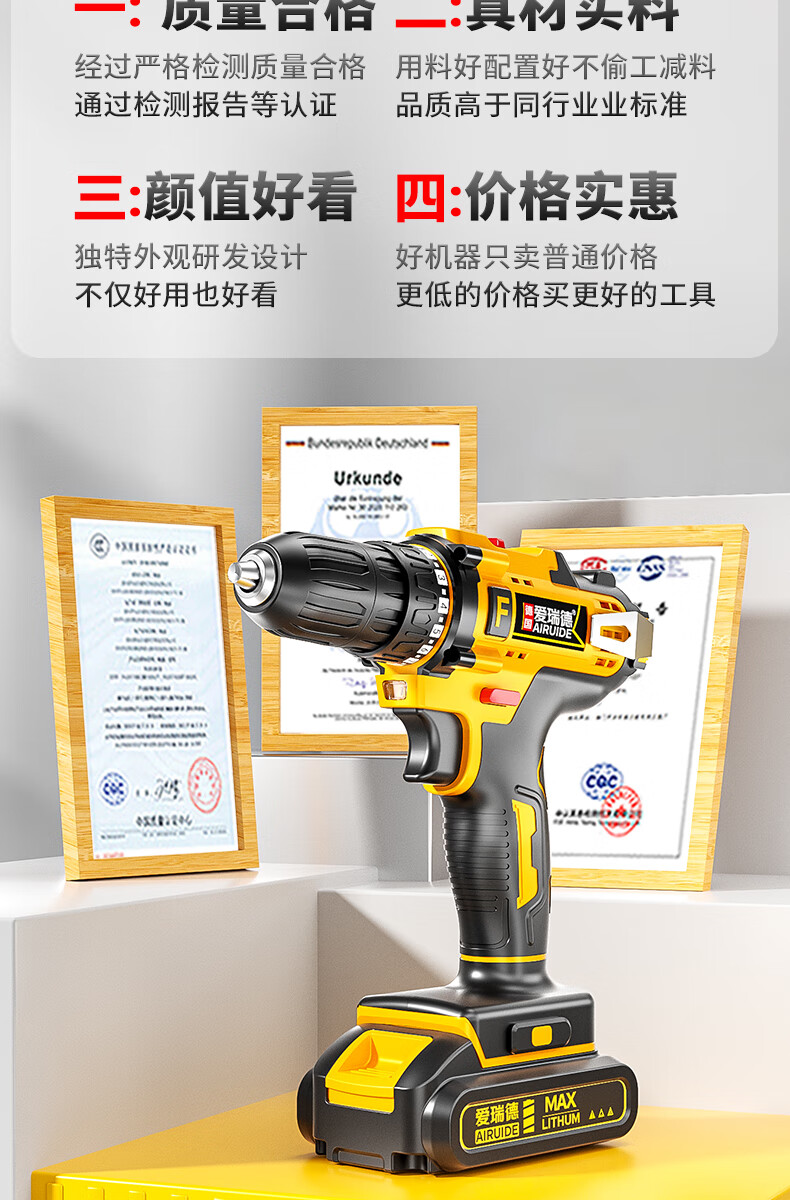 Aired Rechargeable Electric Drill Household Electric Drill Lithium Battery Electric Screwdriver Electric Screwdriver Electric Power Tool 36VF Upgraded Two-Speed Model