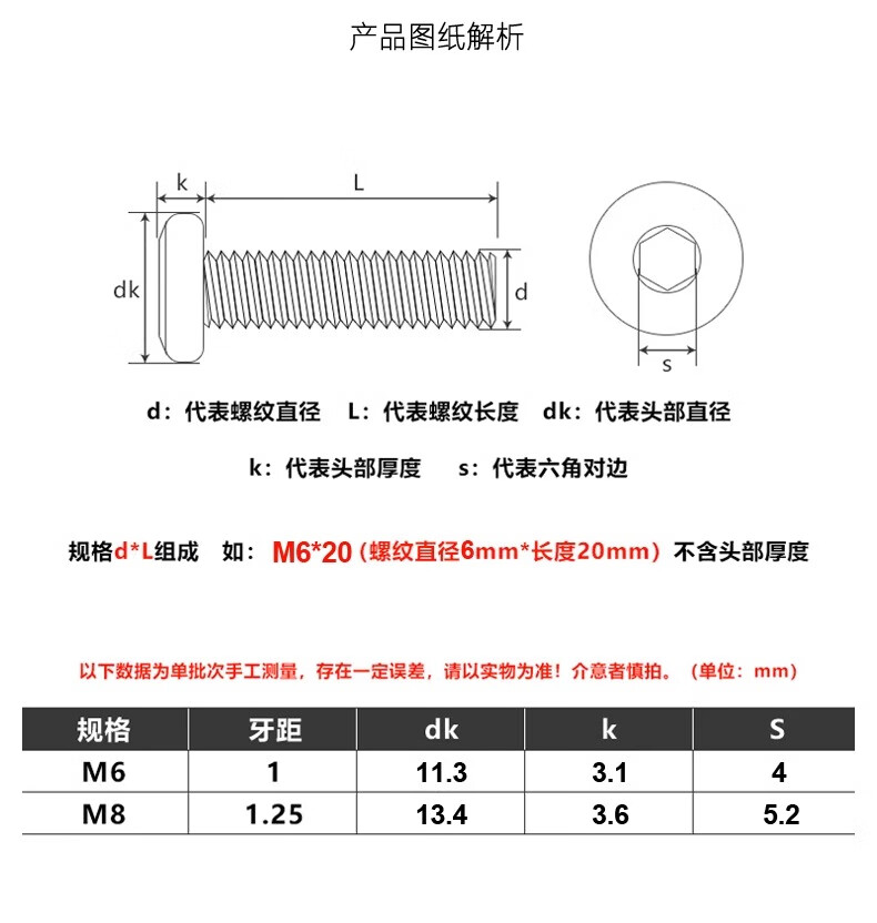 Creaby furniture screws flat round head hexagon socket screws crib cabinets tables and chairs fixed links screws and bolts M6x12 (50 pcs)