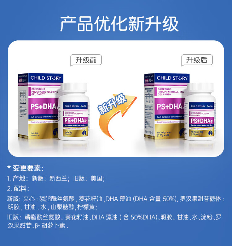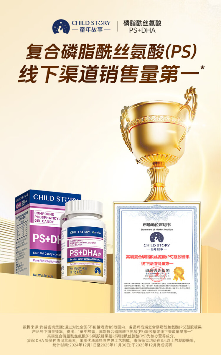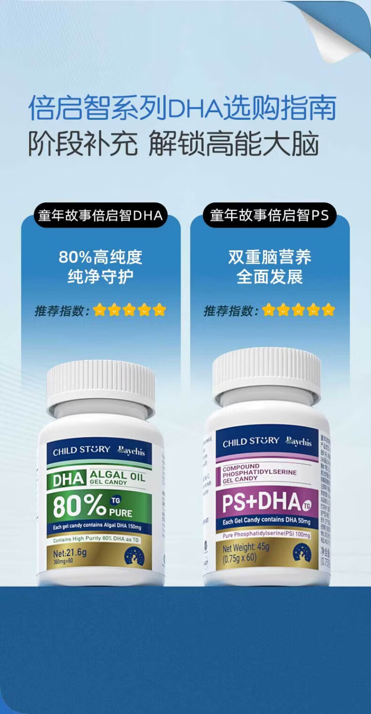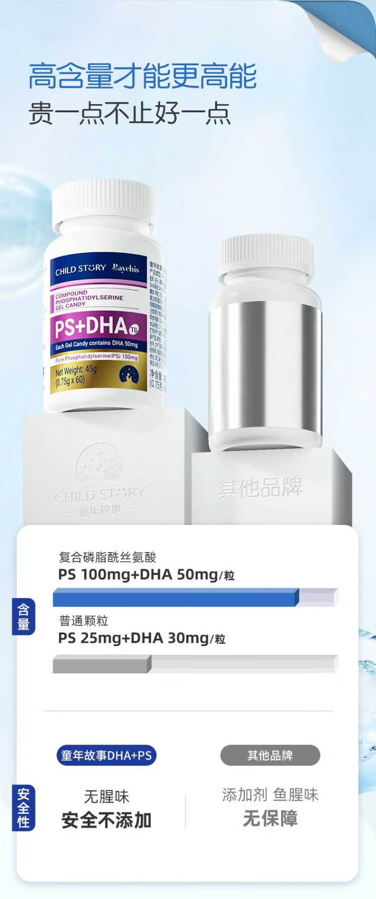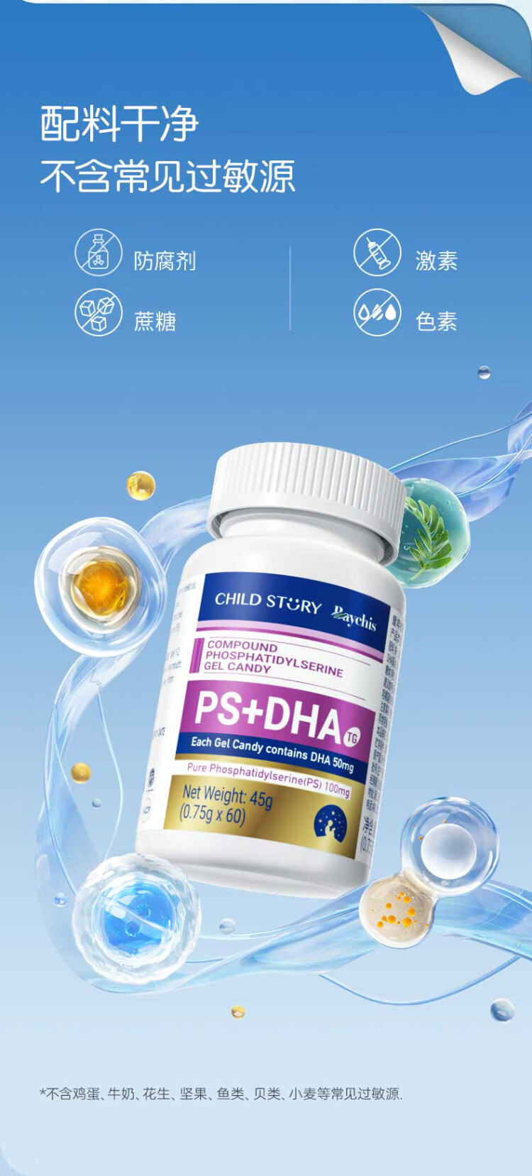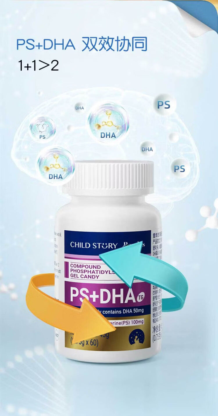 Childhood Story Compound Phosphatidylserine PS Capsules 60 capsules/120 capsules DHA Algae Oil + PS Original imported Phosphatidylserine DHA + PS 60 capsules * 1 bottle