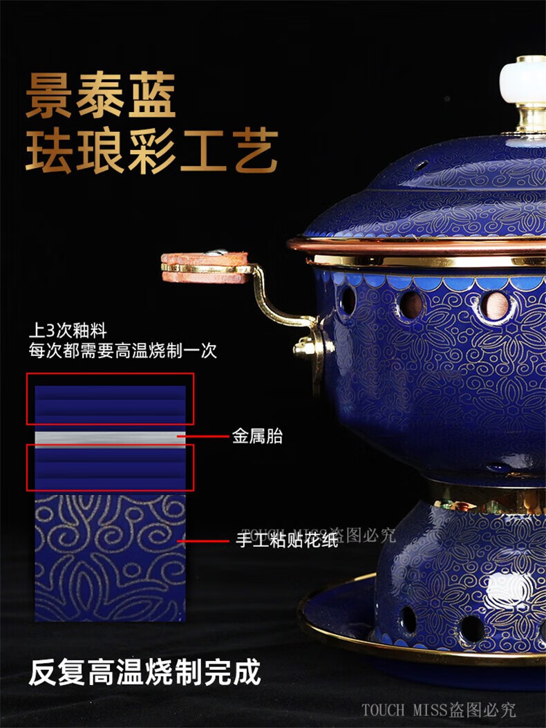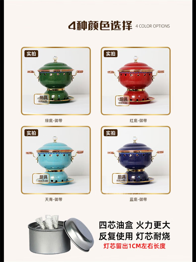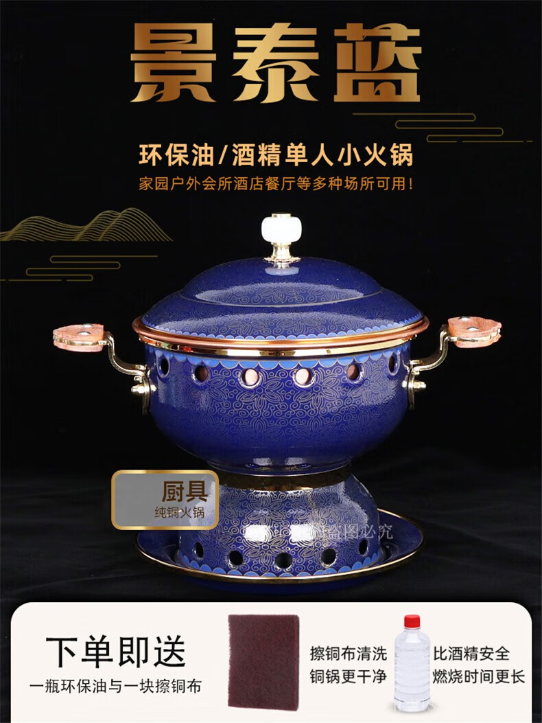 Touchmiss (touchmiss) cloisonné single small hot pot household one person one pot copper alcohol hot pot club hotel special copper hot pot red bottom-royal belt 16.5cm
