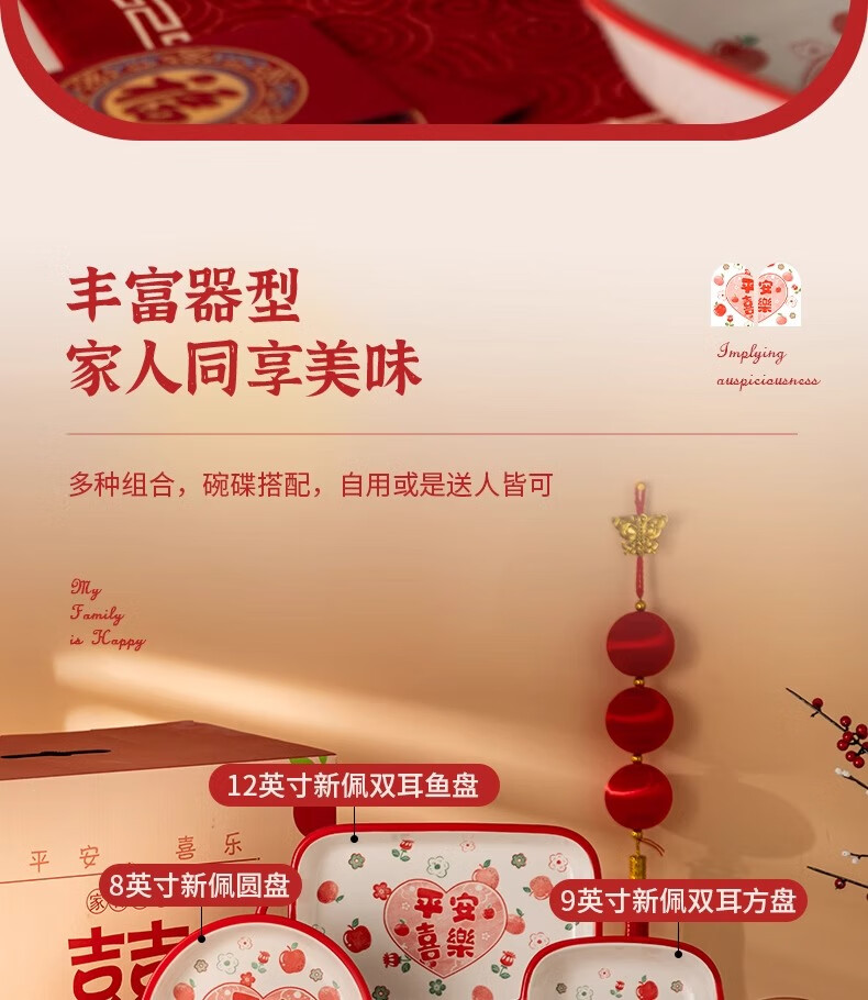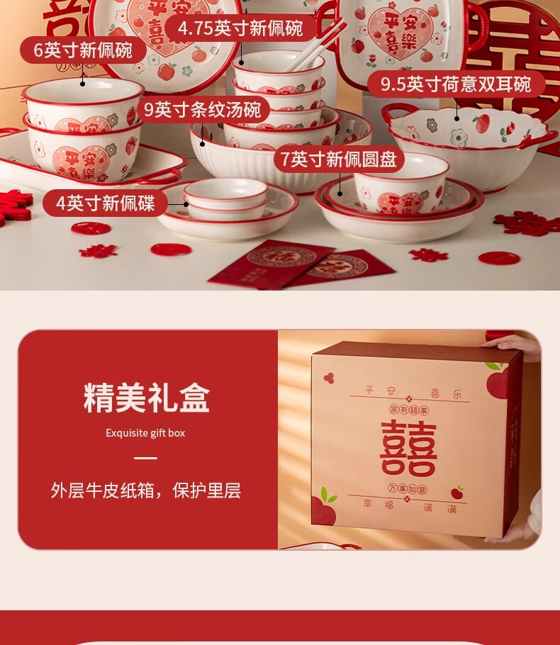 Persson Ceramic Dishes Set Wedding Gift for Newlyweds Wedding Tableware Complete Set for Housewarming Dishes and Dishes Gift Box Beijing Delivery Next Day 4 People Food 24-Head Gift Box