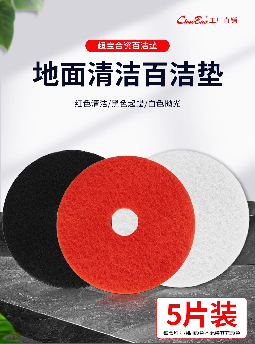 Baiyun Chao Procter & Gamble industrial floor scrubber 17-inch universal scouring pad red scrubbing floor black waxing white marble terrazzo wood floor polishing waxing cleaning pad 17-inch red floor scrubber pad 5 pieces in a box diameter 43cm