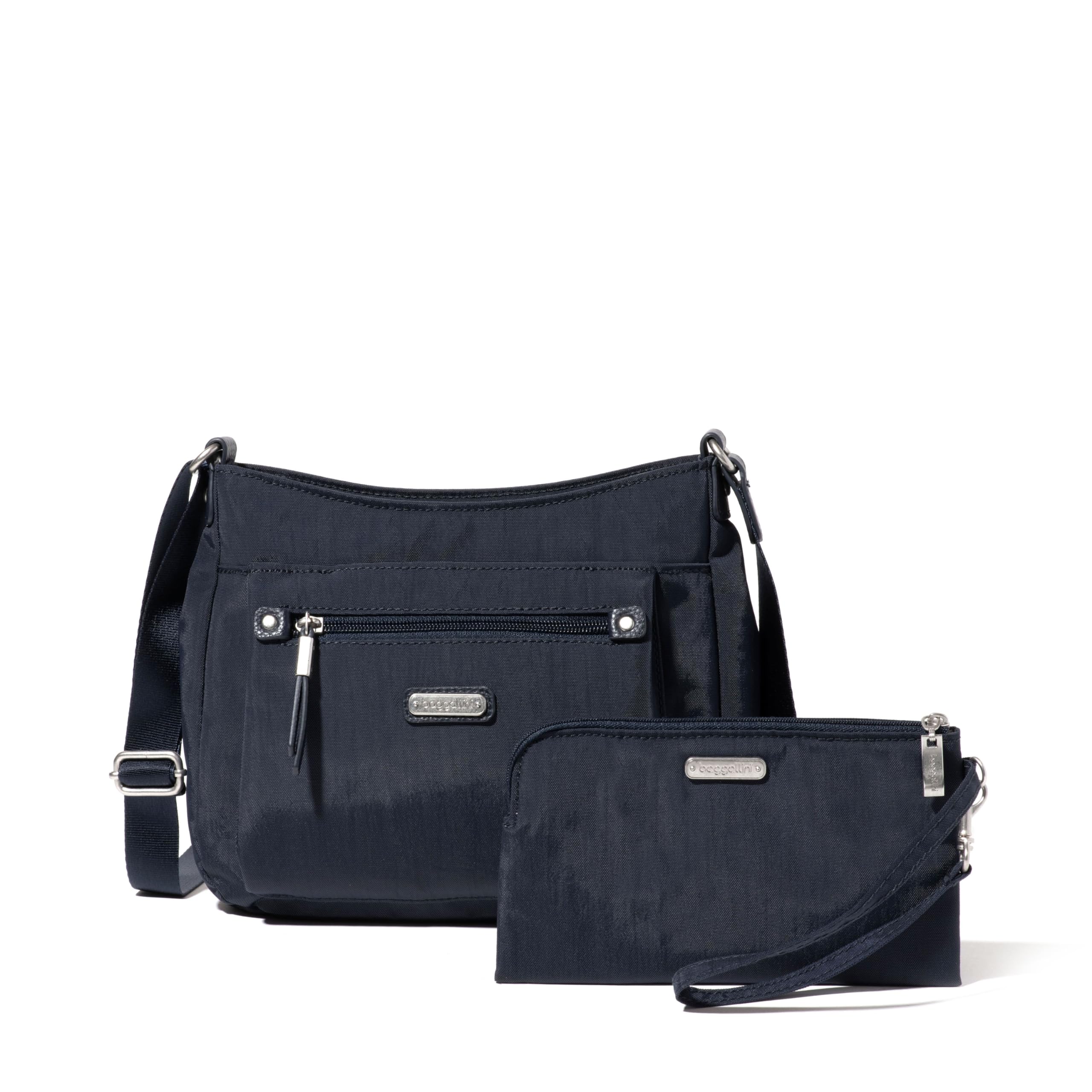 Baggallini women's lightweight nylon handbag RFID anti-theft 3 card slots multi-functional wrist bag robin blue one size fits all