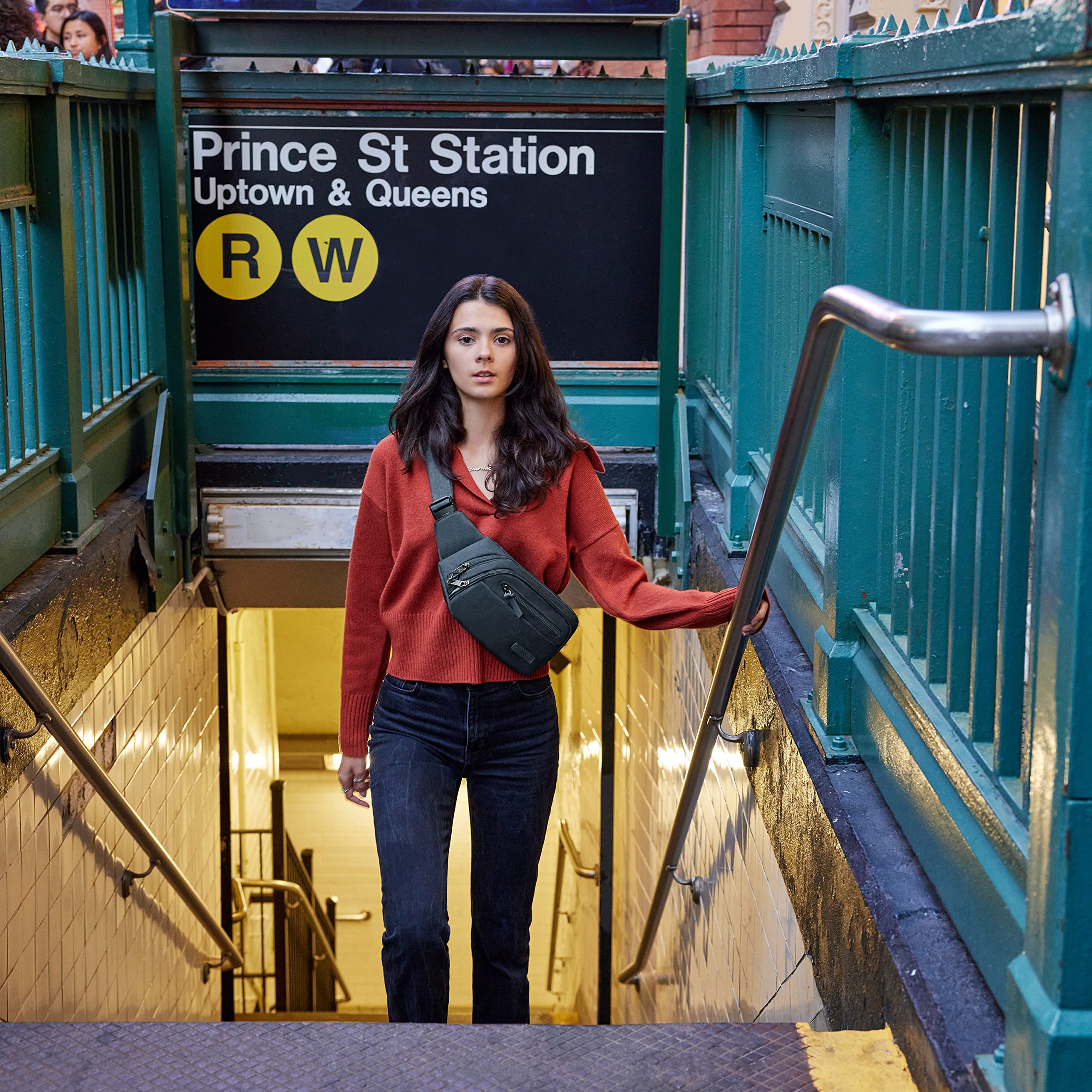 Travelon anti-theft waist bag, polyester fiber RFID protection, multi-functional travel storage, unisex, lightweight and waterproof