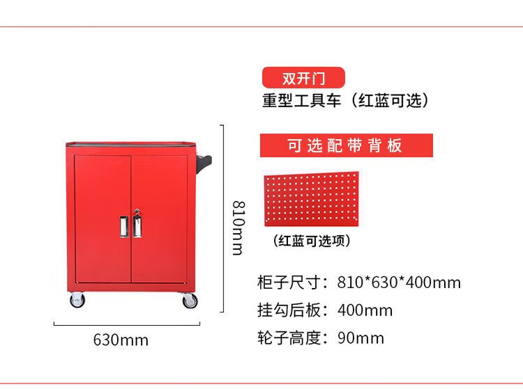 Hasdick HKCL-636 Auto Repair Tool Cart Hardware Tool Cabinet Multi-Function Mobile Repair Cabinet Double Drawer (With Back Plate) Blue