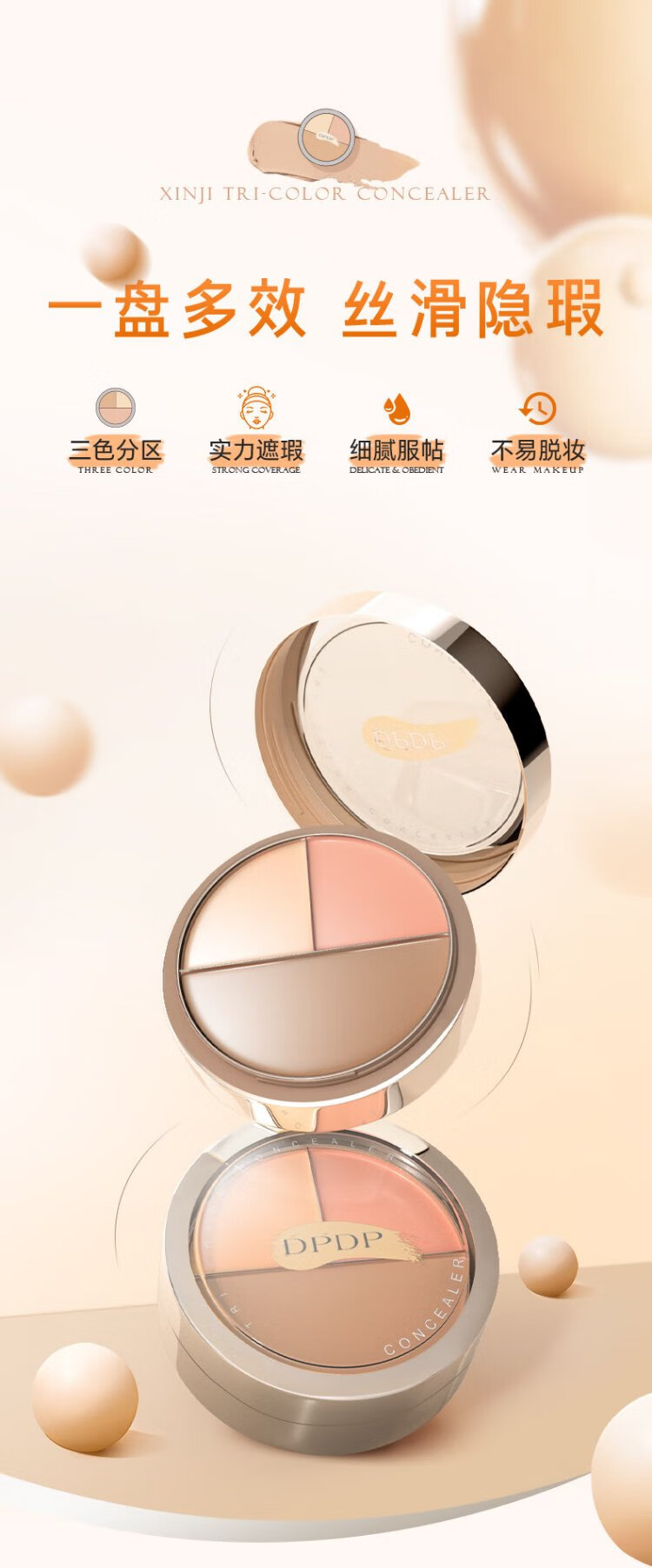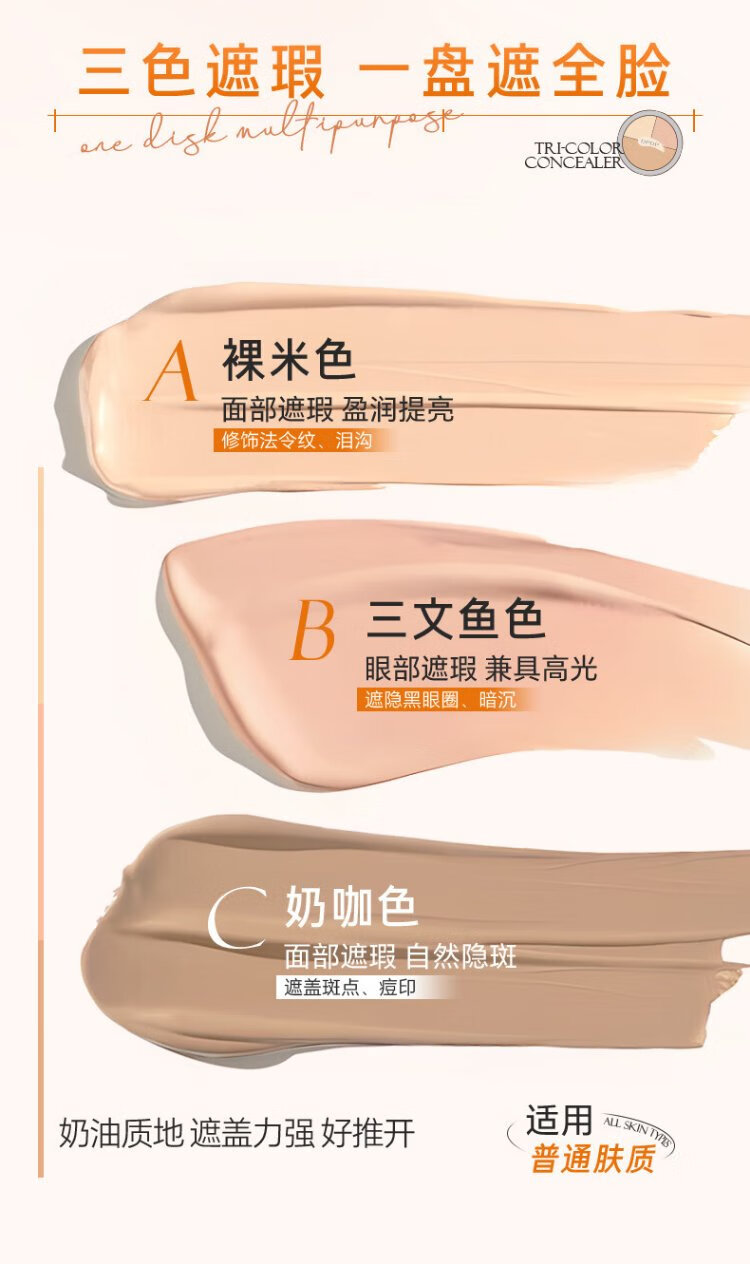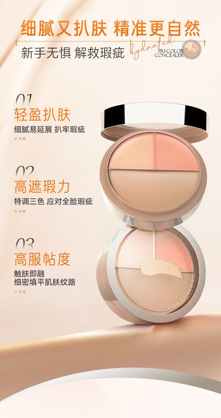 DPDP Three Color Concealer Palette Concealer Facial Highlight Contour Covers Dark Circles, Spots, Acne Marks and Nasal Lines Three Color Concealer*1+Thumb Powder Puff*1+Concealer Brush*1