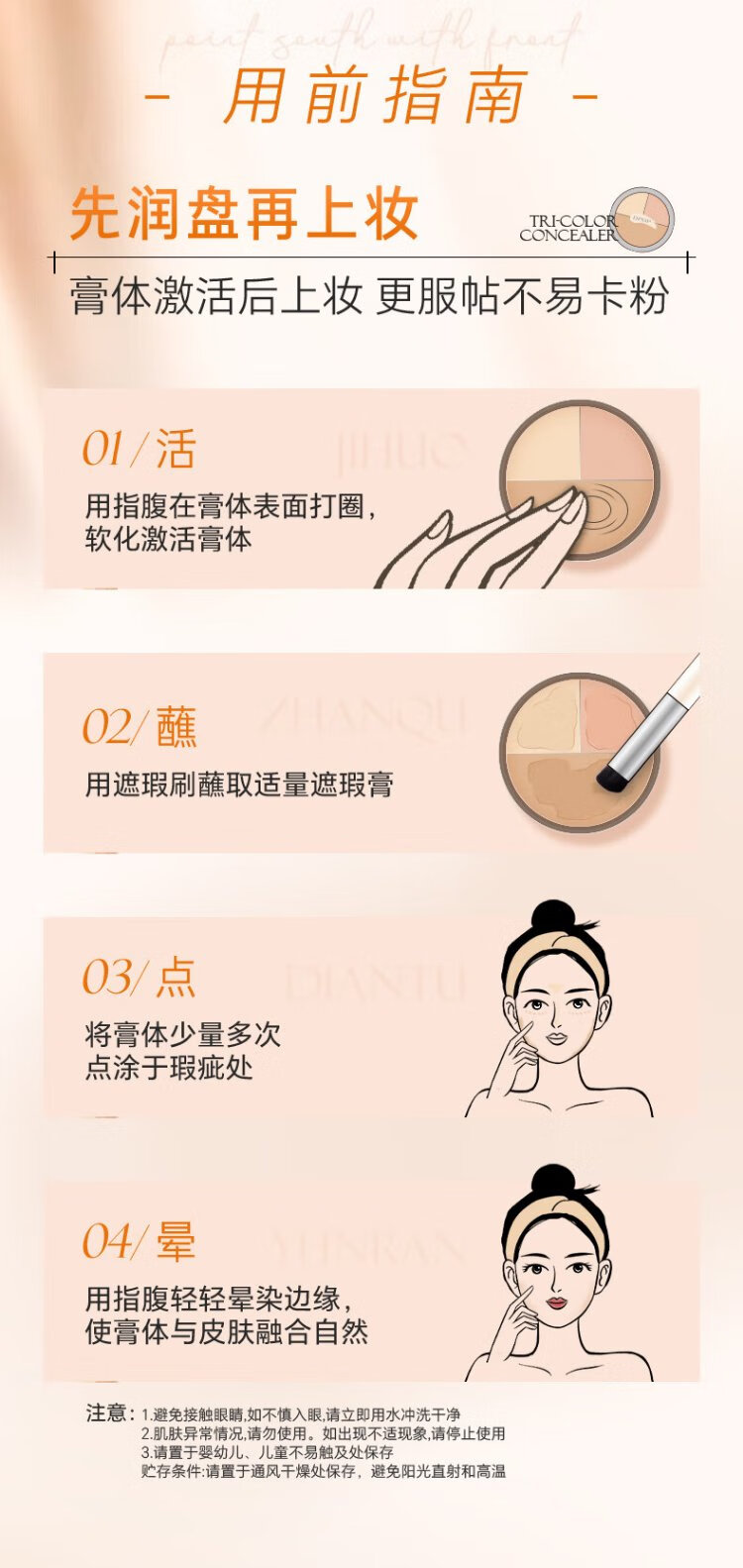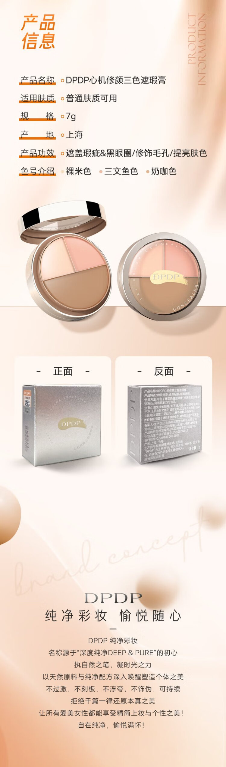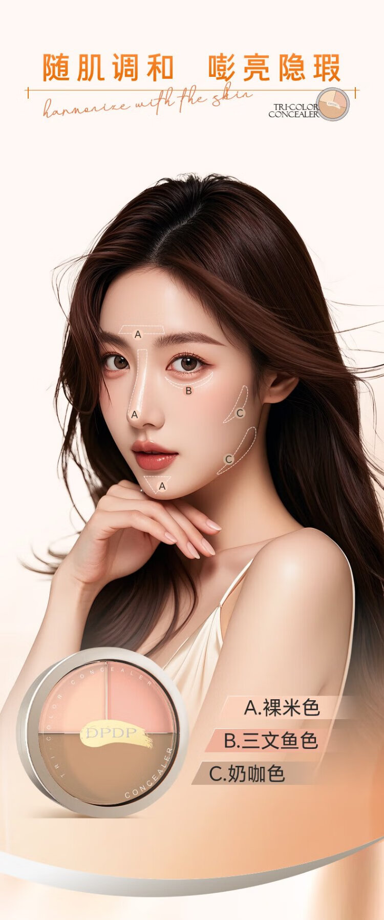 DPDP Three Color Concealer Palette Concealer Facial Highlight Contour Covers Dark Circles, Spots, Acne Marks and Nasal Lines Three Color Concealer*1+Thumb Powder Puff*1+Concealer Brush*1