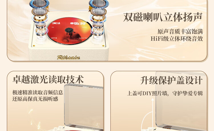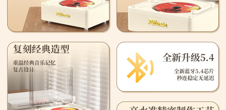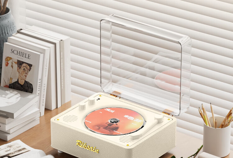 Riksoin retro CD player, disc enthusiast, album player, Bluetooth cd player, listening to discs, nostalgic literary discs, lossless sound quality, home Chinese Valentine's Day, birthday gift, Michelin white, original sound quality, 5.4 Bluetooth chip-dual speaker sound cavity diaphragm