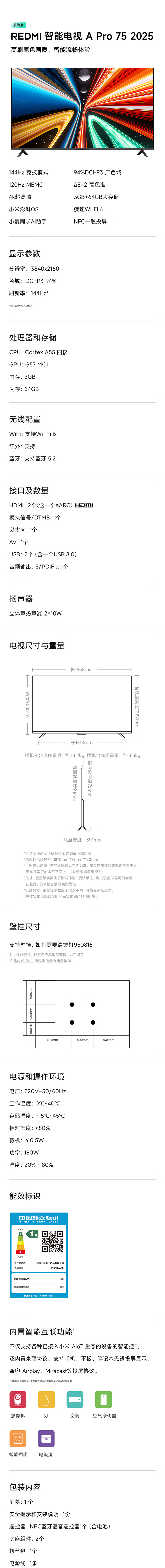 Xiaomi (MI) Redmi TV A Pro43/50/55/65/70/75-inch home living room office conference wireless projection removable TV commercial store display display 55-inch home installation Redmi A55 Pro+ rotating stand