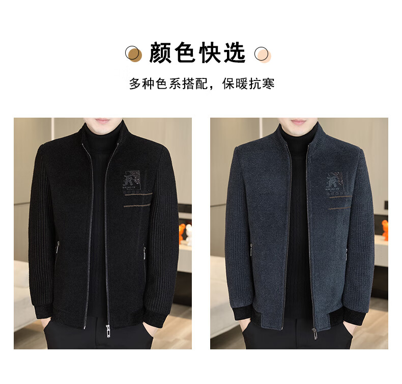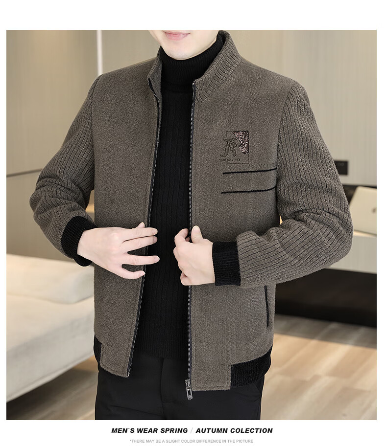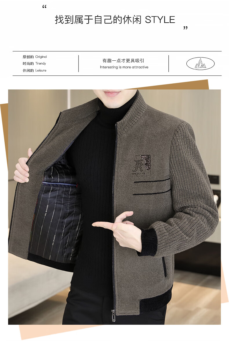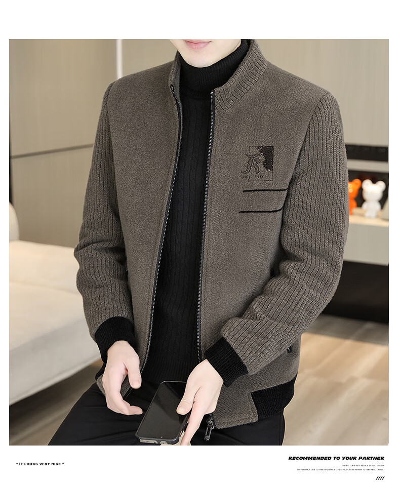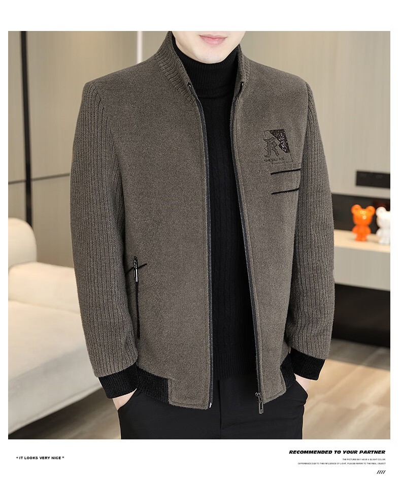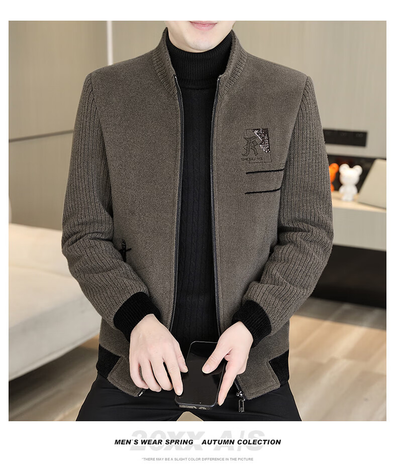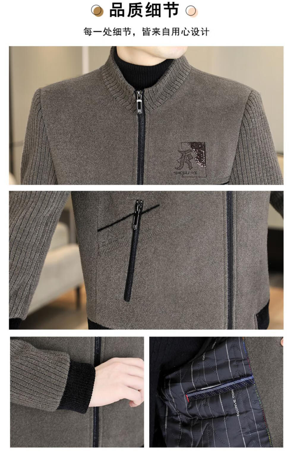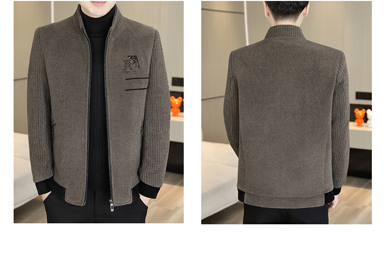 Hengyuanxiang Winter Mink Woolen Jacket Men's Short Stand-up Collar Thickened Top Men's Woolen Casual Jacket 2025 New Khaki Color Cotton 2XL 135-150 Jin
