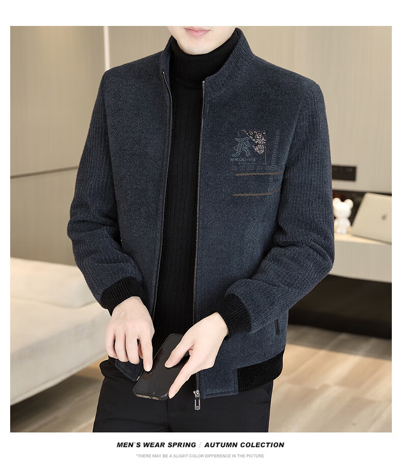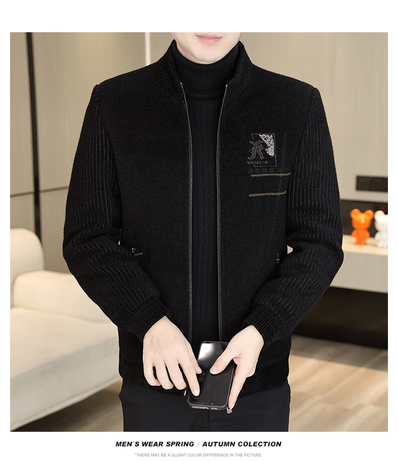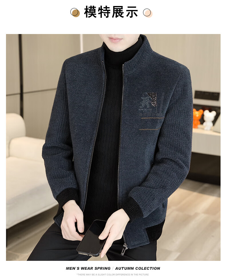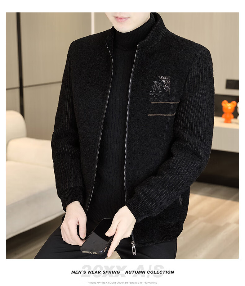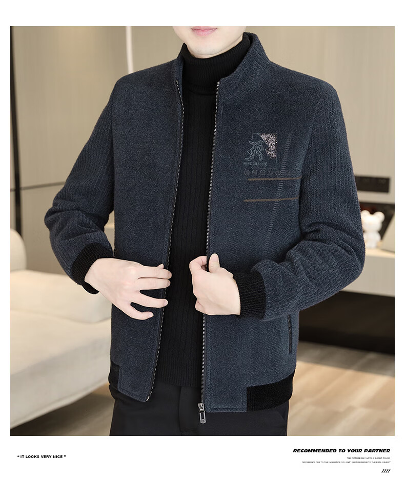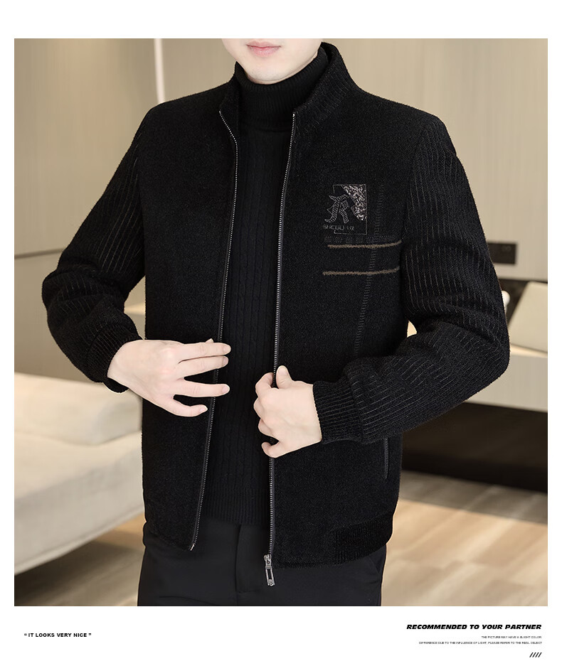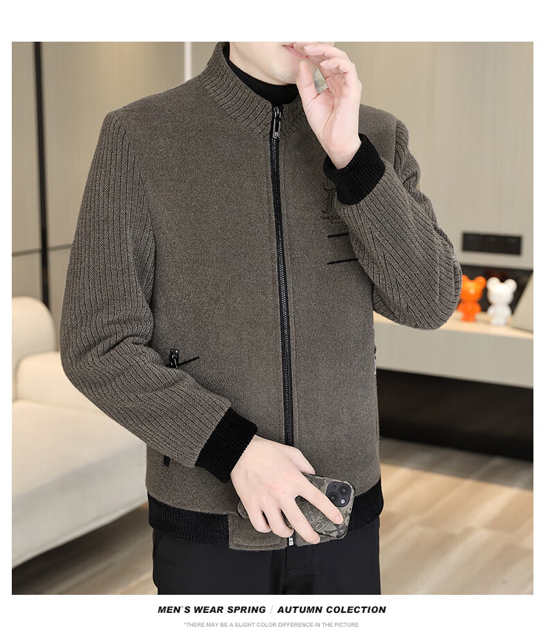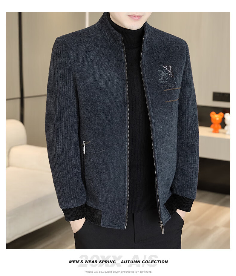 Hengyuanxiang Winter Mink Woolen Jacket Men's Short Stand-up Collar Thickened Top Men's Woolen Casual Jacket 2025 New Khaki Color Cotton 2XL 135-150 Jin