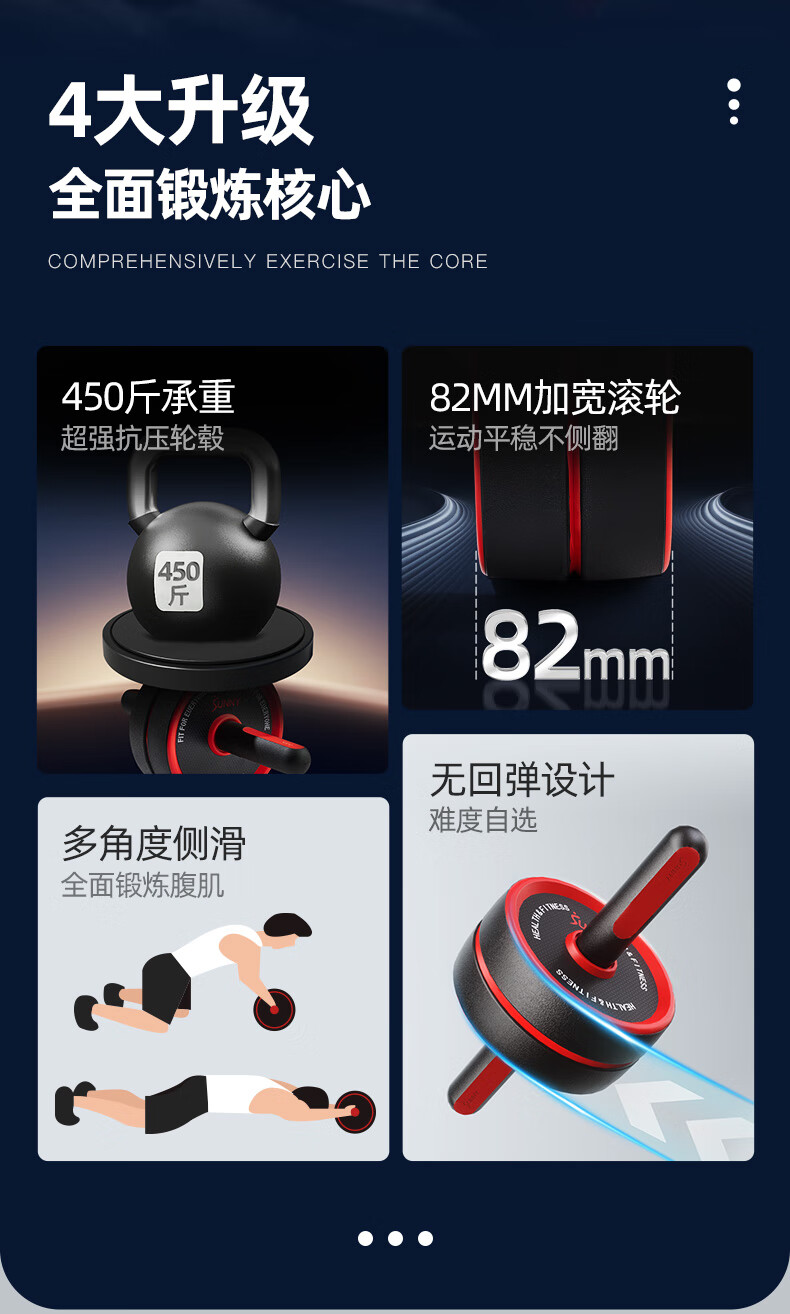 SUNNY American Abdominal Wheel Abdominal Roll Abdominal Roll Men's Home Belly Reducing Fitness Equipment Abdominal Muscle Training Roller 82MM wide | 450 catties large load-bearing kneeling pad