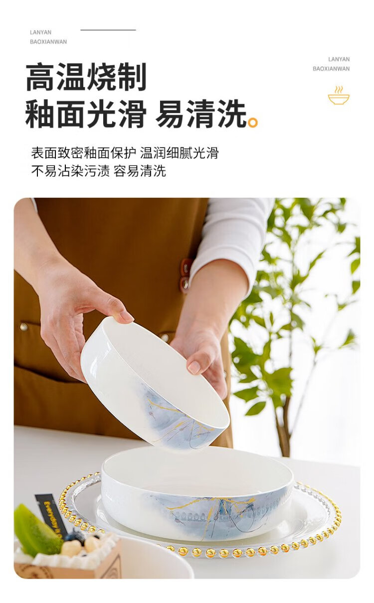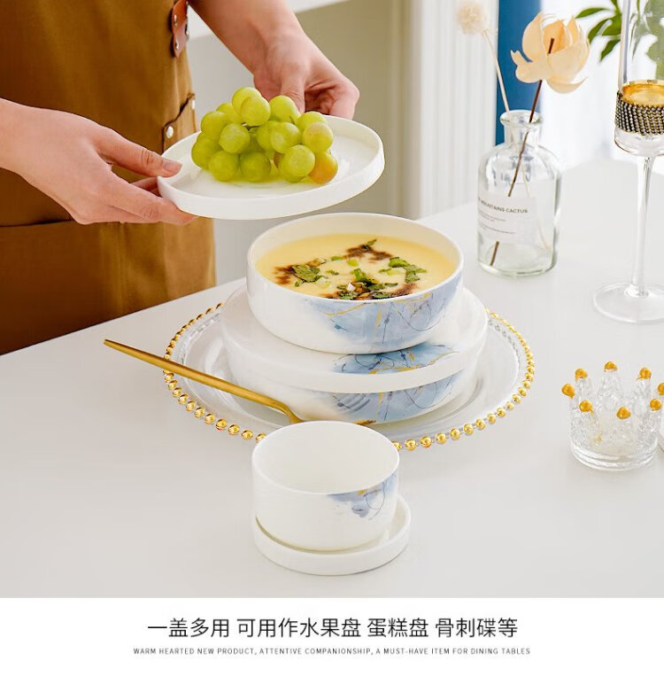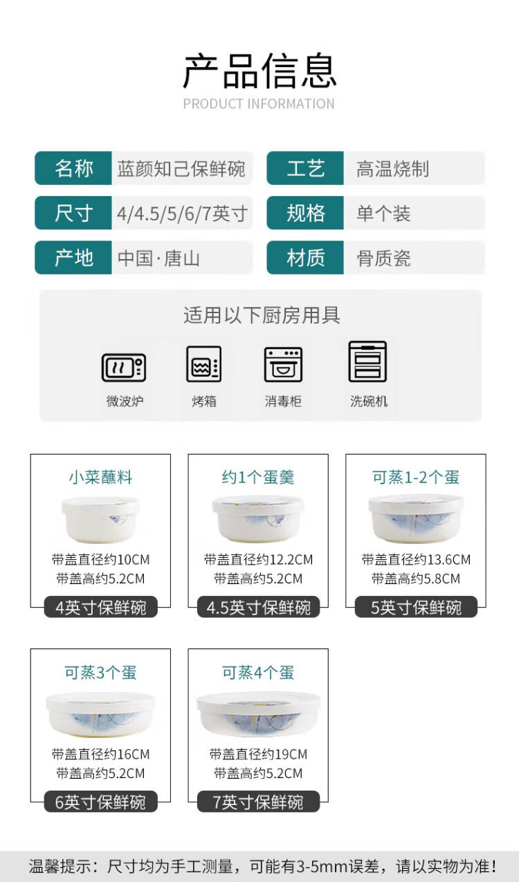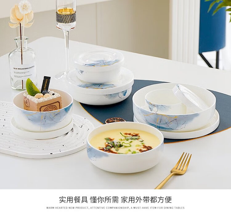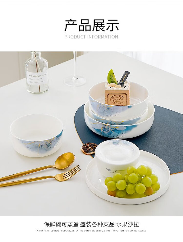 Pinjude light luxury bone china bowl with lid for preservation, steamed egg bowl, household water-proof stew bowl, ceramic microwave instant noodle bowl, lunch box, soup bowl, Lanyan 4-inch preservation bowl with lid