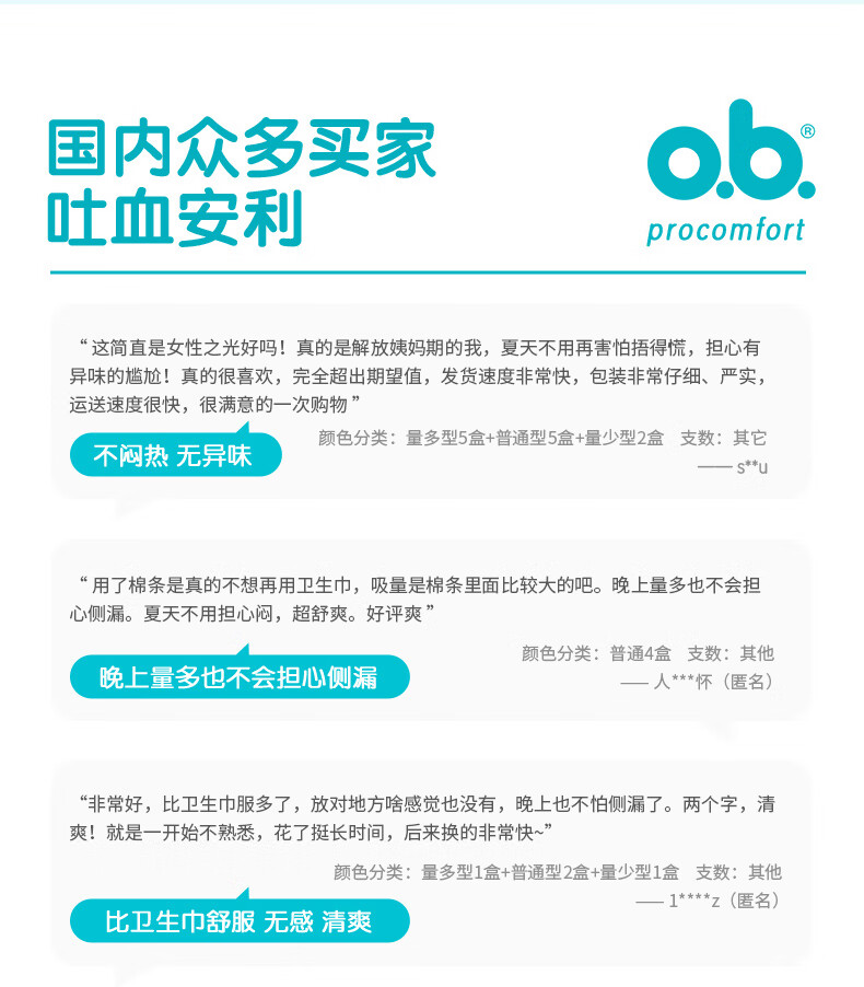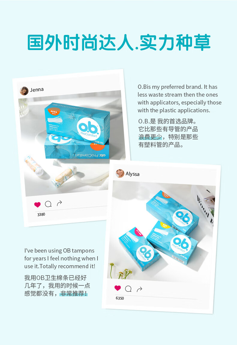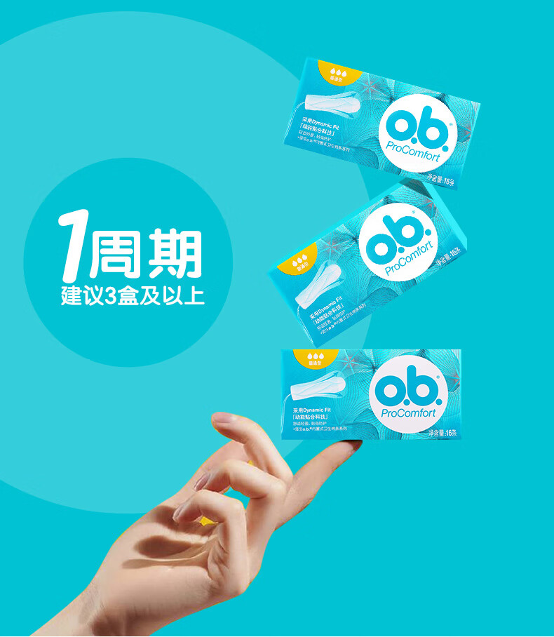 O.b. Tampon plug-in menstrual aunt cotton swab with built-in finger-in sanitary napkin for swimming, 16 pcs in a box, ordinary type 4 boxes