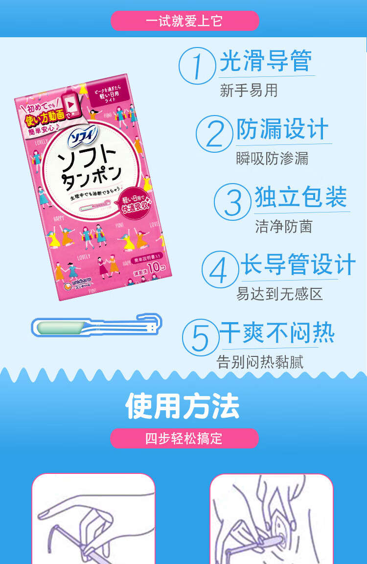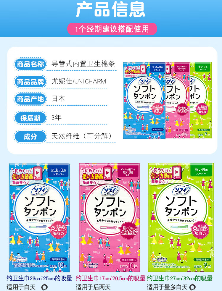 Unicharm Unicharm tampons, catheter type, built-in swimming special menstrual heavy flow aunt napkin, 3 boxes, total 27 pieces/amount, for daily use