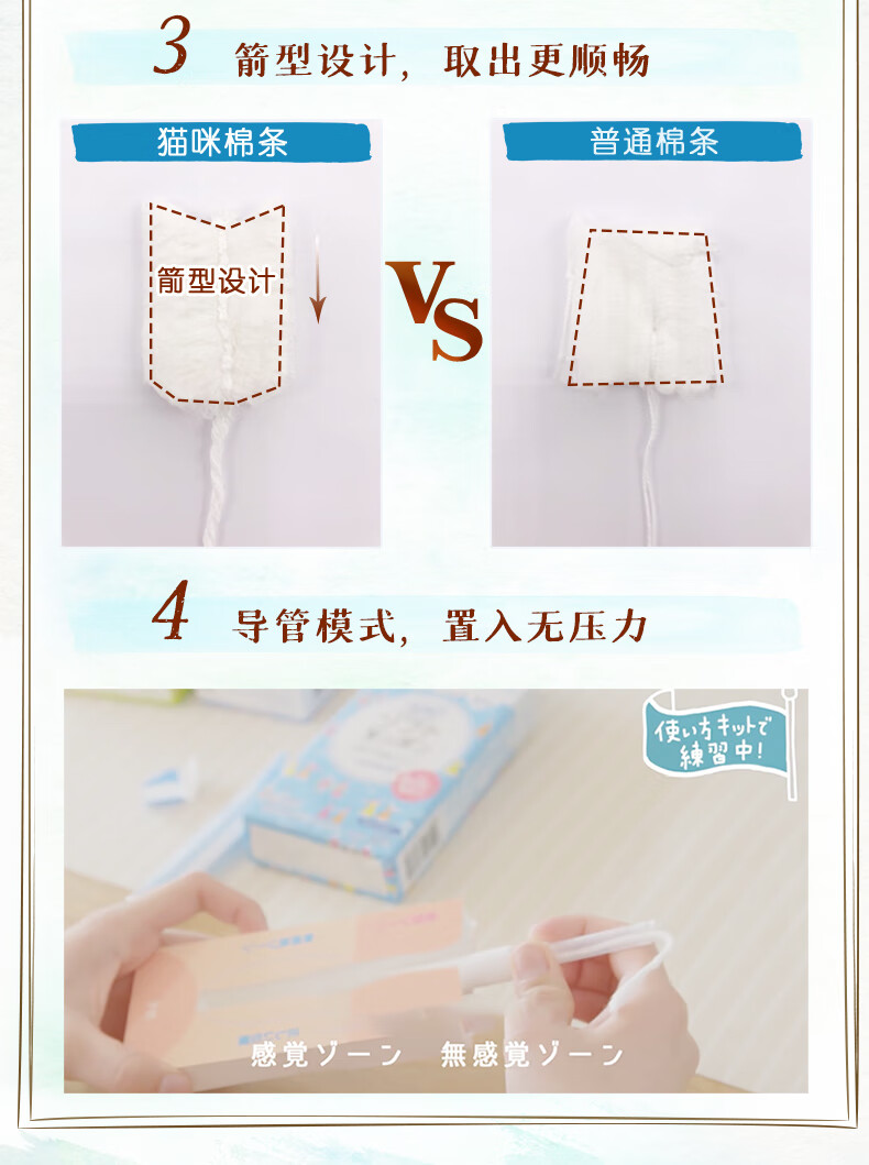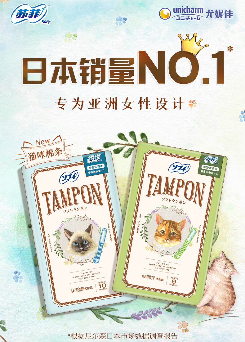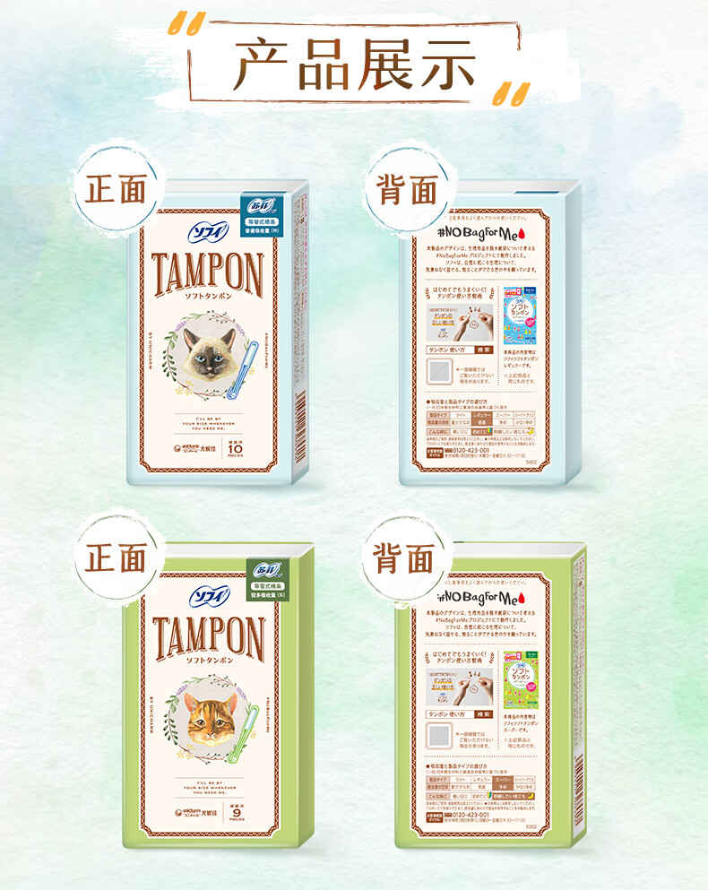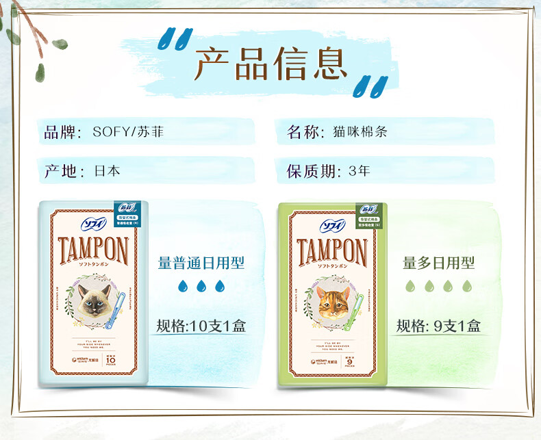 Sophie sofy cat tampons with built-in invisible sensitive skin daily general type tampons 2 boxes large quantity * 1 box + regular quantity * 1 box