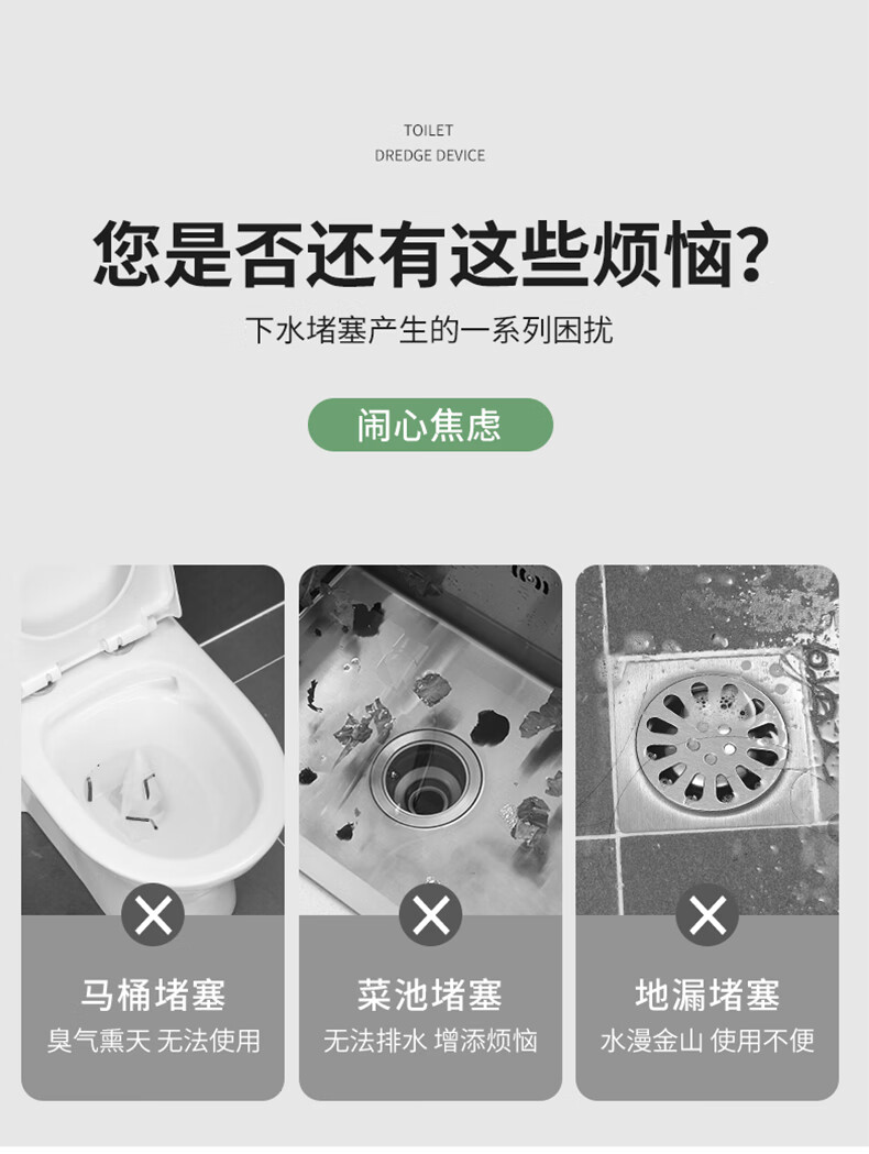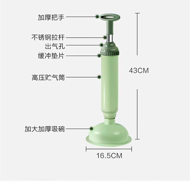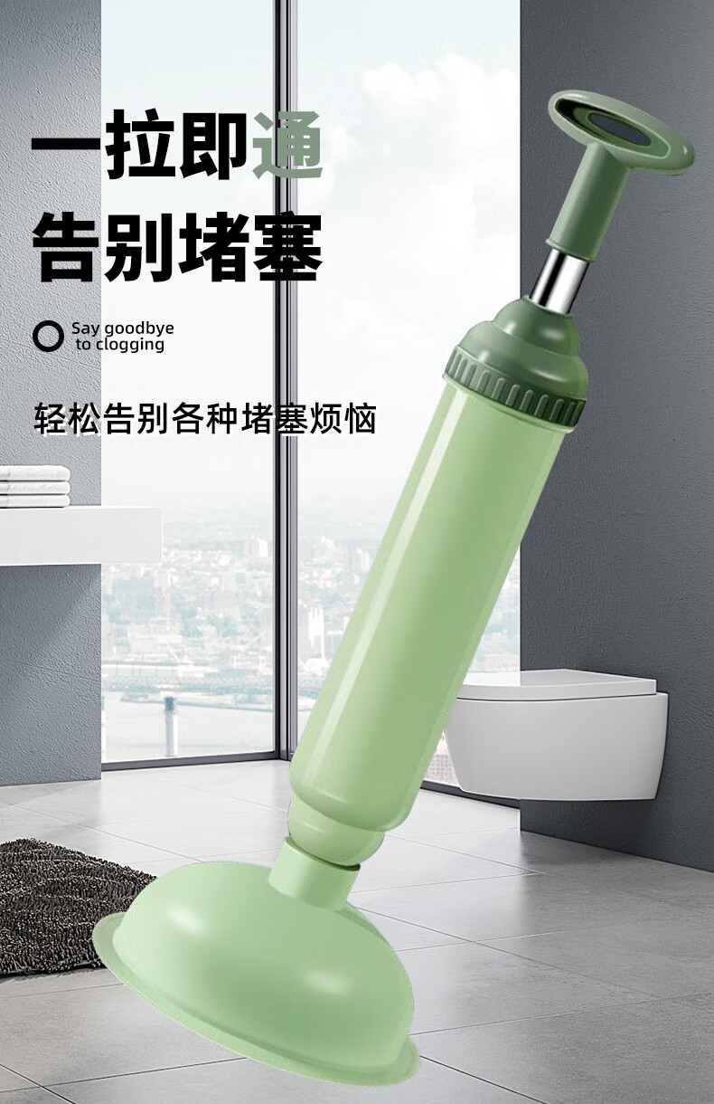 Yigongding Toilet Unblocker, Leather Suction Ladder, Sewer Toilet Manual Vacuum, Leather Suction Unblocker, Blue Black Bottom Thickened Model