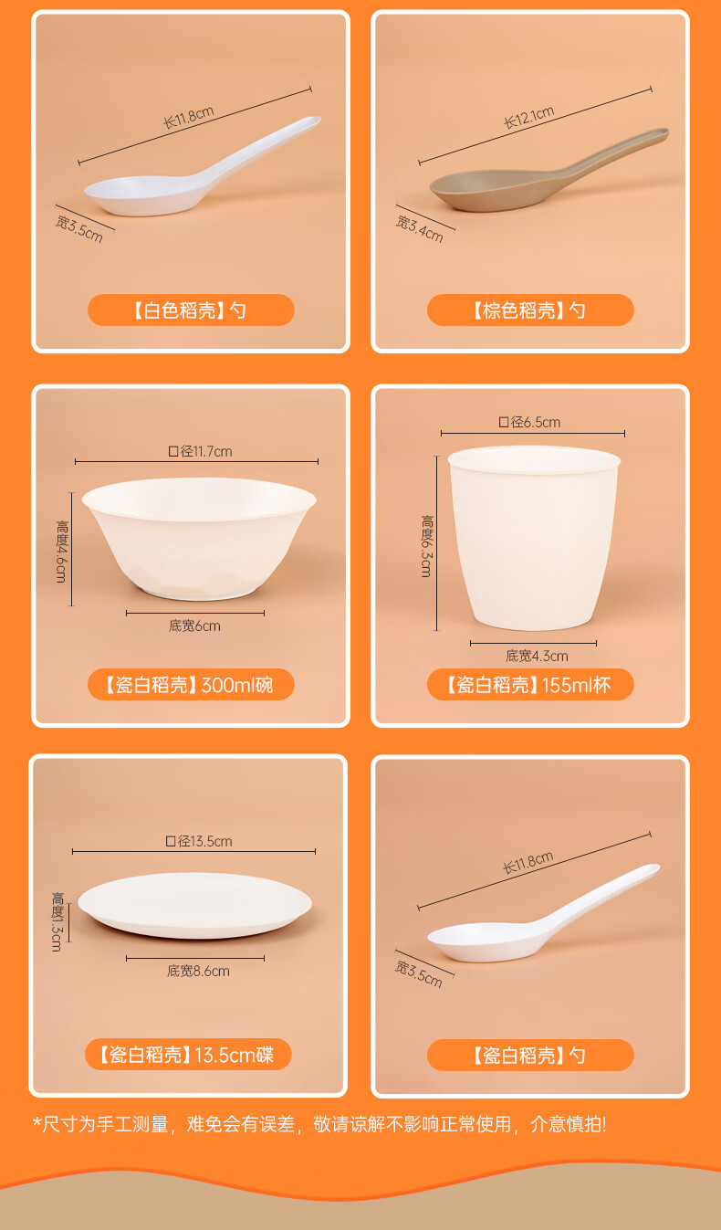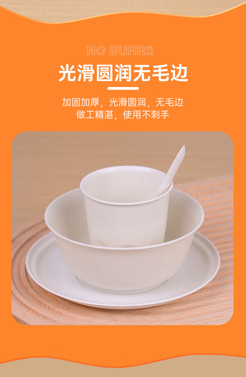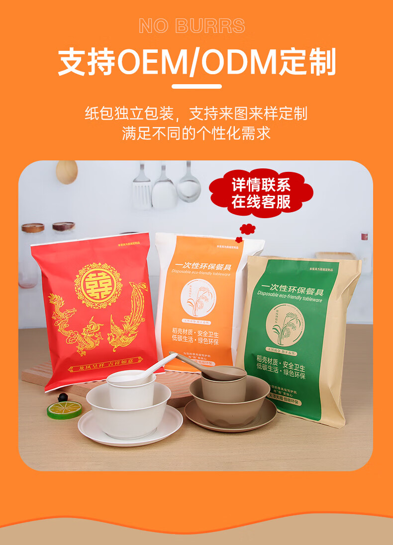Chulu disposable rice husk tableware four-piece set Kraft paper packaging commercial cups, bowls, spoons and plates four-piece set for barbecue parties Blue and white porcelain chopsticks individually packed 10 pairs