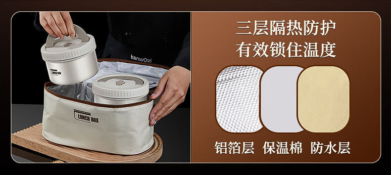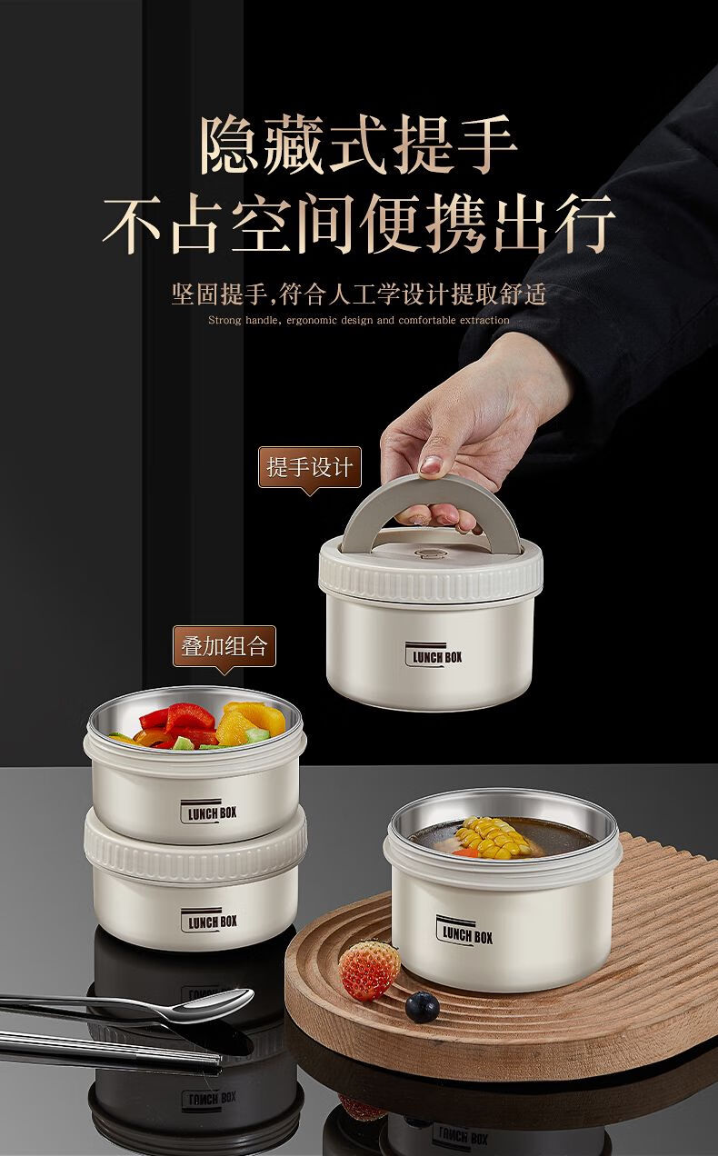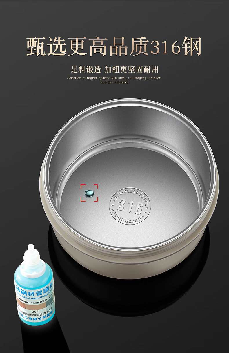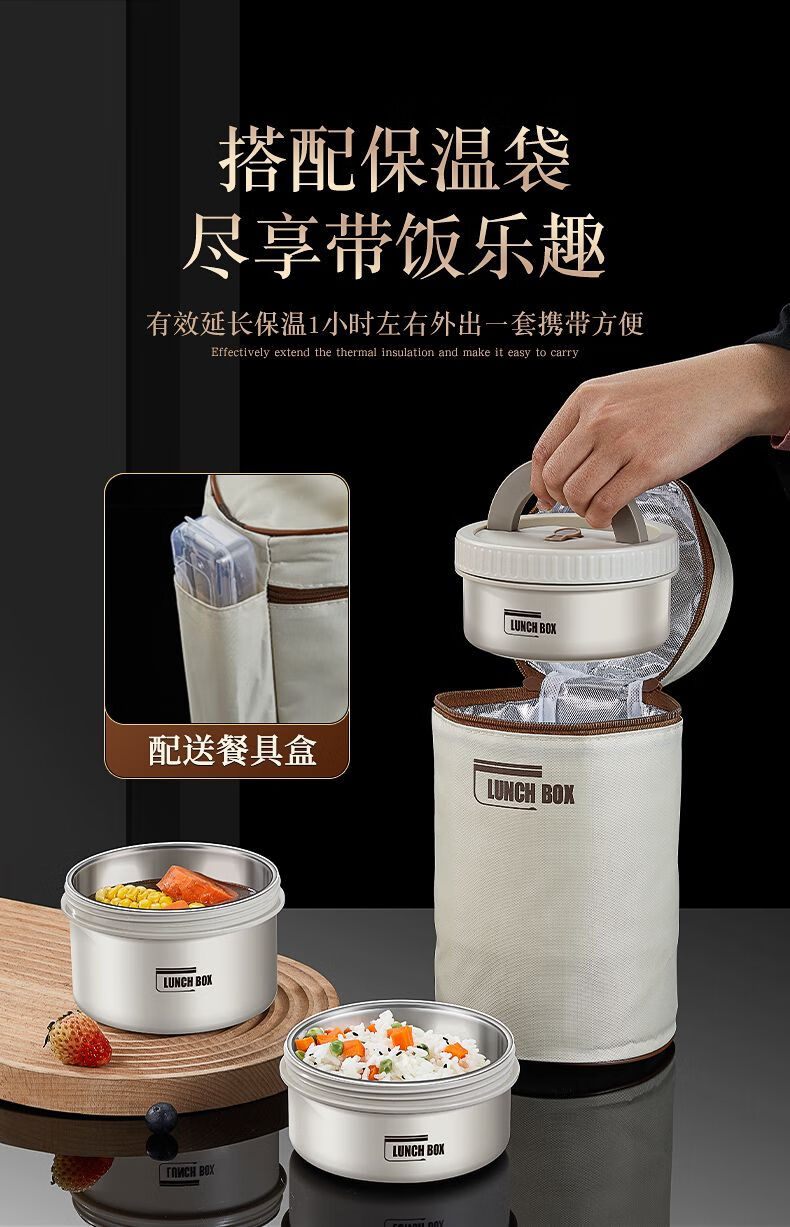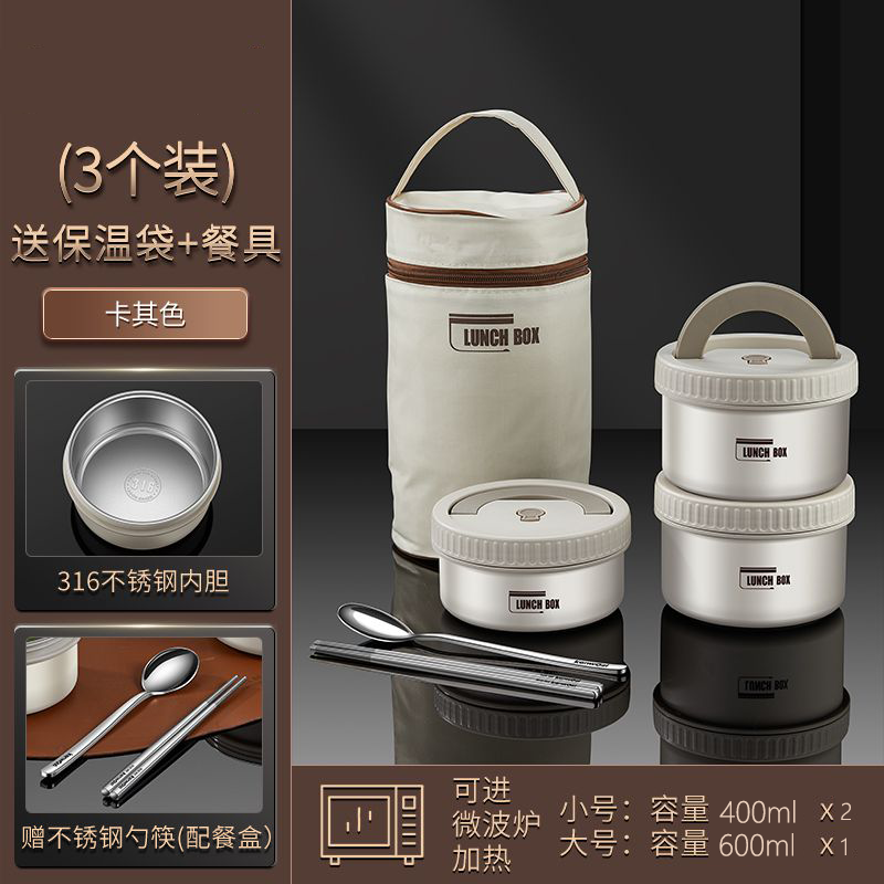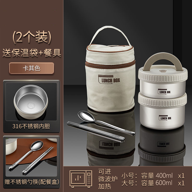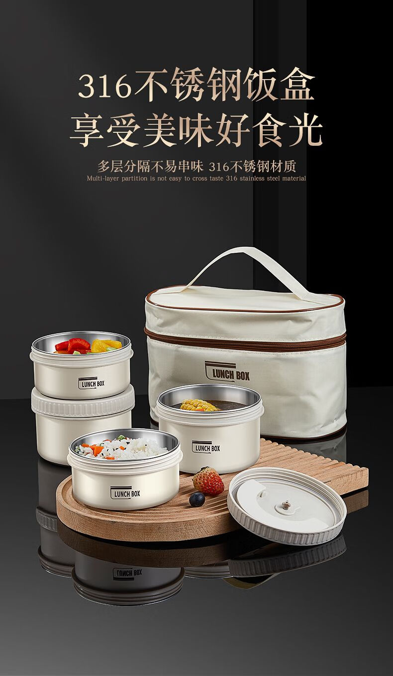 Zhongnuo 316L stainless steel insulated lunch box with lid, separated lunch box for students and office workers, special lunch box for canteen meals, four-piece set 600ml*2+400ml*2+insulated bag