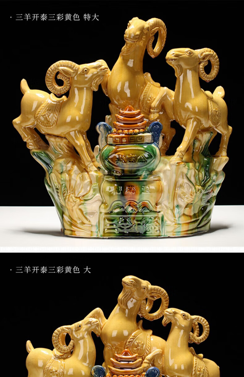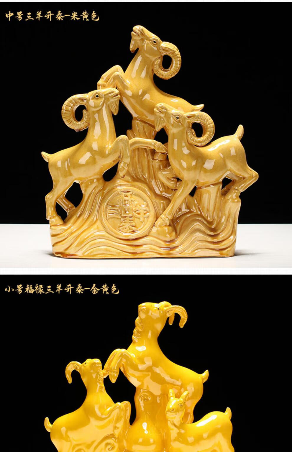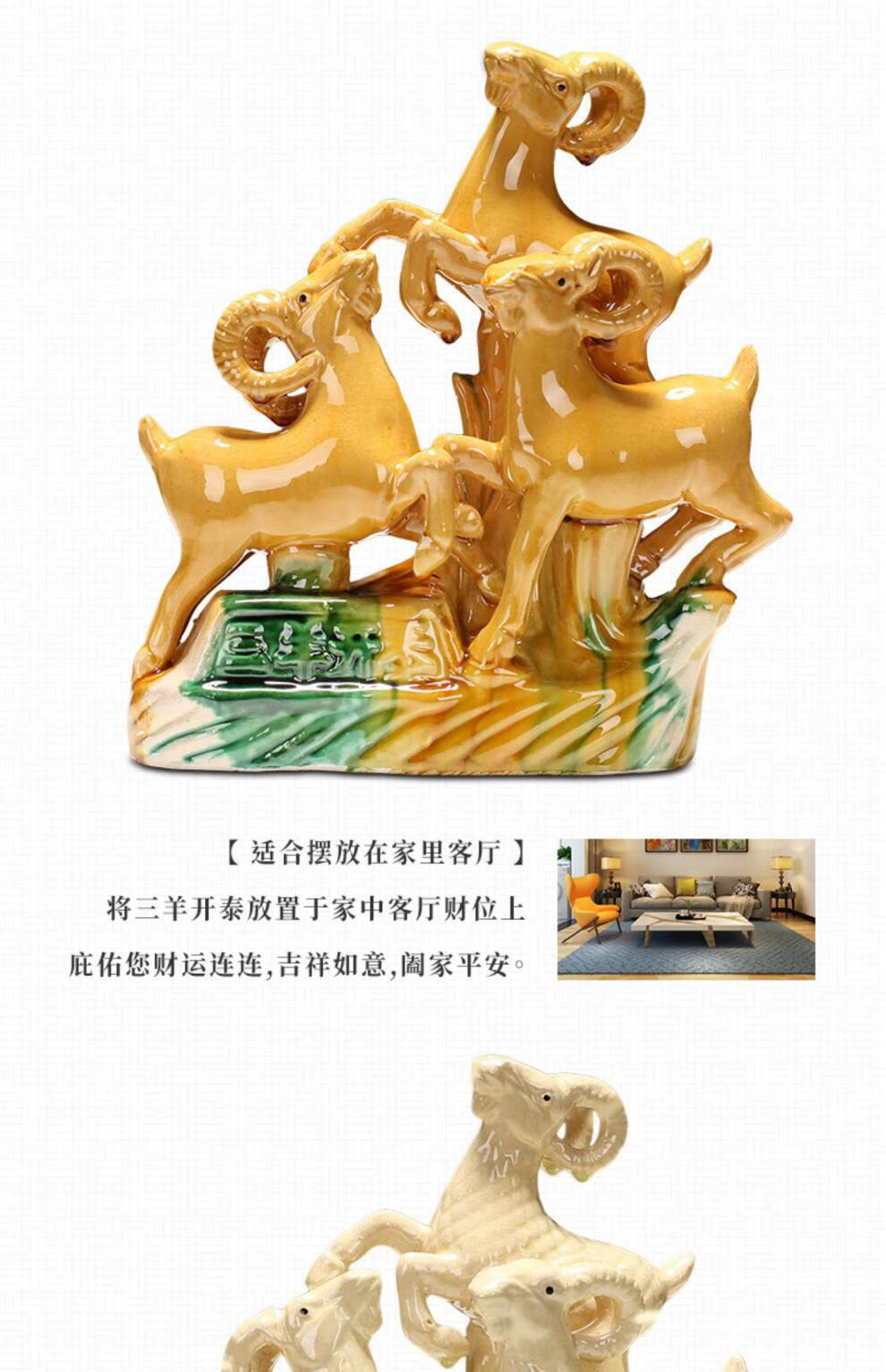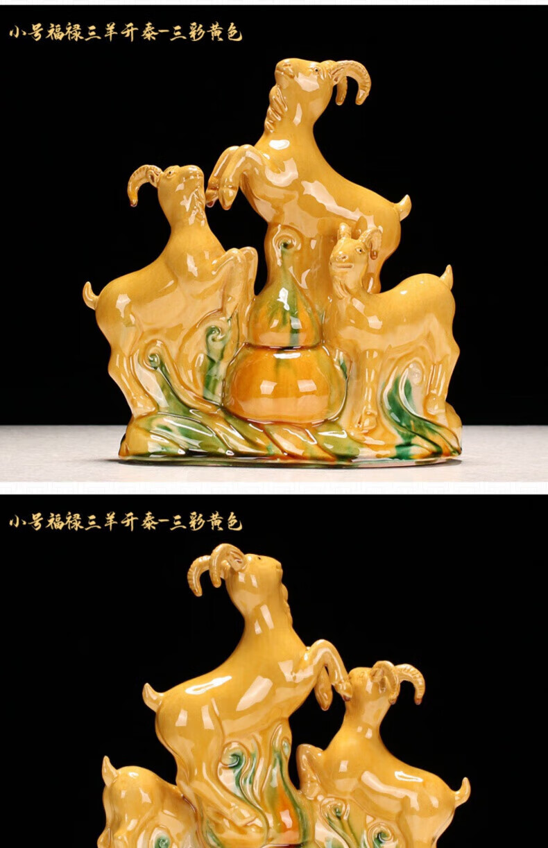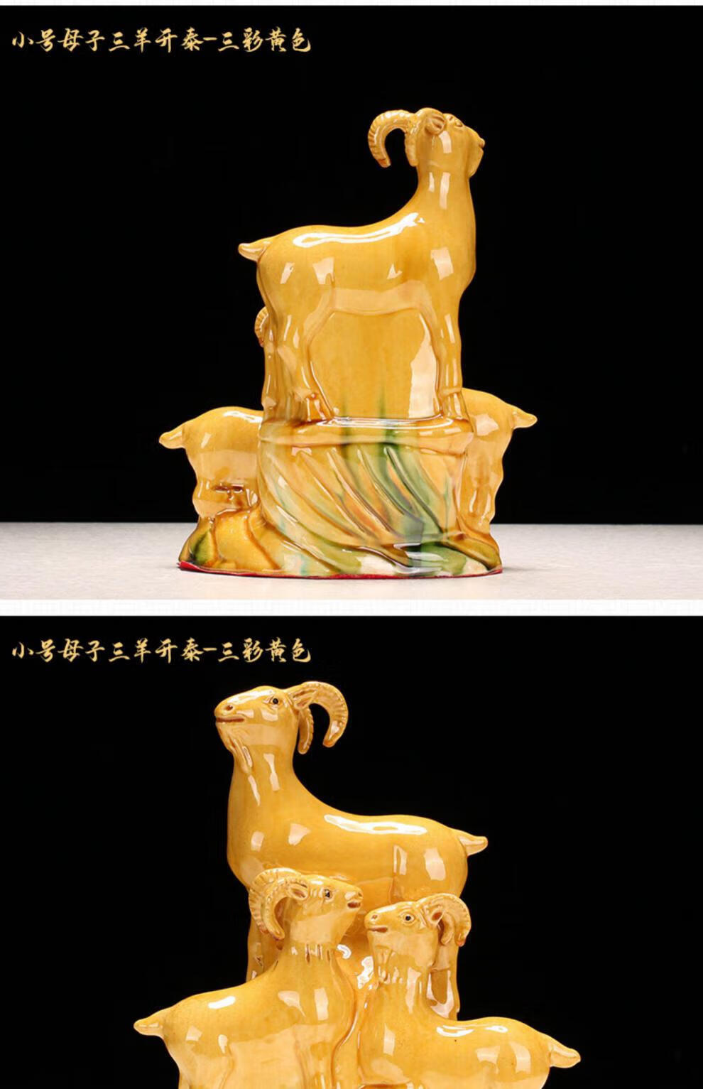 Pu Lian Sanyang Kaitai ornaments Tang Sancai ceramic sheep living room TV cabinet handicrafts sheep and sheep ornaments Small Sanyang Kaitai flower yellow pattern Main picture two