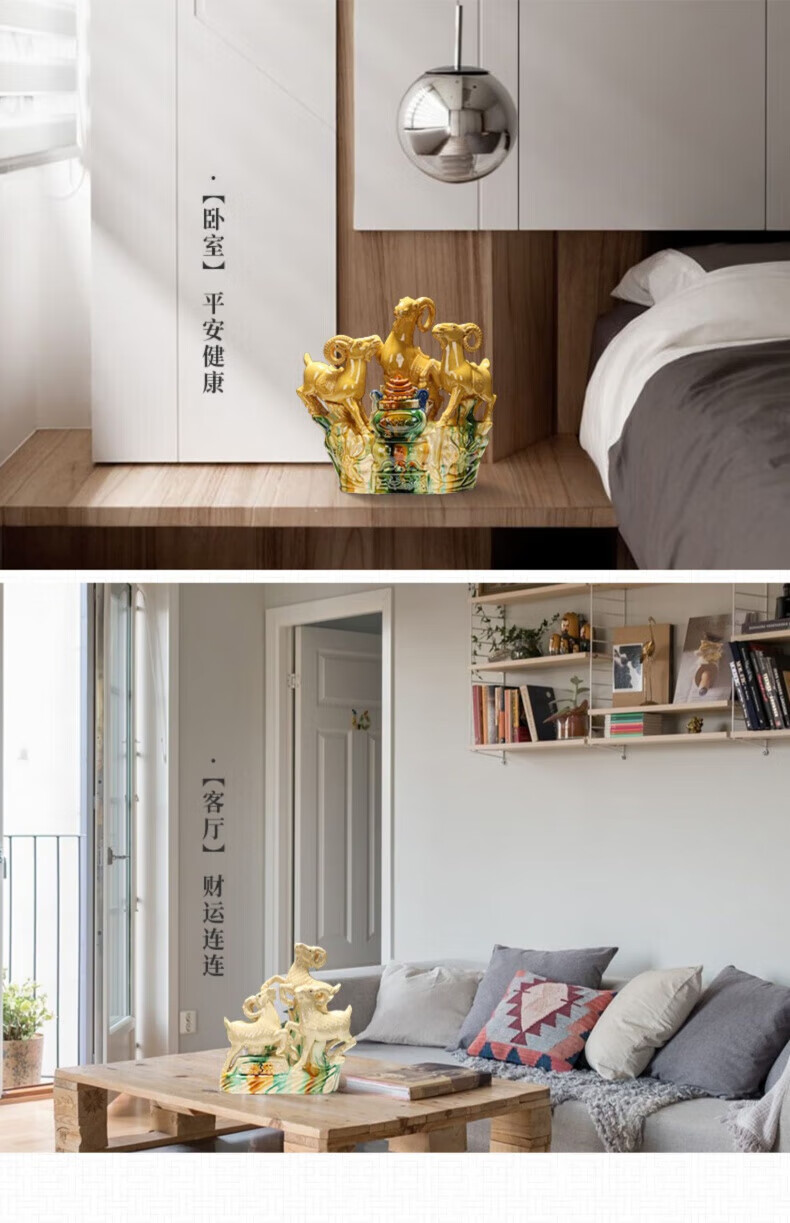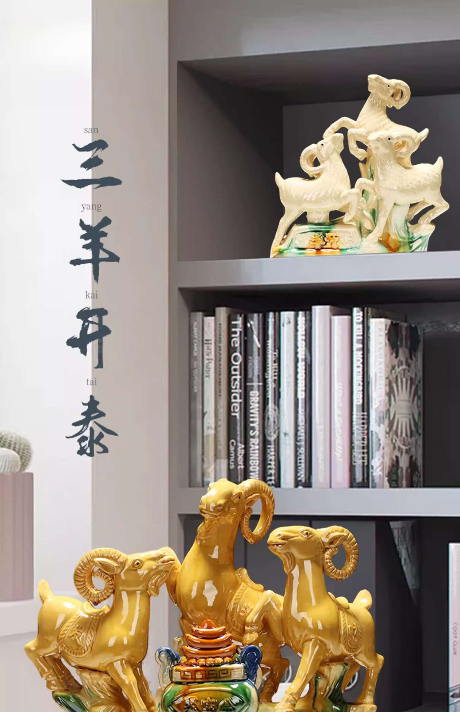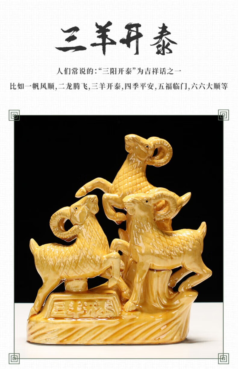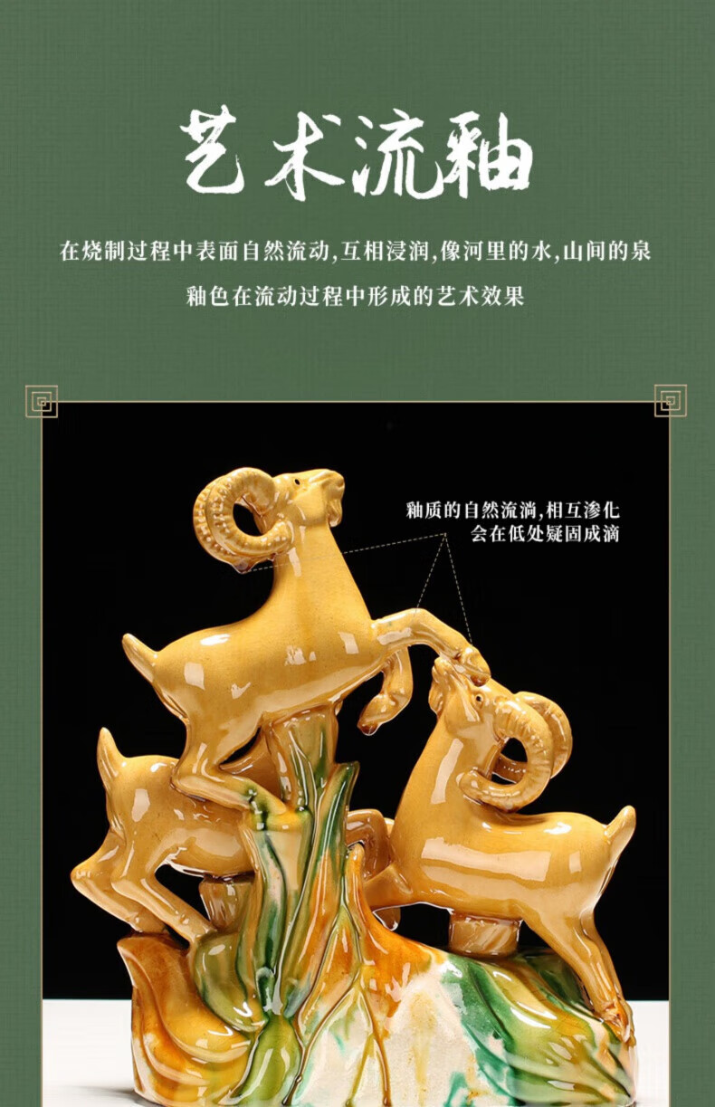 Pu Lian Sanyang Kaitai ornaments Tang Sancai ceramic sheep living room TV cabinet handicrafts sheep and sheep ornaments Small Sanyang Kaitai flower yellow pattern Main picture two
