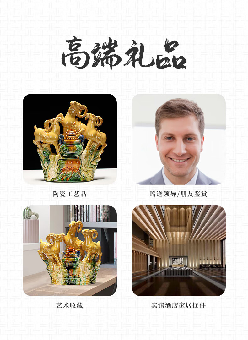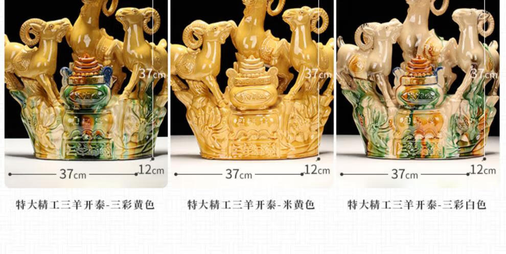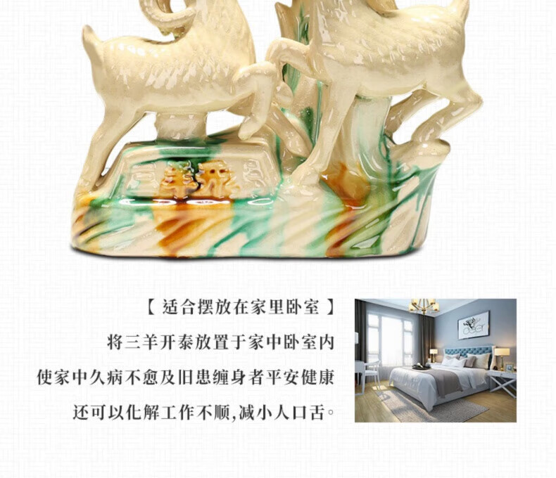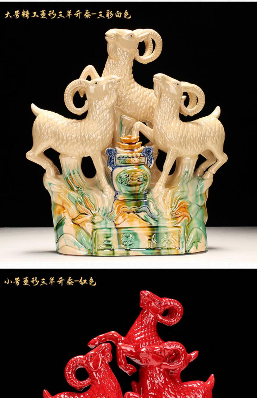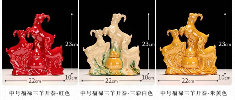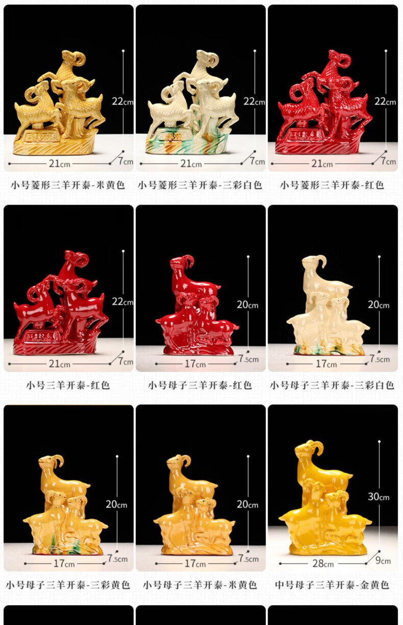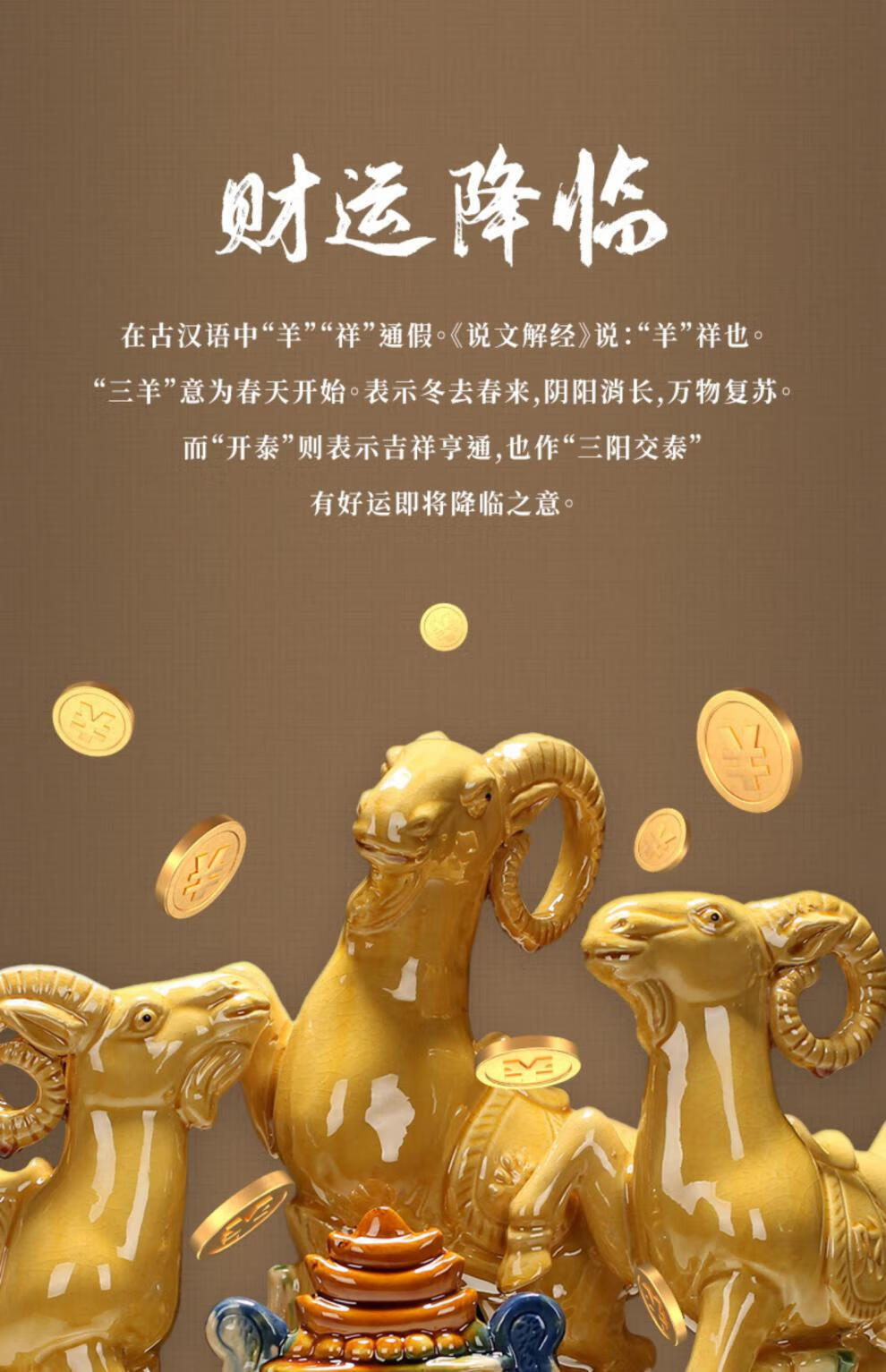 Pu Lian Sanyang Kaitai ornaments Tang Sancai ceramic sheep living room TV cabinet handicrafts sheep and sheep ornaments Small Sanyang Kaitai flower yellow pattern Main picture two