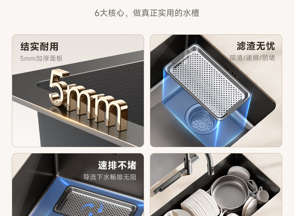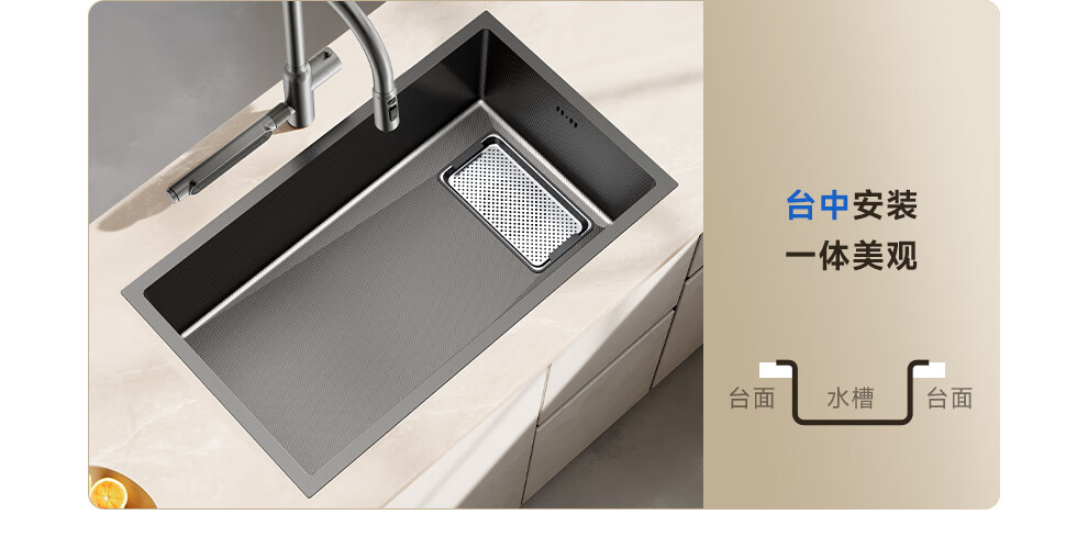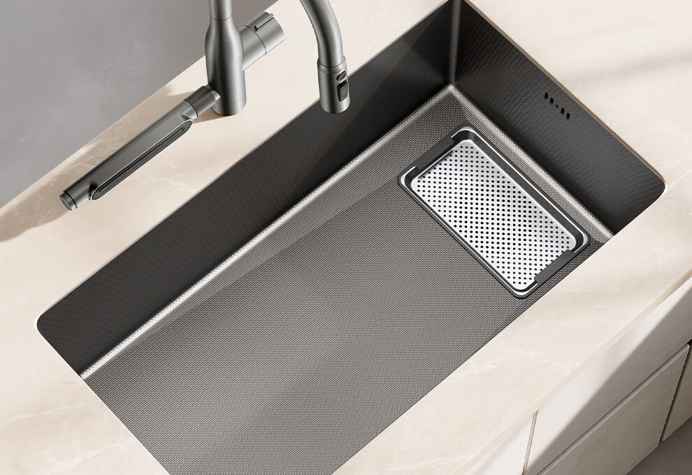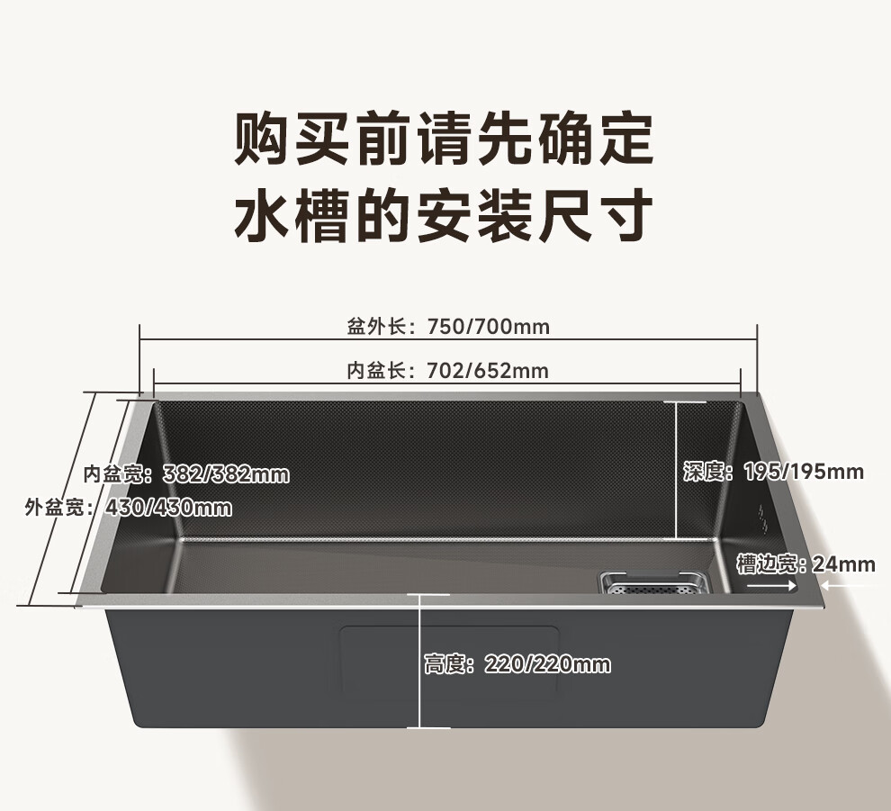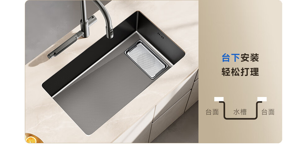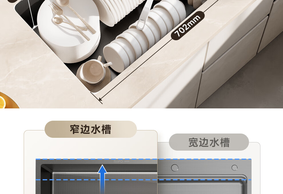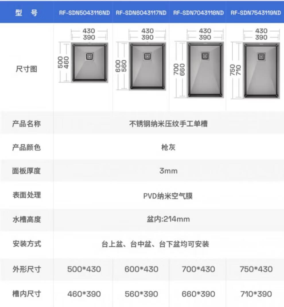 Rifeng 304 stainless steel sink large single-slot kitchen sink wash basin thickened embossed undercounter basin sink 3mm 68x43丨silver pull-out 0 coating