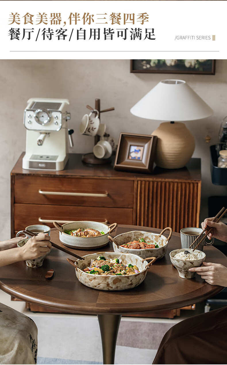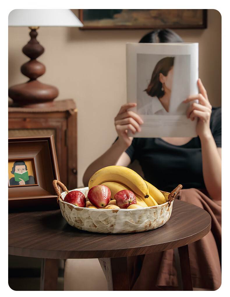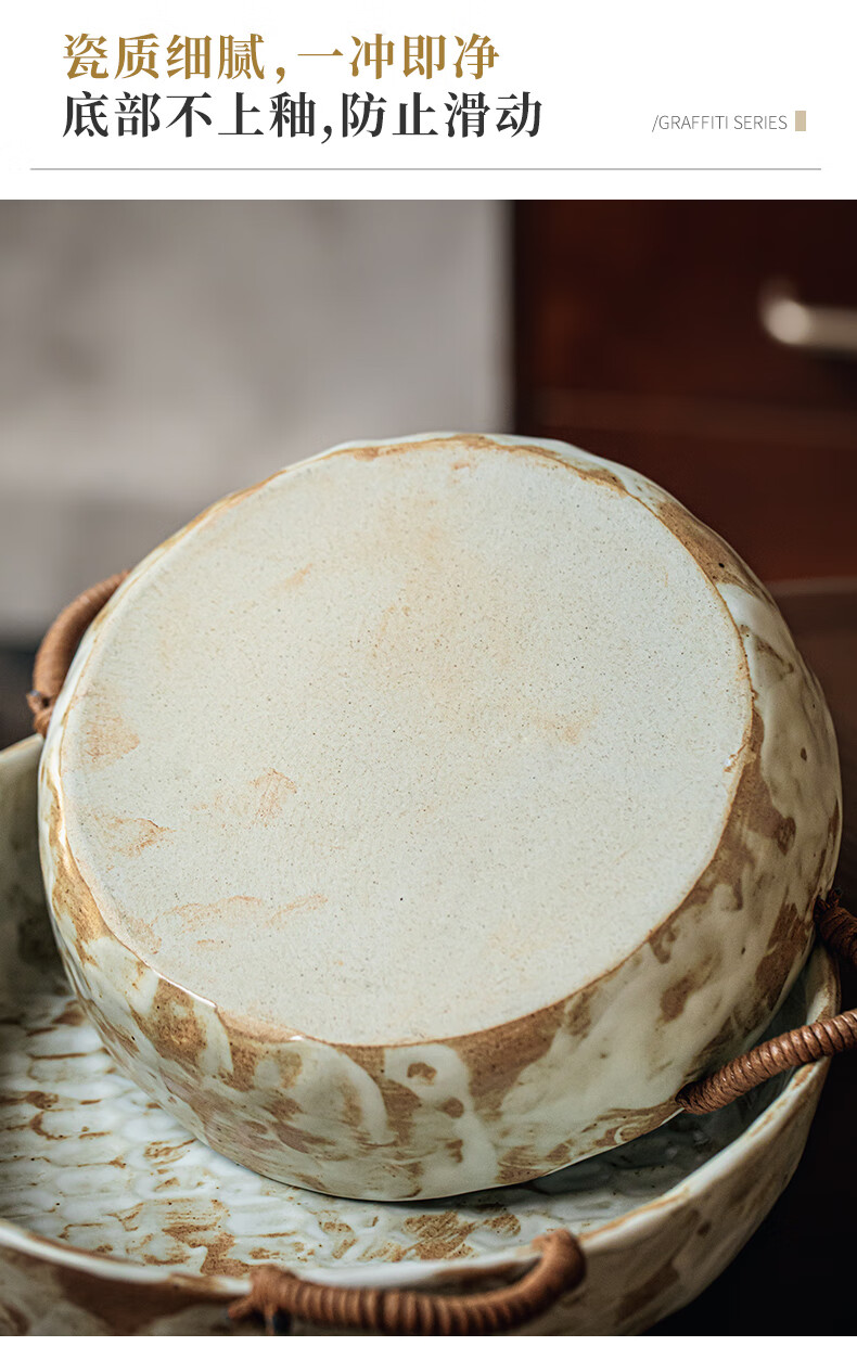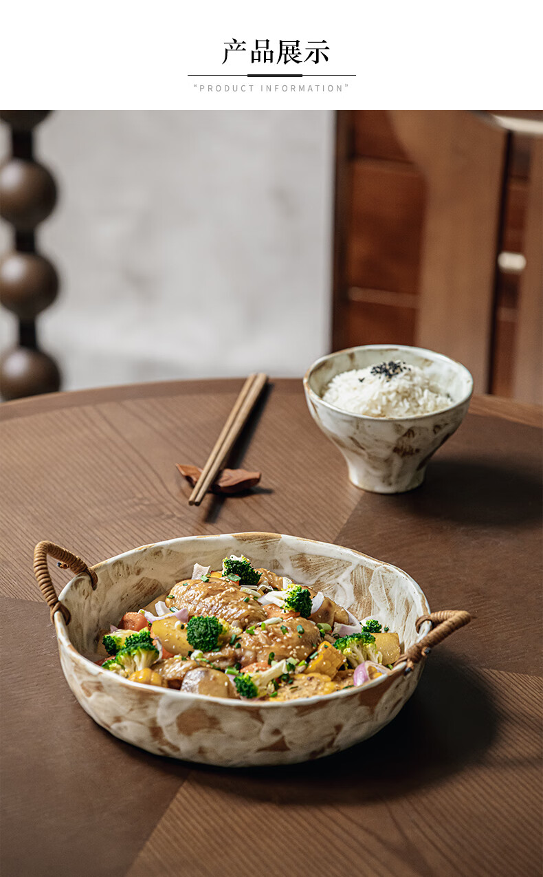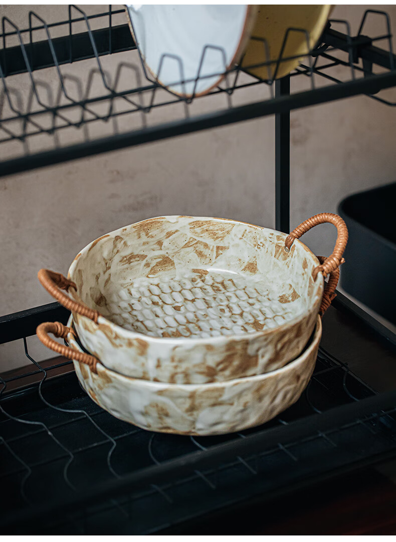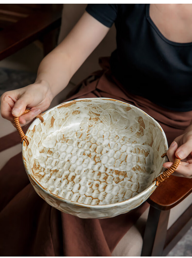 Youcci Nostalgic Handmade Stoneware Characteristic Hemp Rope Double-Eared Bowl, Retro Ceramic Bowl, New Home Bowl, Good-looking Fruit Bowl, Machi-10 Inch Hemp Rope Stoneware Double-Eared Bowl