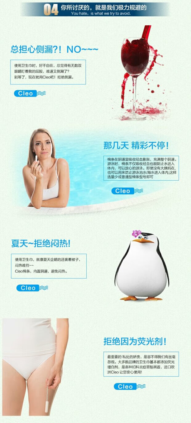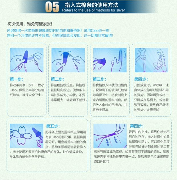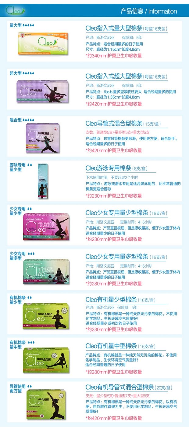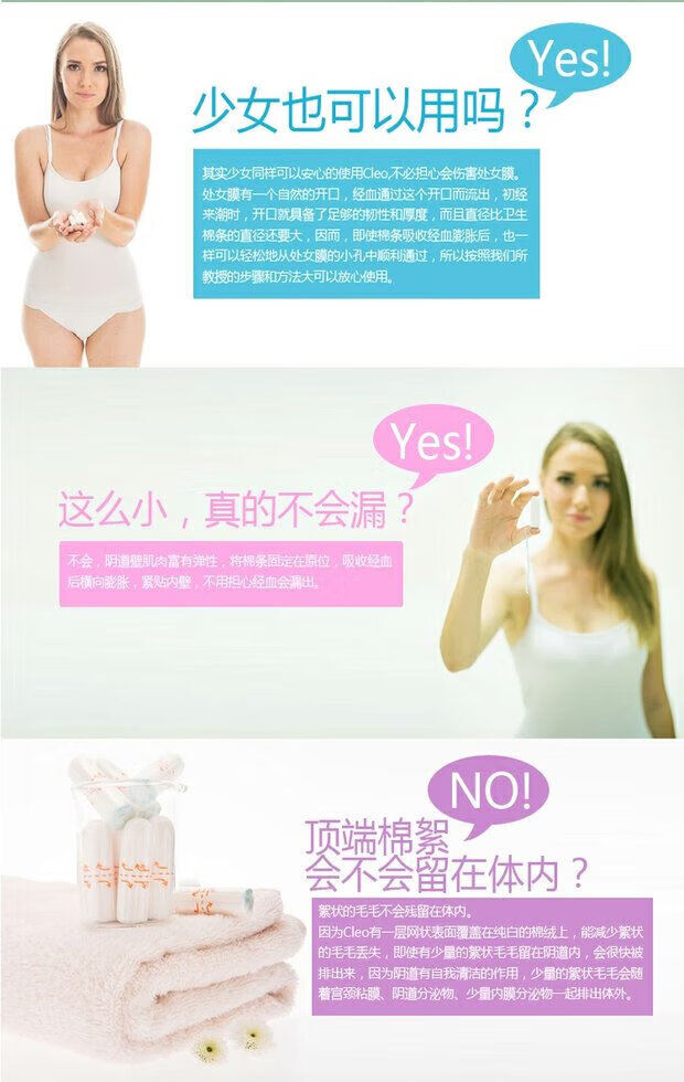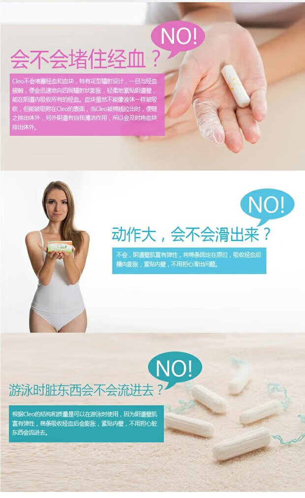 Cleo built-in tampons, aunt tampons, finger-in sanitary tampons, special for swimming, hygienic for girls, large quantity of 16 pieces