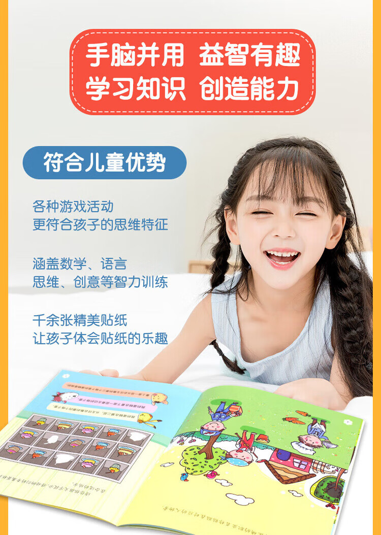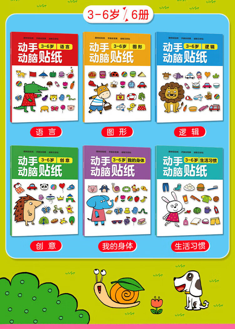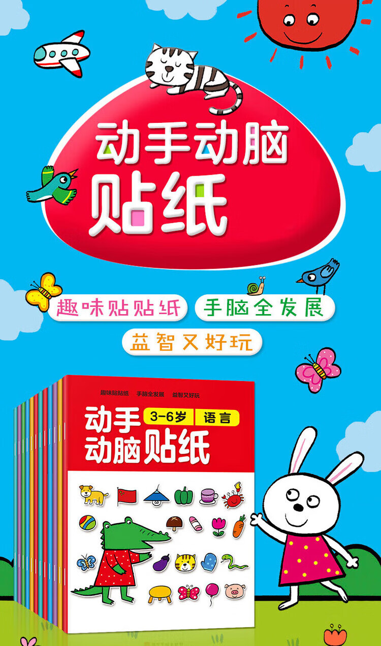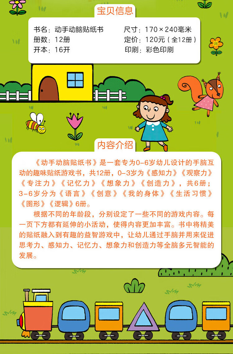 Manual and brain concentration training sticker book for babies 0 to 3-6 years old picture book early education book left and right whole brain potential development infant thinking puzzle enlightenment cognitive book suitable for 2 years old comprehensive development comprehensive stickers 60 volumes