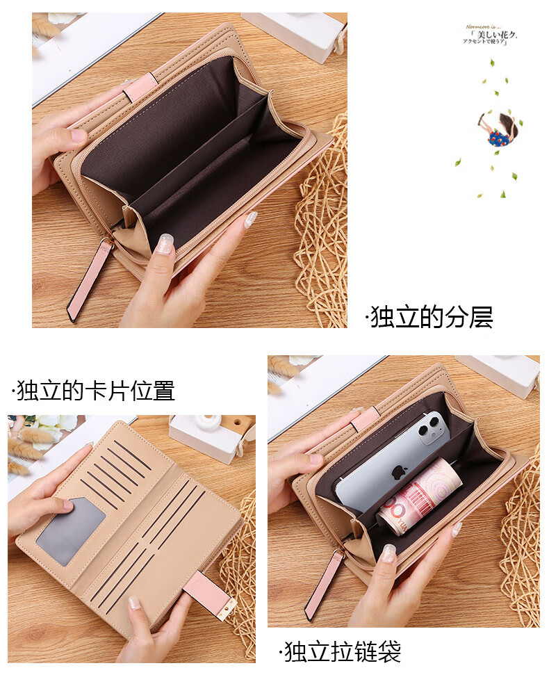 ZOCI Wallet Women's Long 2024 New Internet Celebrity Niche Design Large Capacity Folding Wallet Card Bag Clutch Bag Versatile Khaki