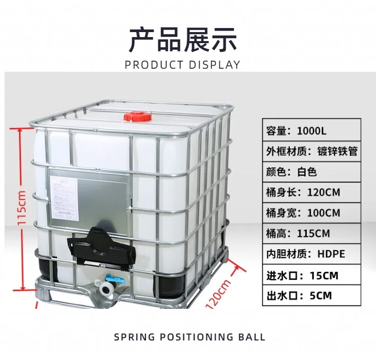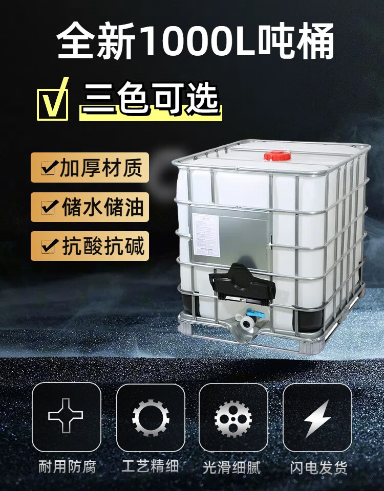 Ton barrel new thickened plastic square barrel 1000L 1 ton IBC container barrel large water chemical barrel water storage barrel diesel barrel new white 1000L thickened version