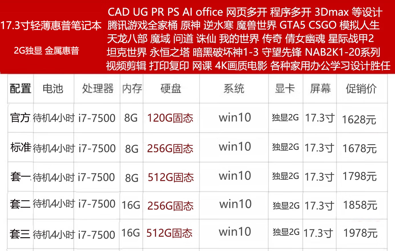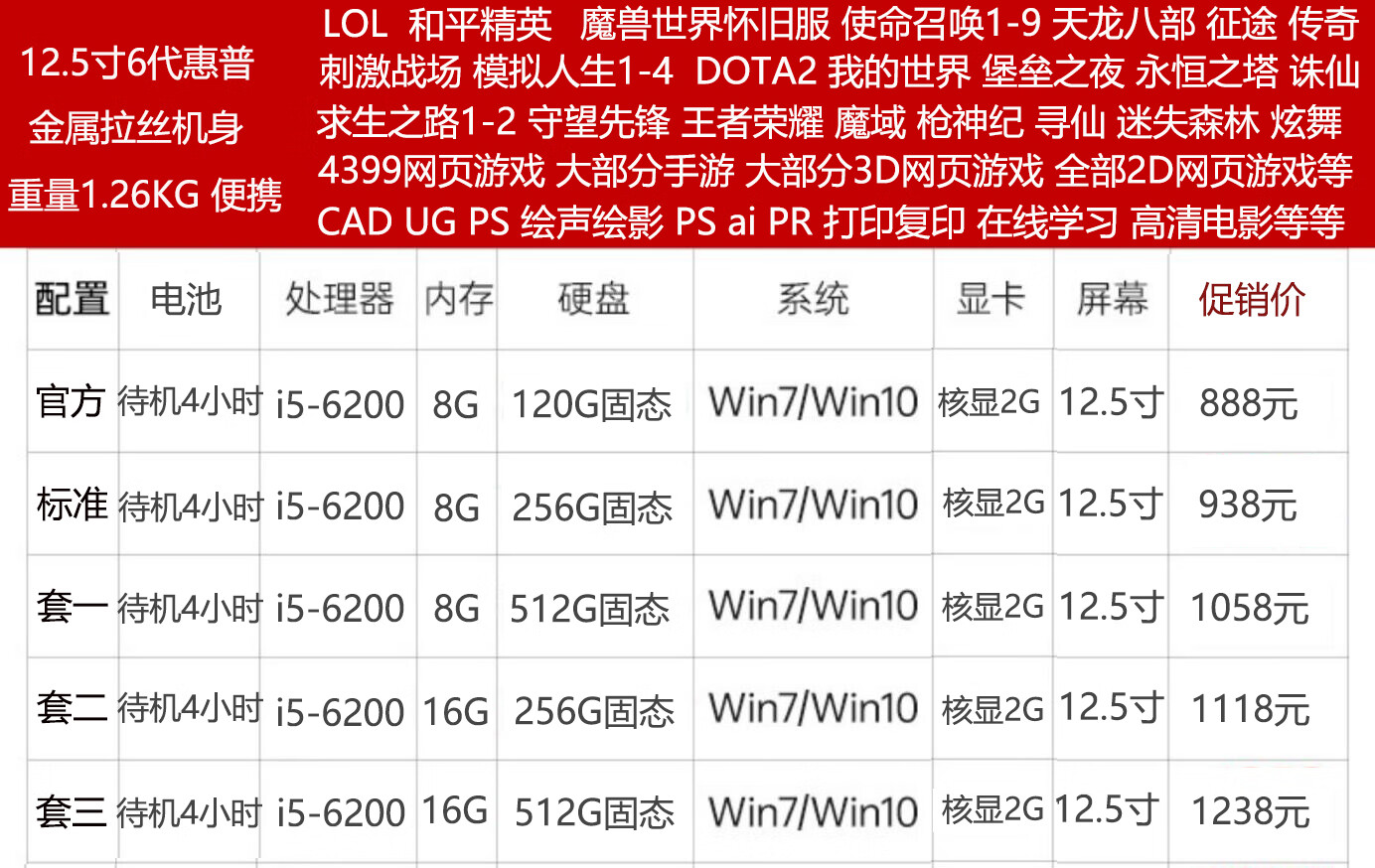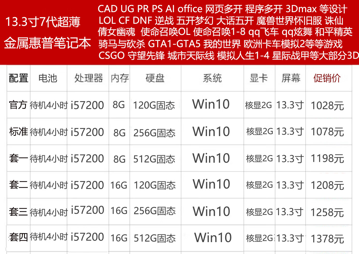 99% new i7 quad-core eight-line i5 HP Lenovo 14-inch 12-inch 15.6-inch second-hand laptop for office study gaming ultra-thin independent display 13.3-inch 7th generation HP standard package 99% new