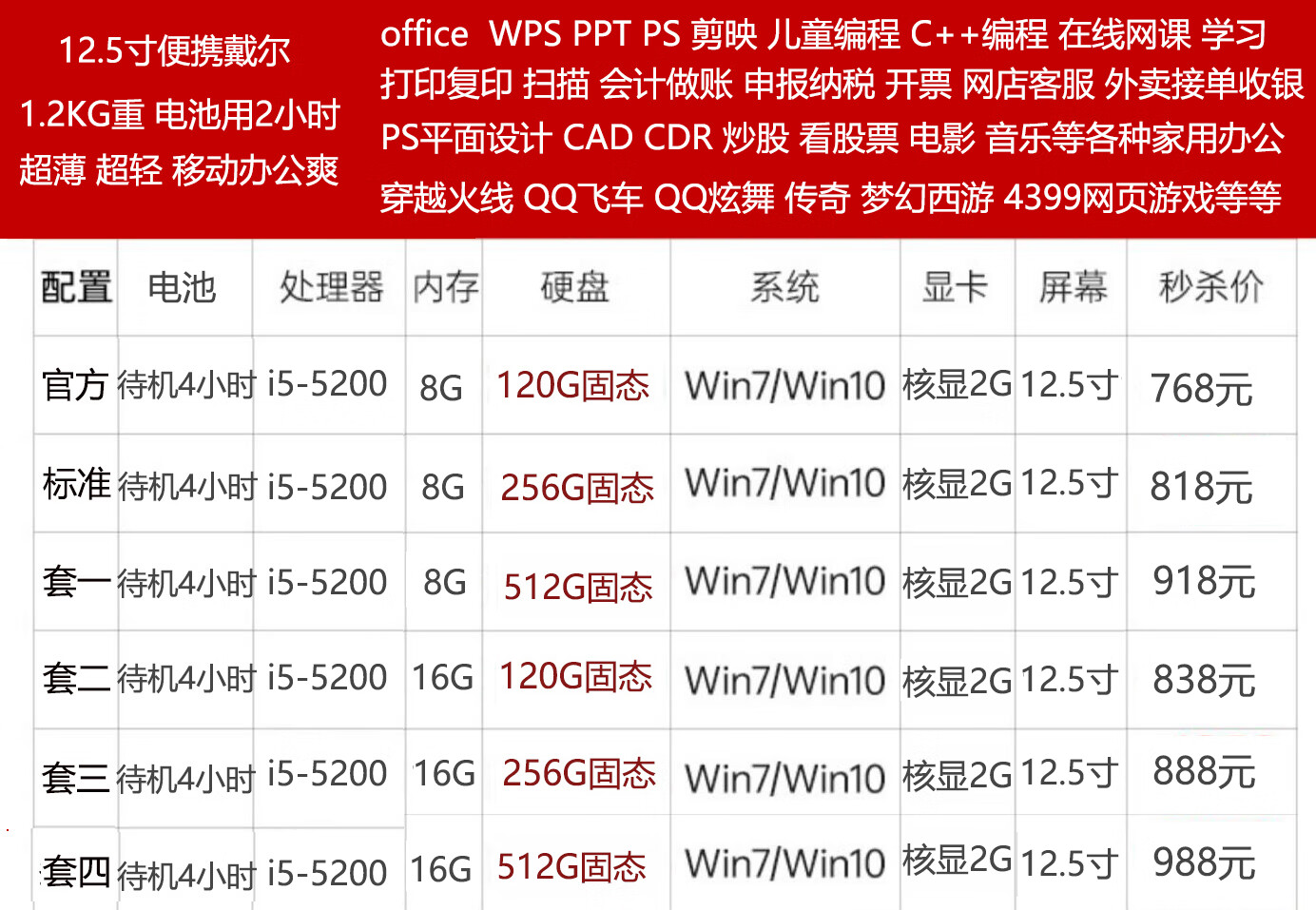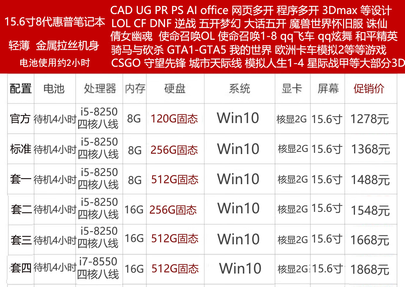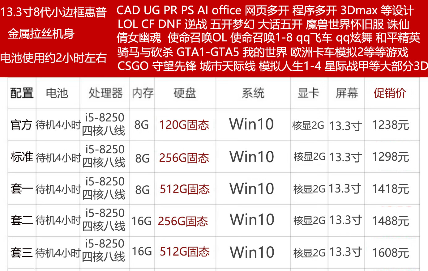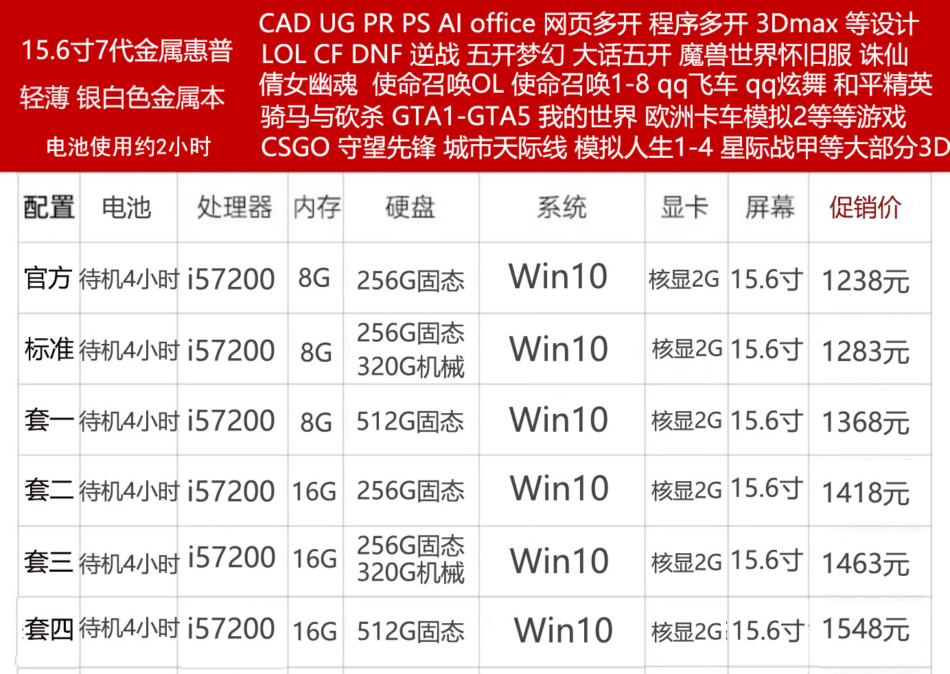 99% new i7 quad-core eight-line i5 HP Lenovo 14-inch 12-inch 15.6-inch second-hand laptop for office study gaming ultra-thin independent display 13.3-inch 7th generation HP standard package 99% new